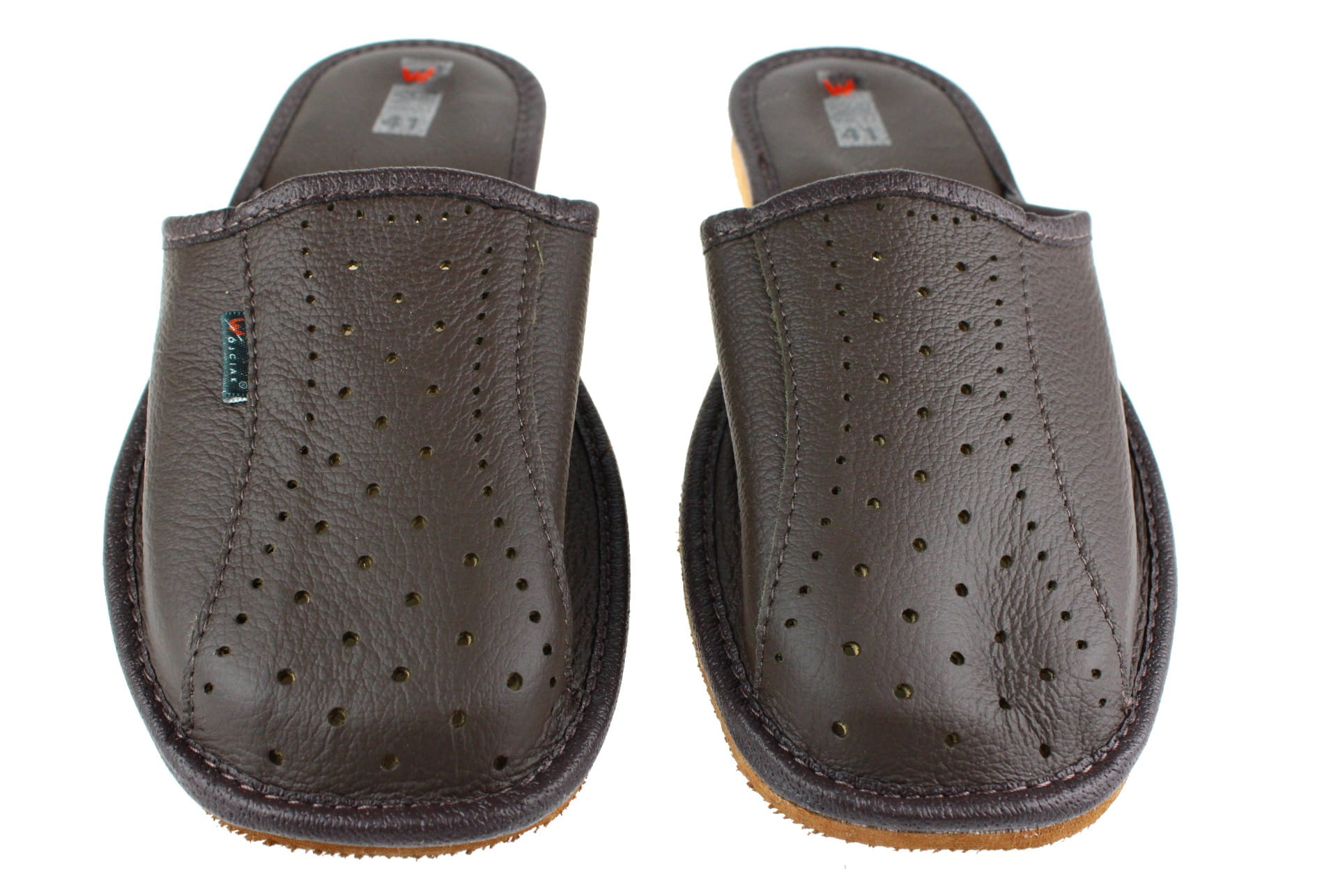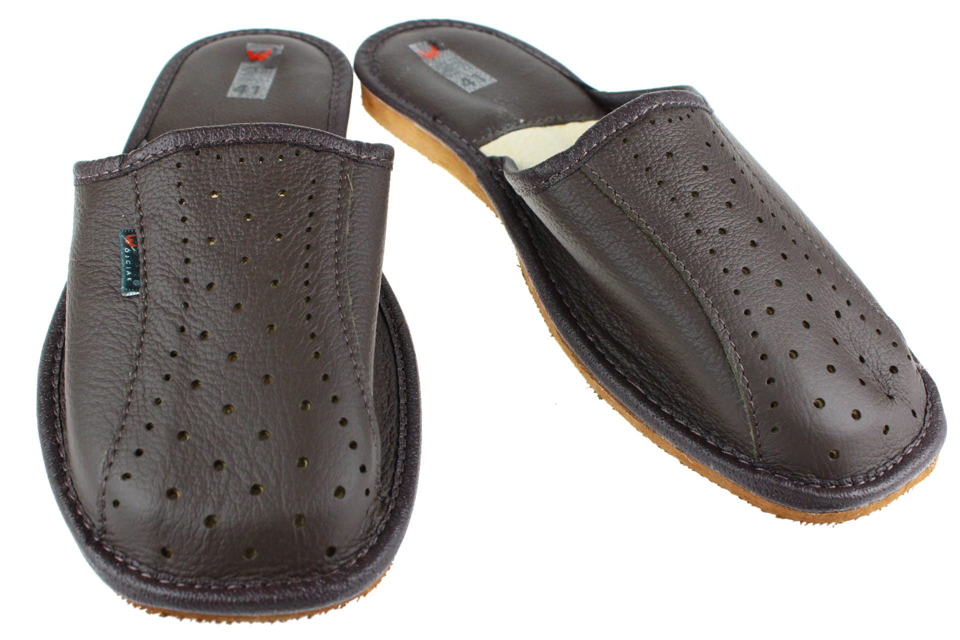 Wykonane z naturalnej skóry w kolorze brązowym.