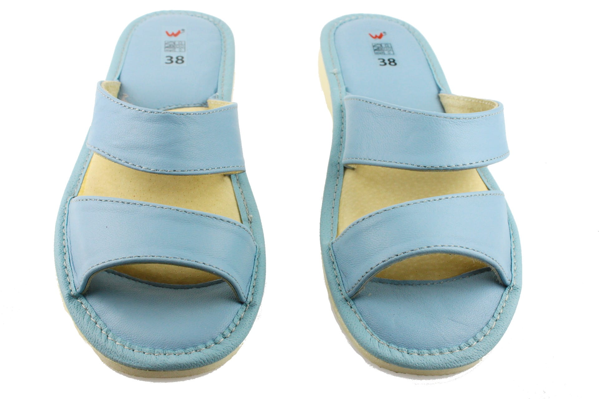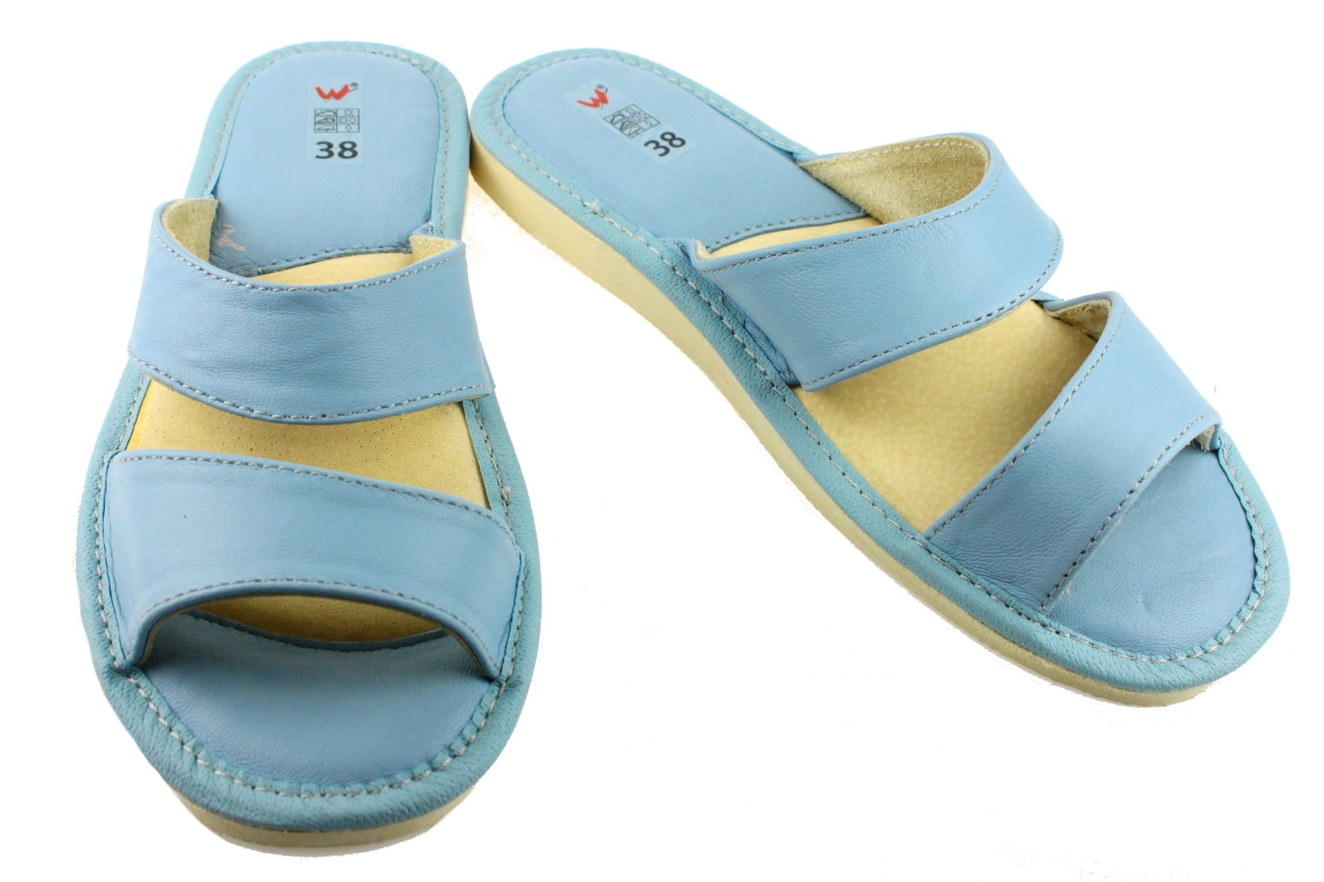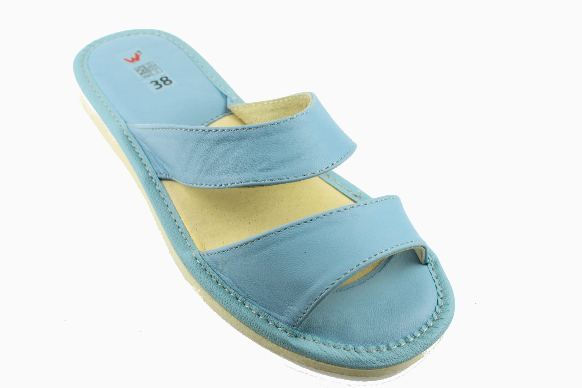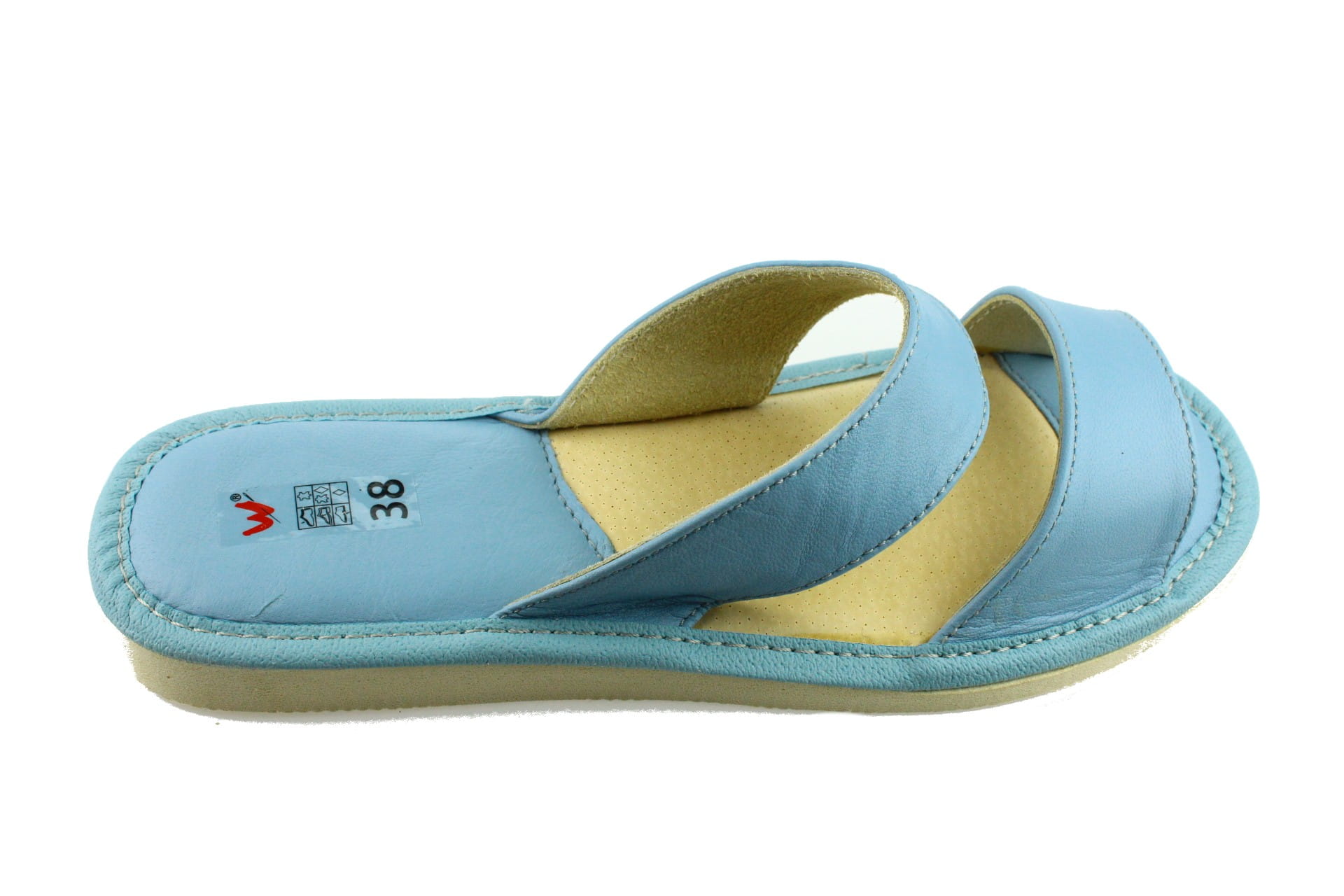 Pantofle damskie z otwartym palcem (b/p=bez palcy), wykonane z naturalnej skóry. Spód gumowy, antypoślizgowy. Klin o wysokości 2,5 cm. Wkładka skórzana, profilowana, ortopedyczna, dostosowuje się do kształtu stopy, co daje pewność jej prawidłowego ułożenia i przez to maksymalne poczucie komfortu. Dzięki temu nogi nie męczą się, a stawy nie są narażone na dodatkowe obciążenie. Lekkie i wygodne, przeznaczone do użytku domowego.