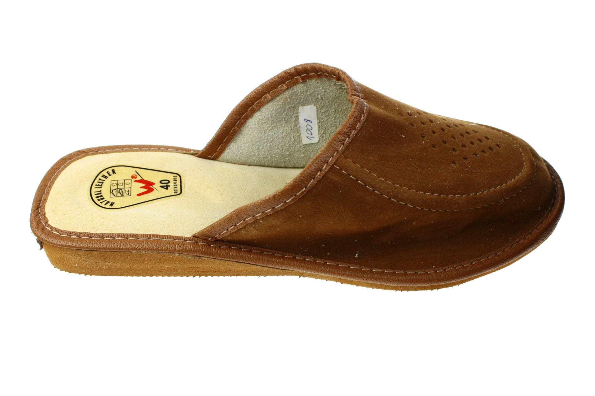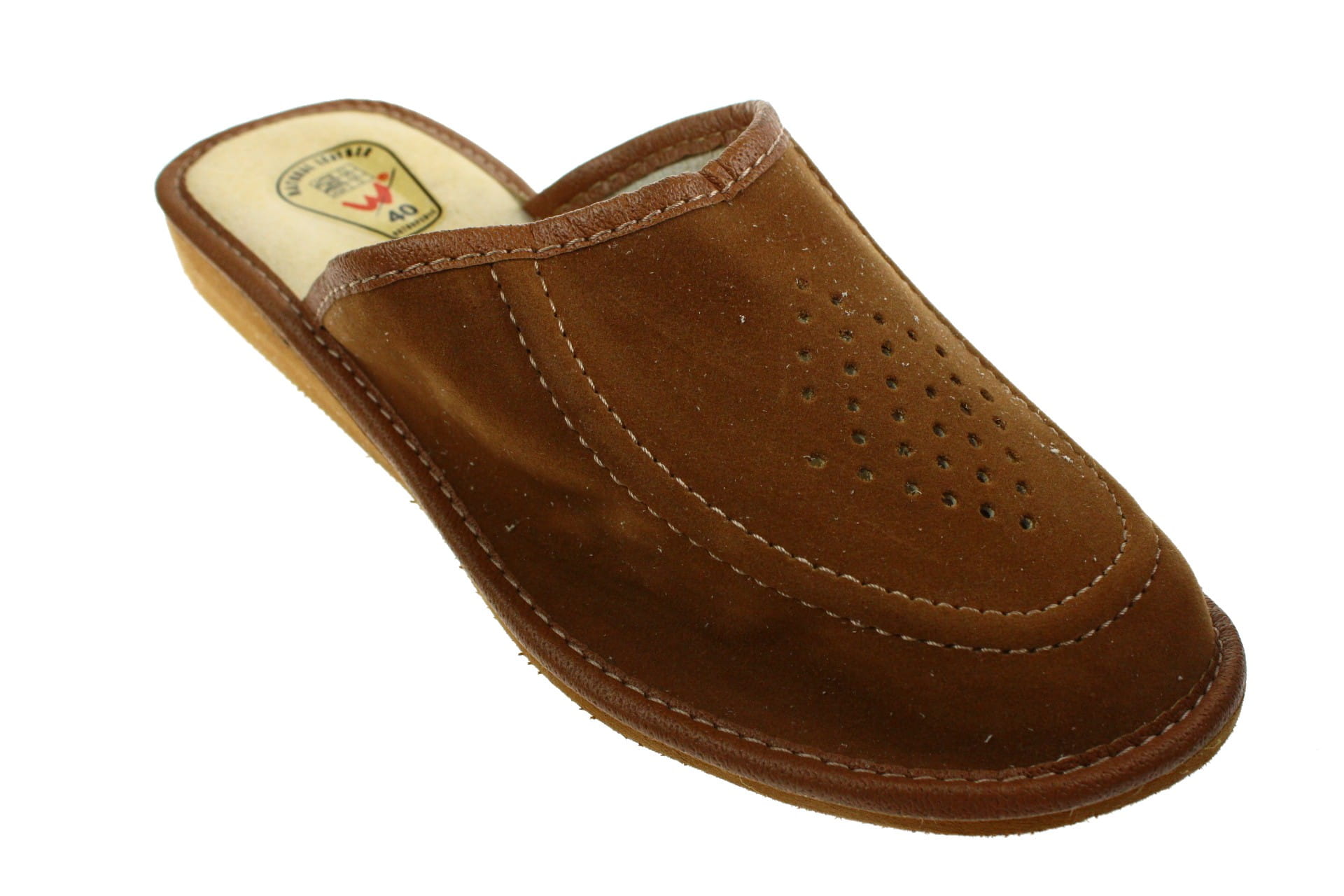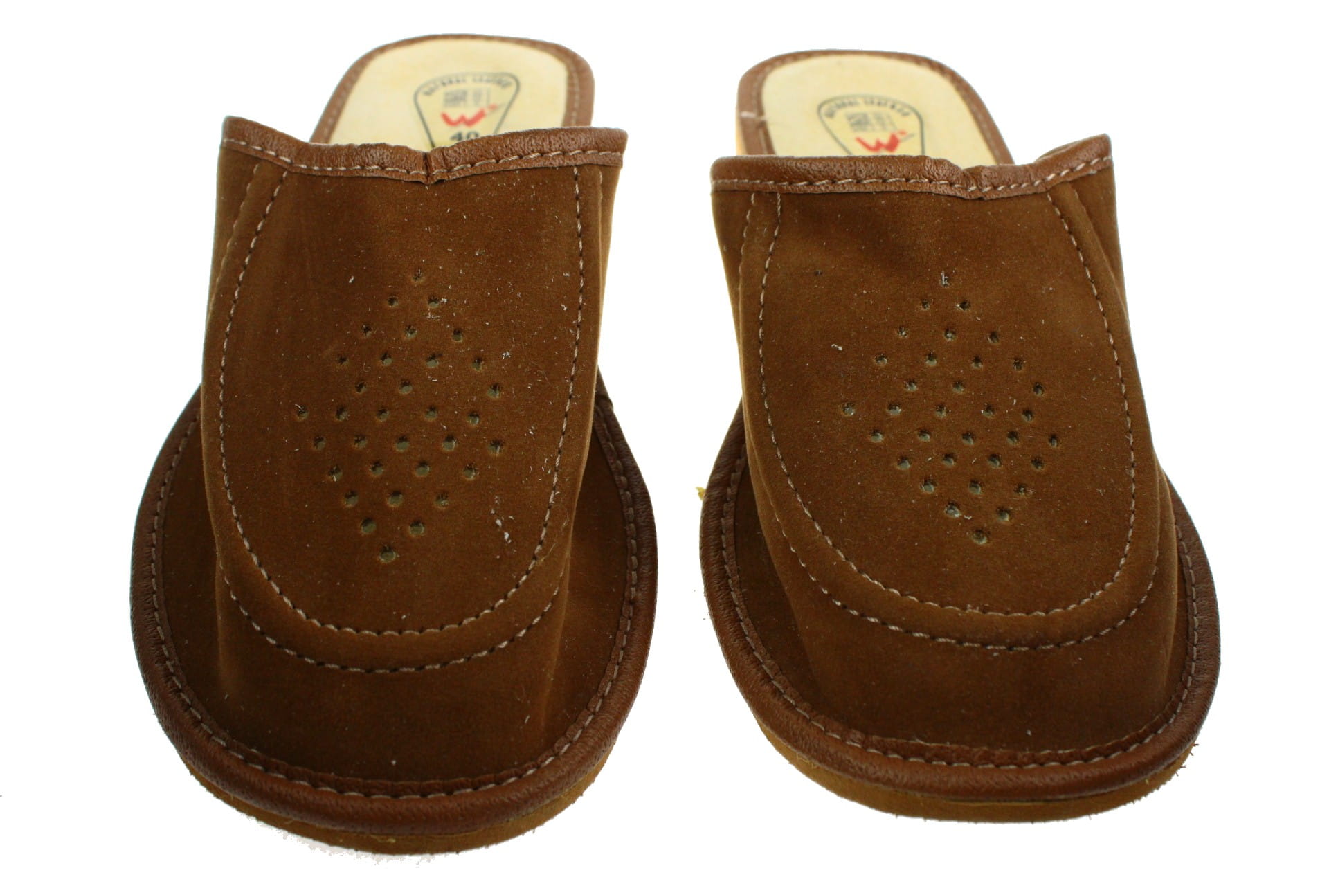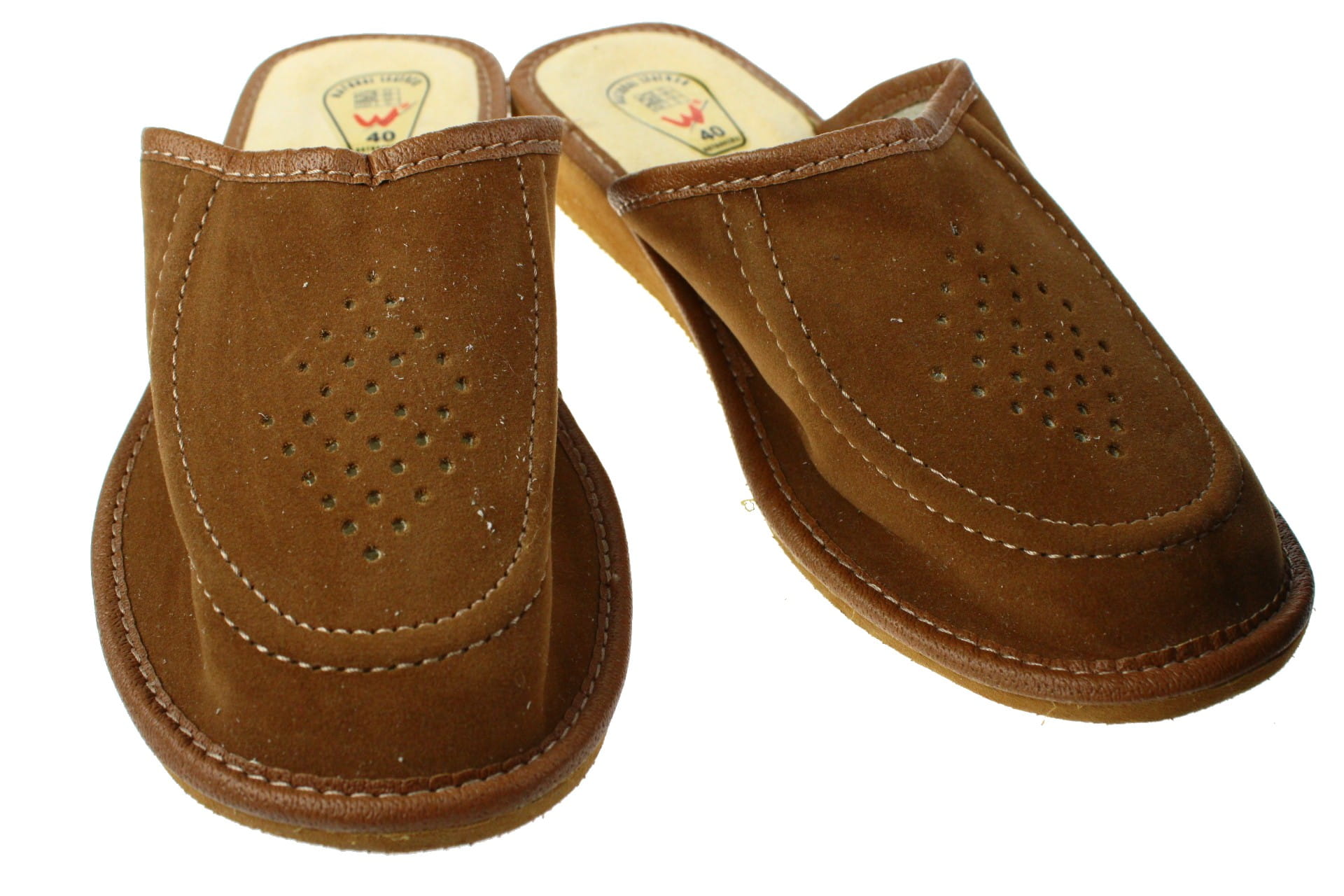 Laczki damskie, wykonane z naturalnej skóry zamszowej. Wierzch posiada liczne otworki, które umożliwiają lepszą cyrkulację powietrza a tym samym stopa nie poci się. Wkładka skórzana, profilowana, ortopedyczna, dostosowuje się do kształtu stopy, co daje pewność jej prawidłowego ułożenia i przez to maksymalne poczucie komfortu. Dzięki temu nogi nie męczą się, a stawy nie są narażone na dodatkowe obciążenie. Podeszwa gumowa, antypoślizgowa. Przeznaczone do użytku domowego, są lekkie i wygodne.KLin o wysokości 2,5 cm