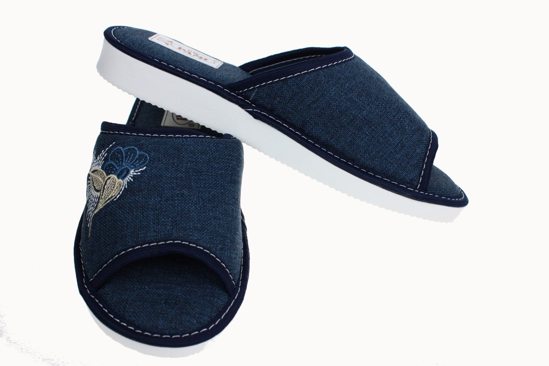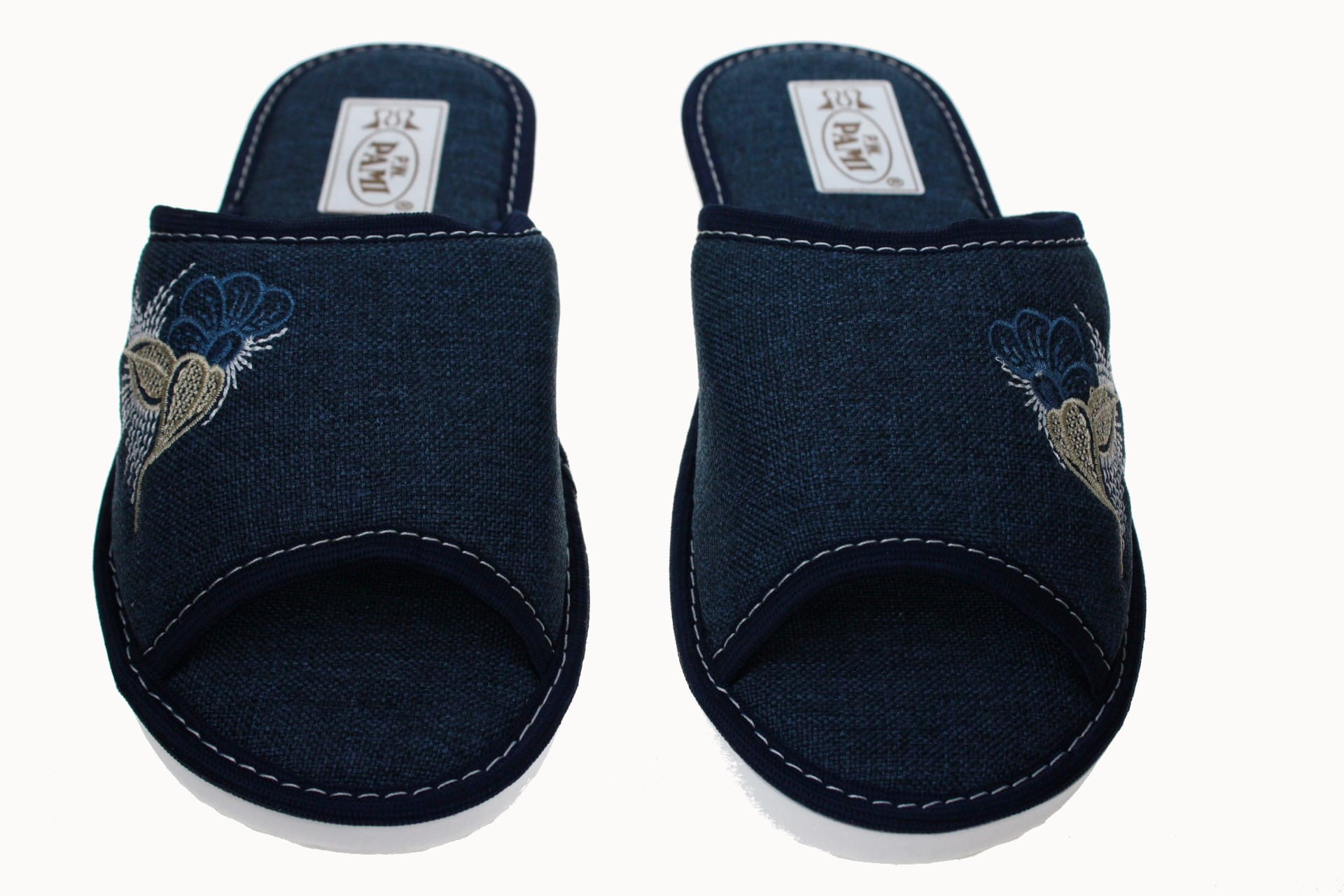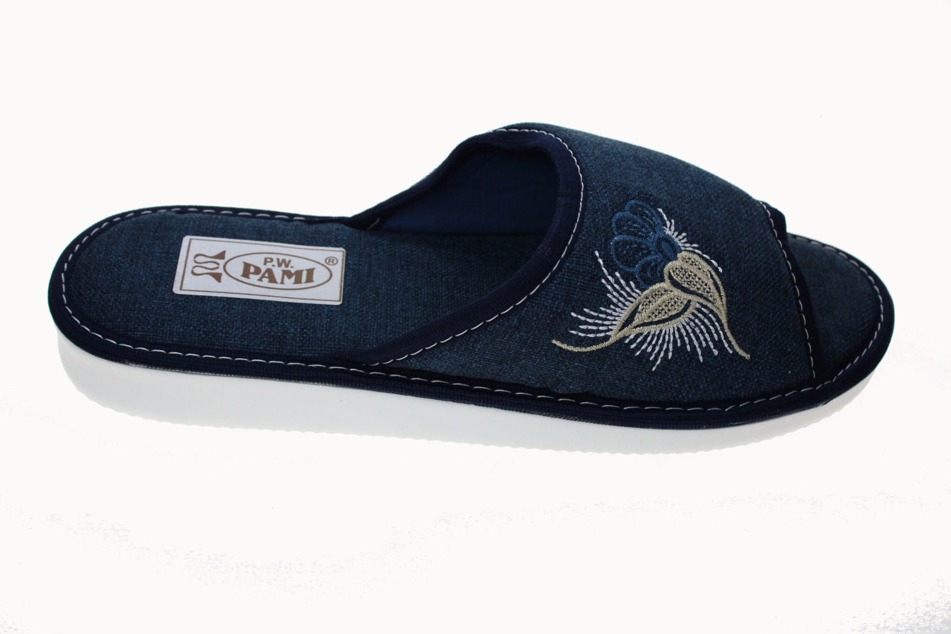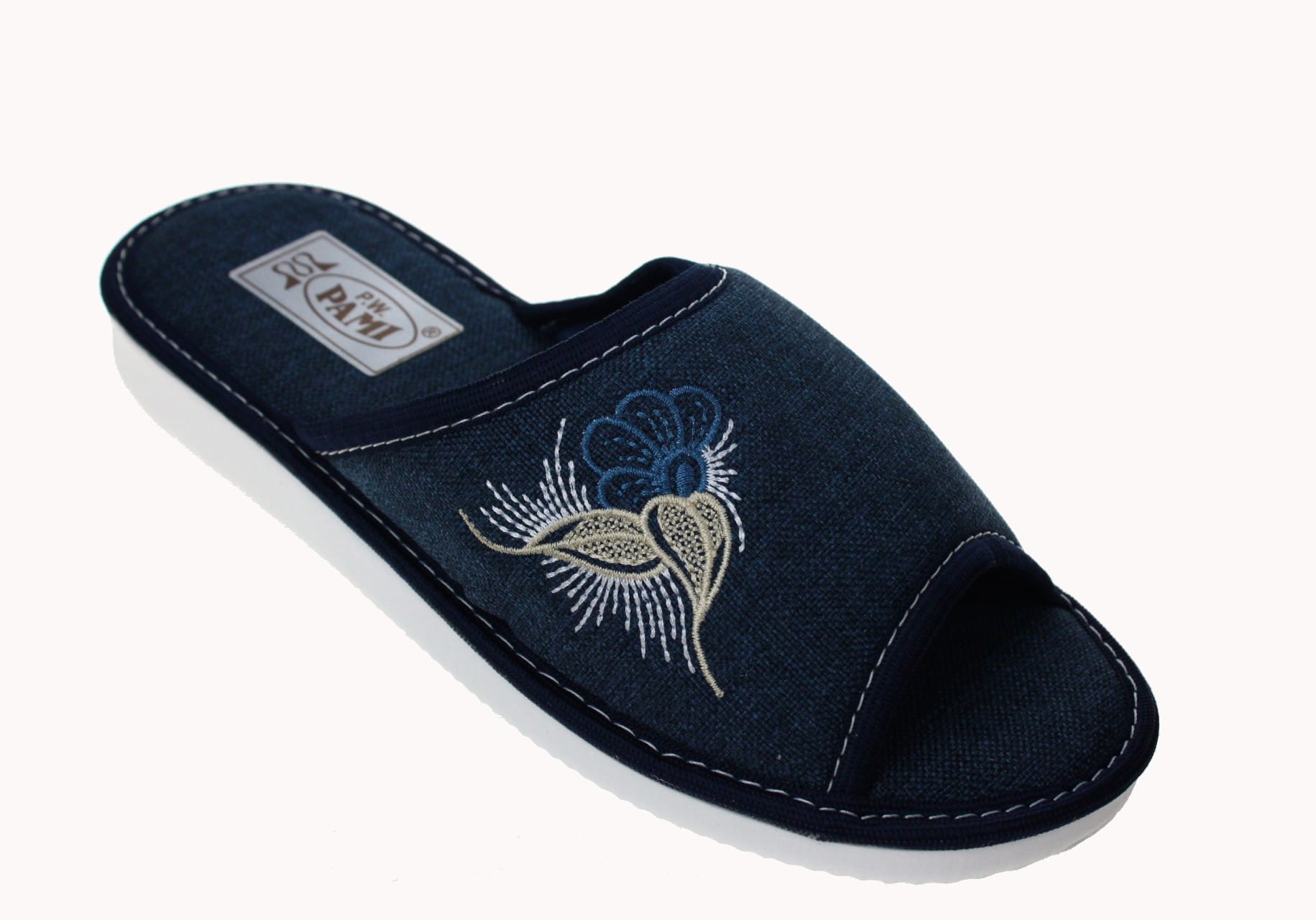 102-C. Laczki damskie otwarte Pami len kolor DOG-L granatowy melanż