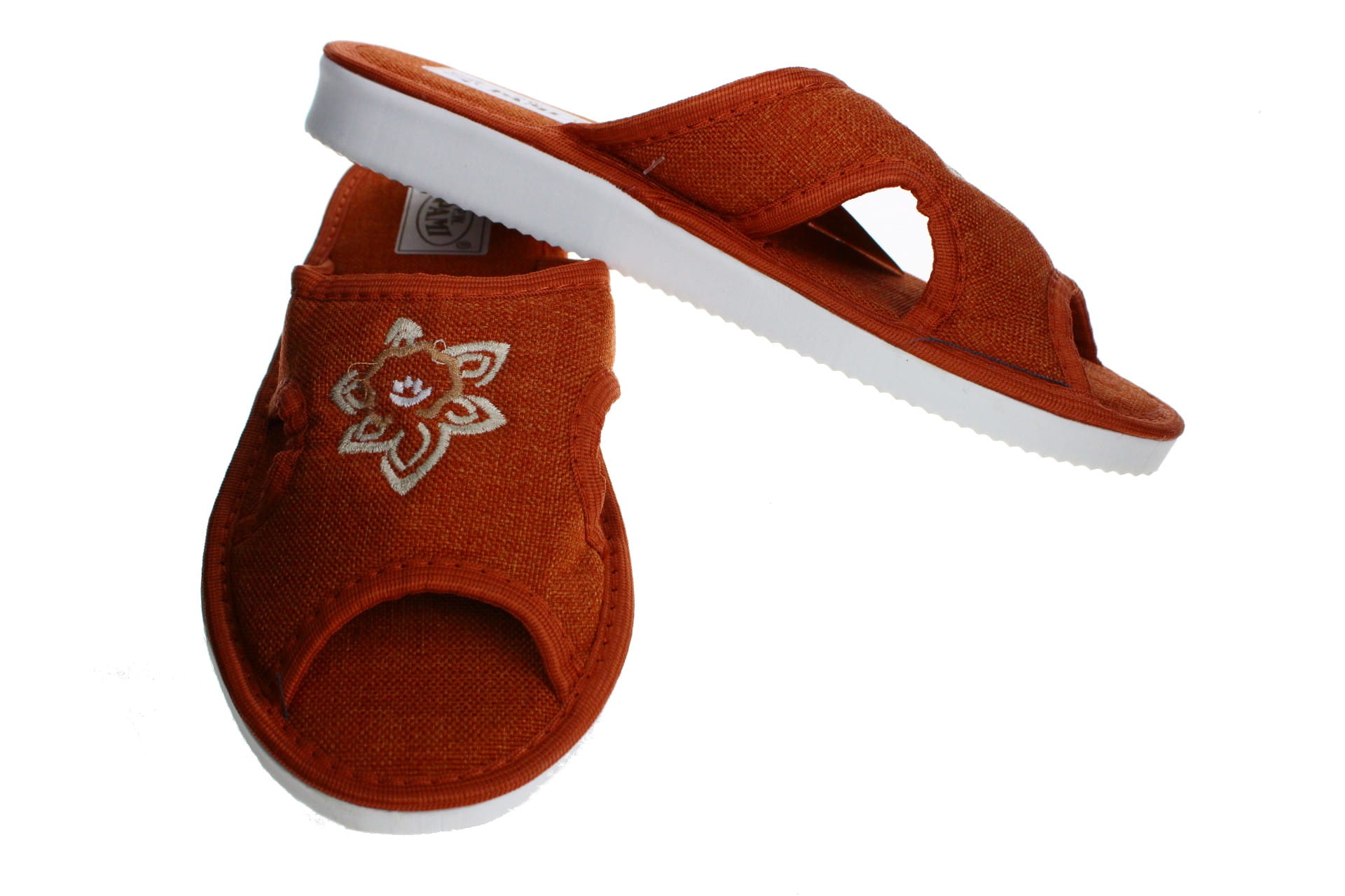 Laczki damskie bez palcy (otwarte), cholewka i wkładka wykonane z tkaniny bawełnianej - lnu,