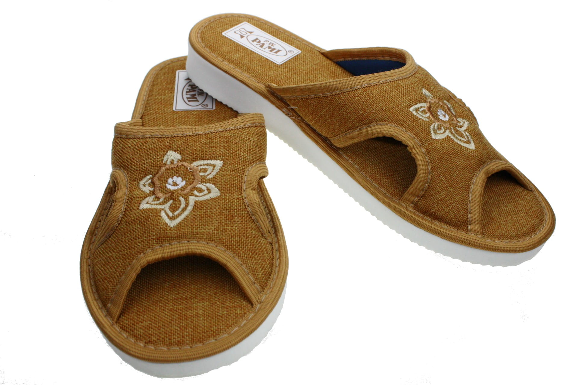 Laczki damskie bez palcy (otwarte), cholewka i wkładka wykonane z tkaniny bawełnianej - lnu,