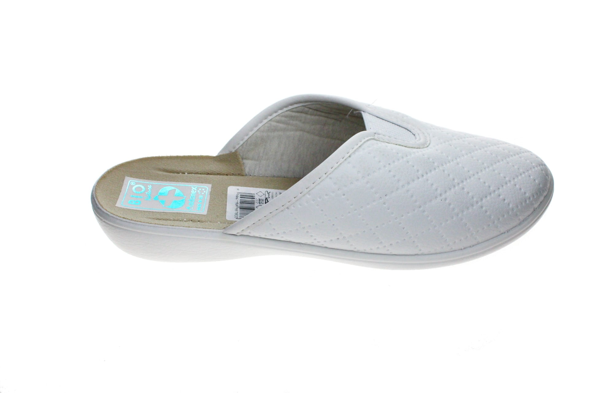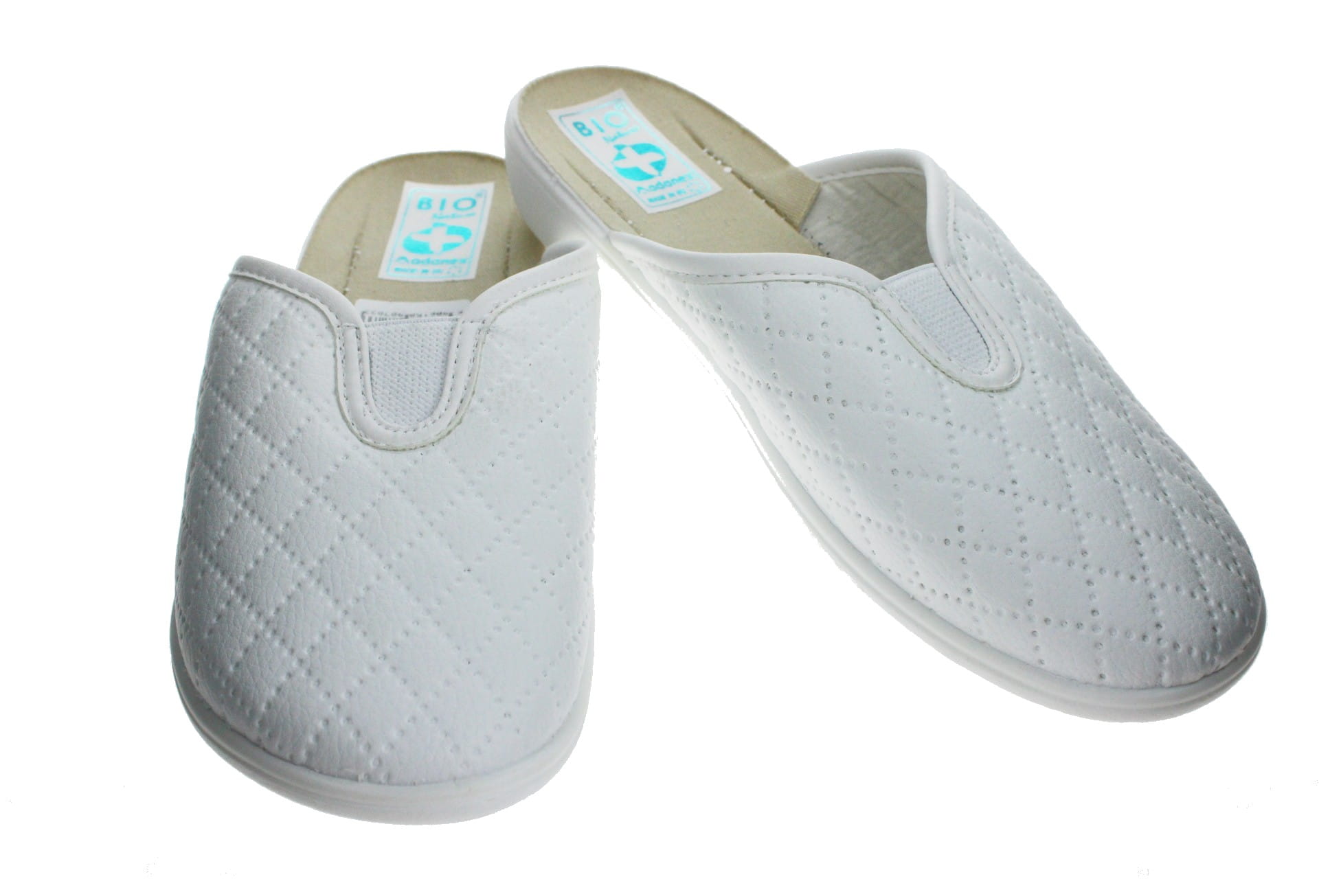 Wysokiej jakości obuwie dla Pań ceniących wygodę i wypoczynek stóp. Pantole wykonane z miękkiego, miłego w dotyku materiału z wkomponowaną w cholewkę gumką ściągającą dopasowuje pantofle do tęgości stopy. Elastyczna podeszwa zapewnia komort podczas chodzenia. Oznaczenie BIO charakteryzuje się wysokim komfortem użytkowania, są lekkie, sprężyste i nie obciążają stawów. Obuwie posiada certyfikat "Obuwie dla stóp wrażliwych" przyznawany przez Centralny Ośrodek Techniki Medycznej w Warszawie. Obuwie Adanex jest dopasowane do anatomicznego kształtu stopy. Materiały na wyściółkę są tak dobrane, że pozwalają stopie oddychać. Przeznaczone zarówno do użytku domowego jak i na zewnątrz. Używane również przez personel medyczny tzn. w szpitalach, przychodniach itd.Klin-2 cm