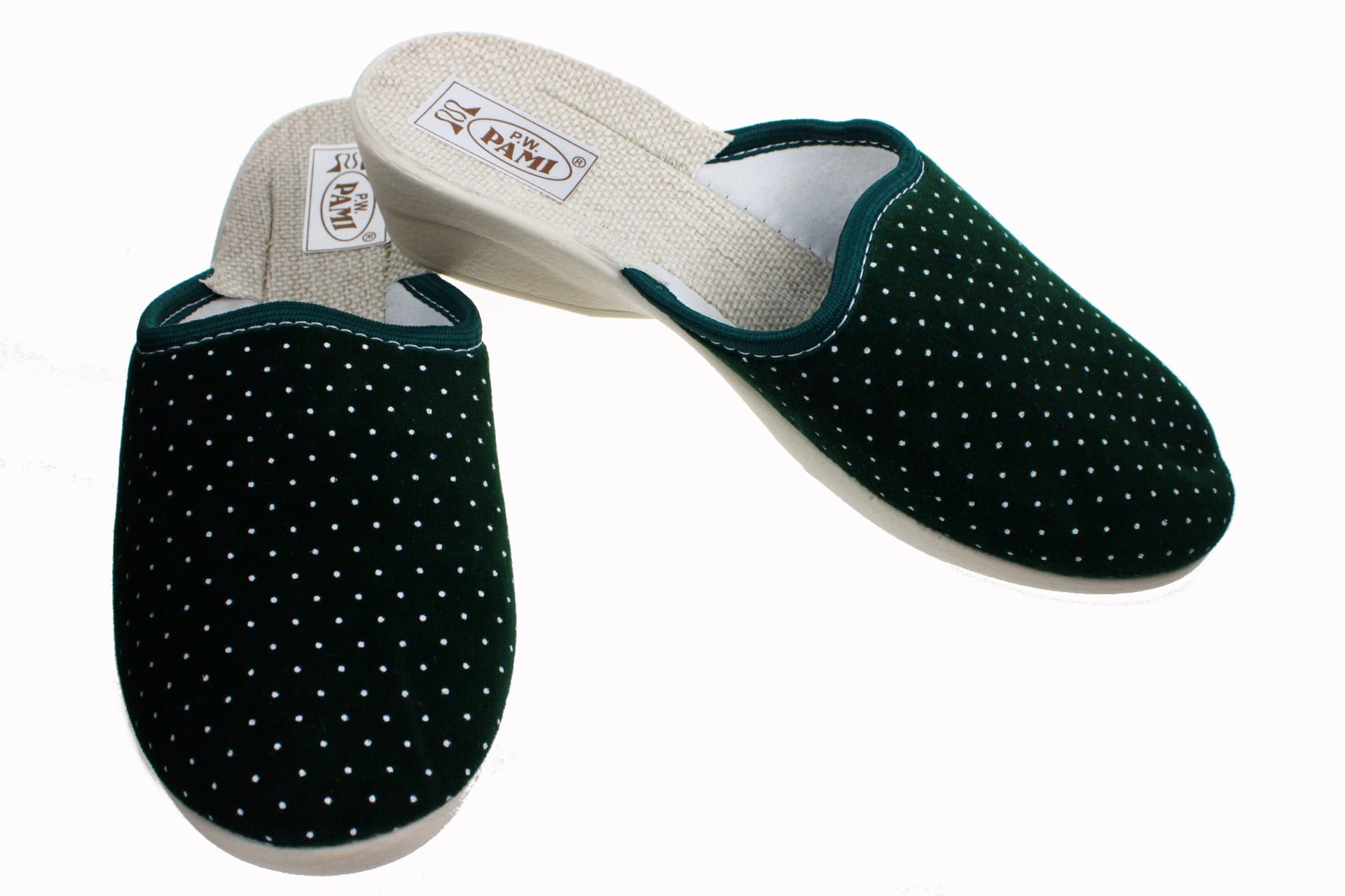 109-A. Laczki damskie pełne Pami welur wysoki odlew zielone