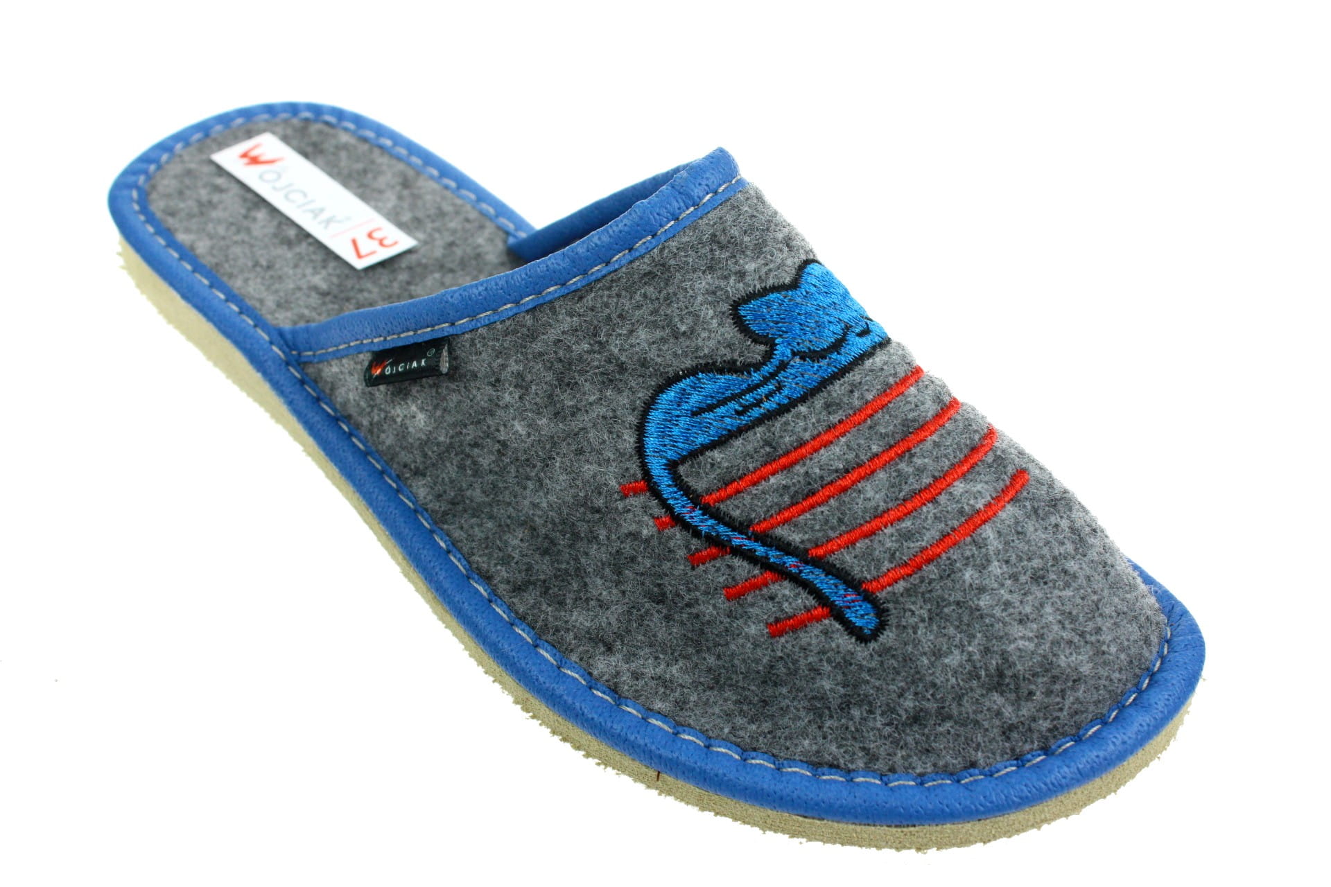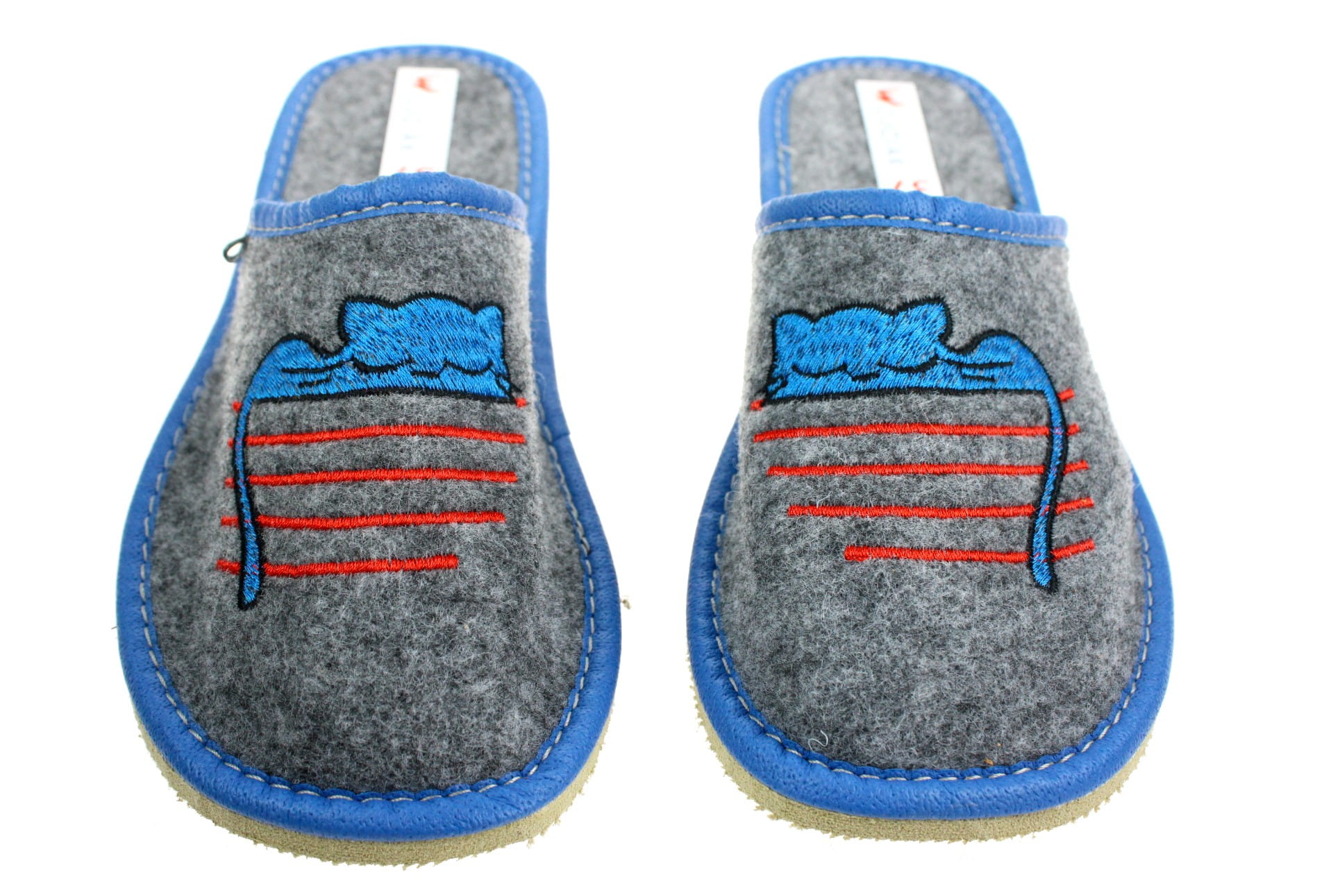 1091. Laczki damskie filcowe z niebieskim kotkiem