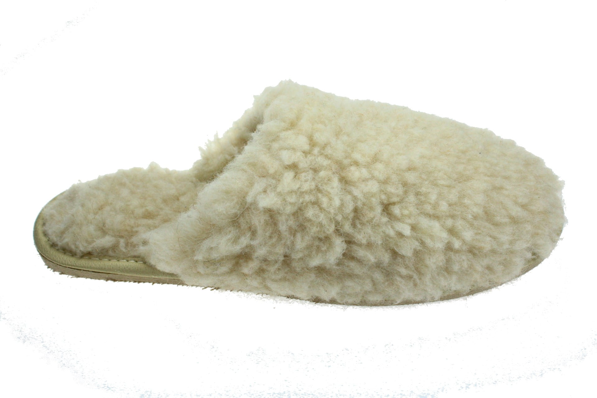 1117-A. Kapcie damskie laczki Wójciak wełna owcza beżowe