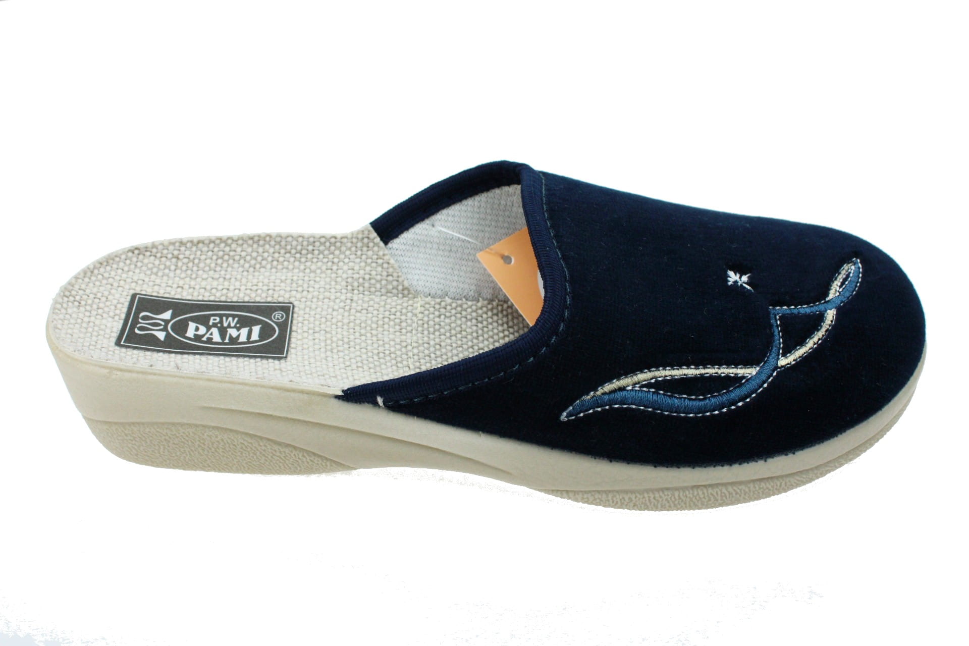 113-C. Laczki damskie pełne Pami welur wysoki odlew TOP-1 granatowe