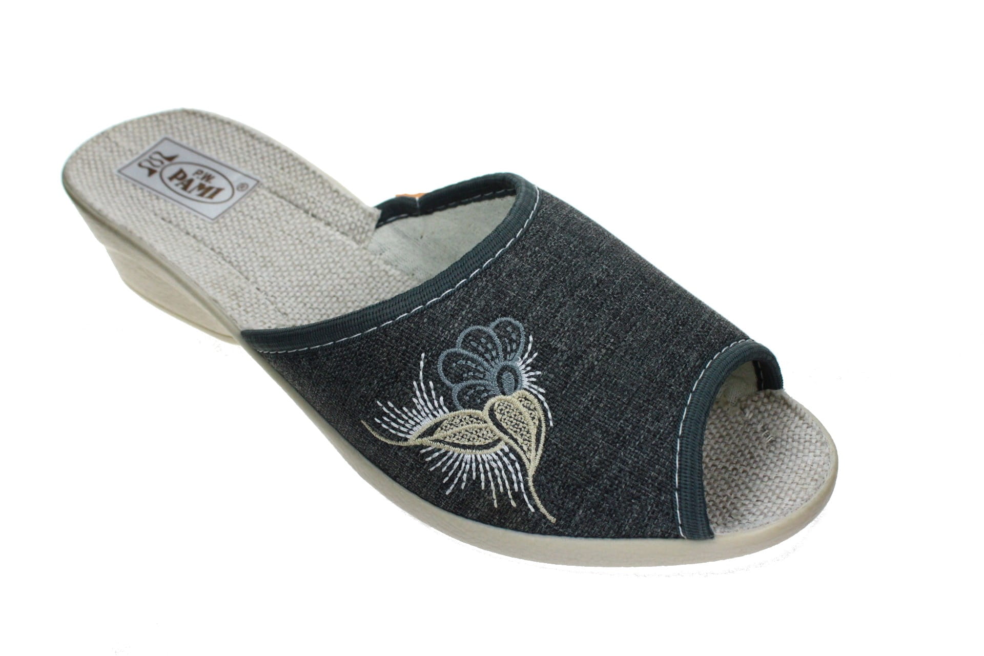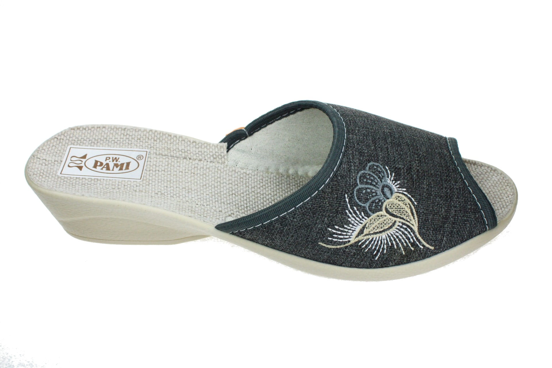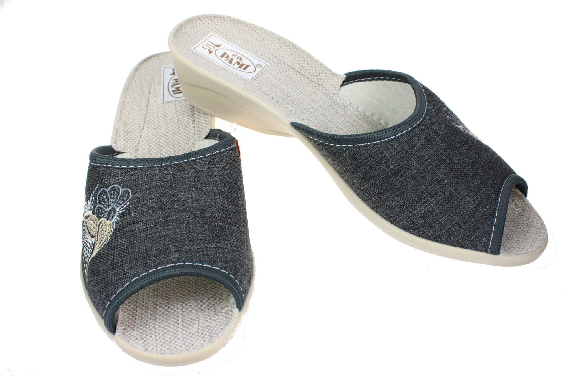116-K. Laczki damskie otwarte Pami lniane wysoki odlew TOP-2 grafitowy melanż
