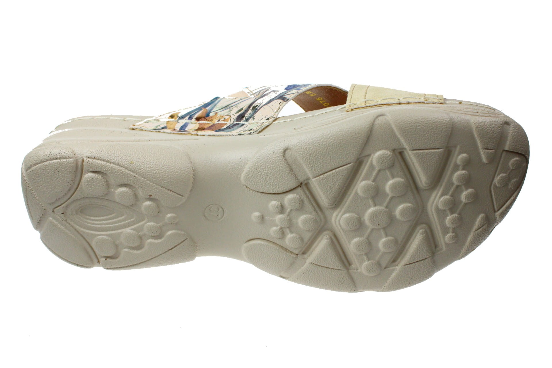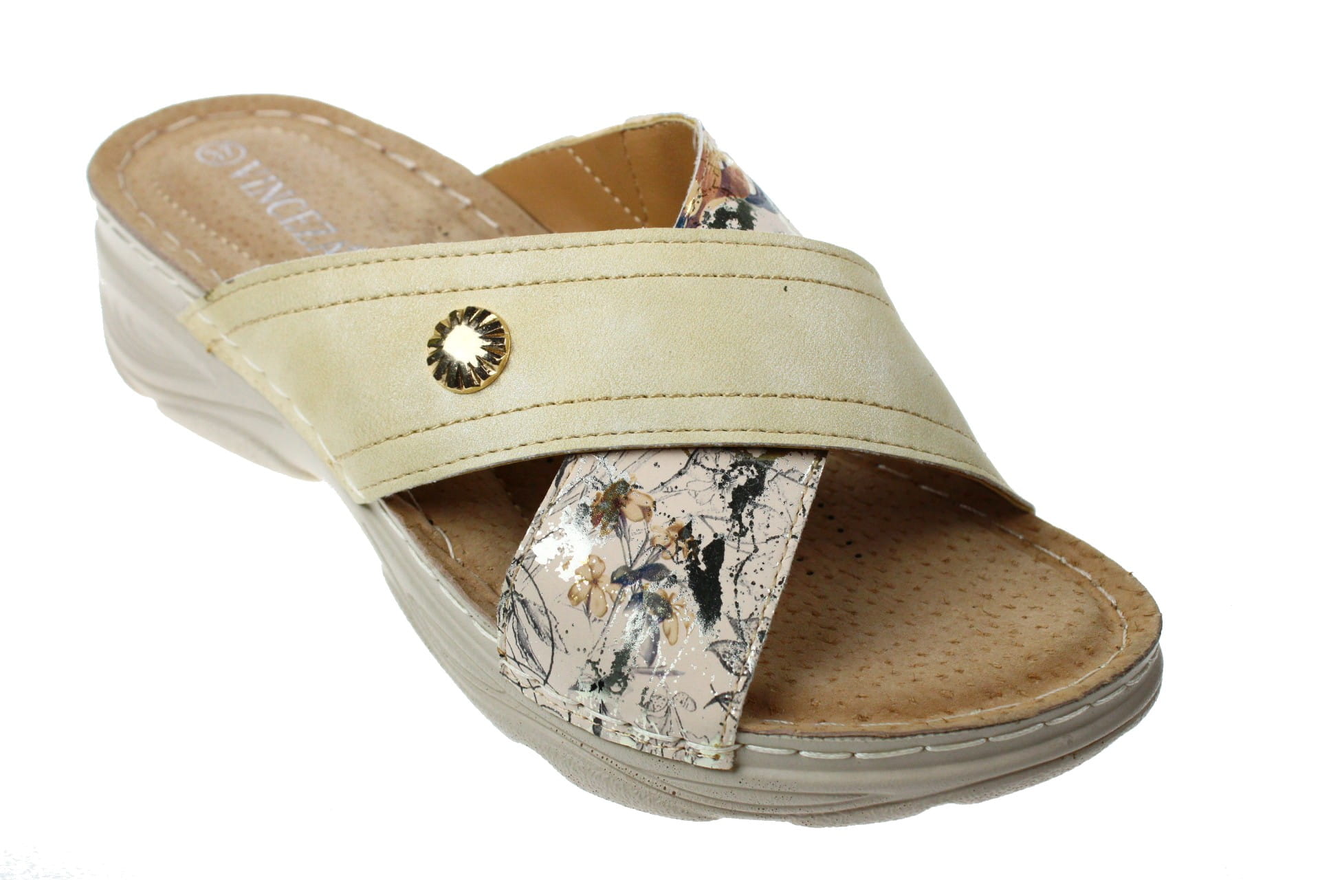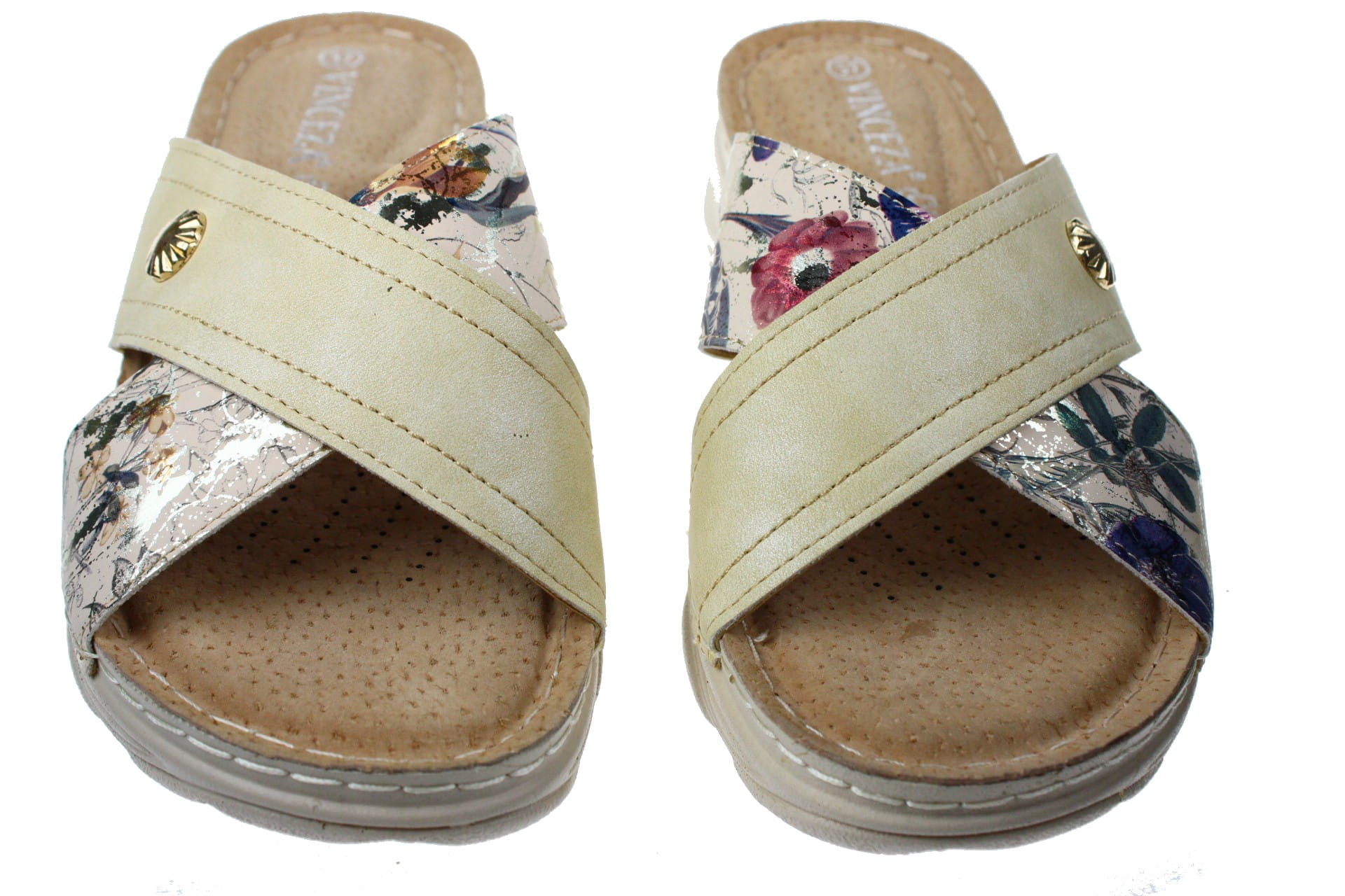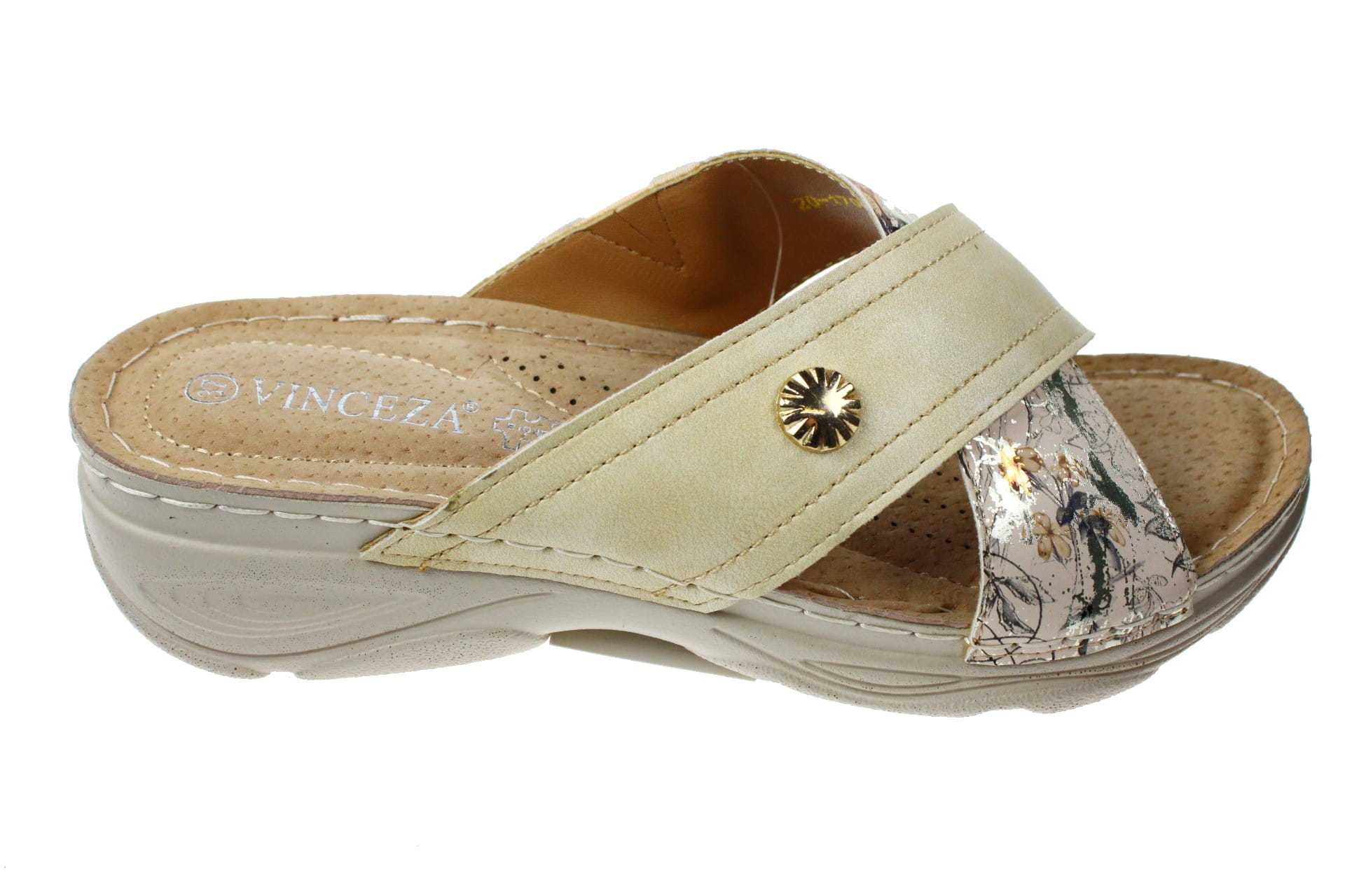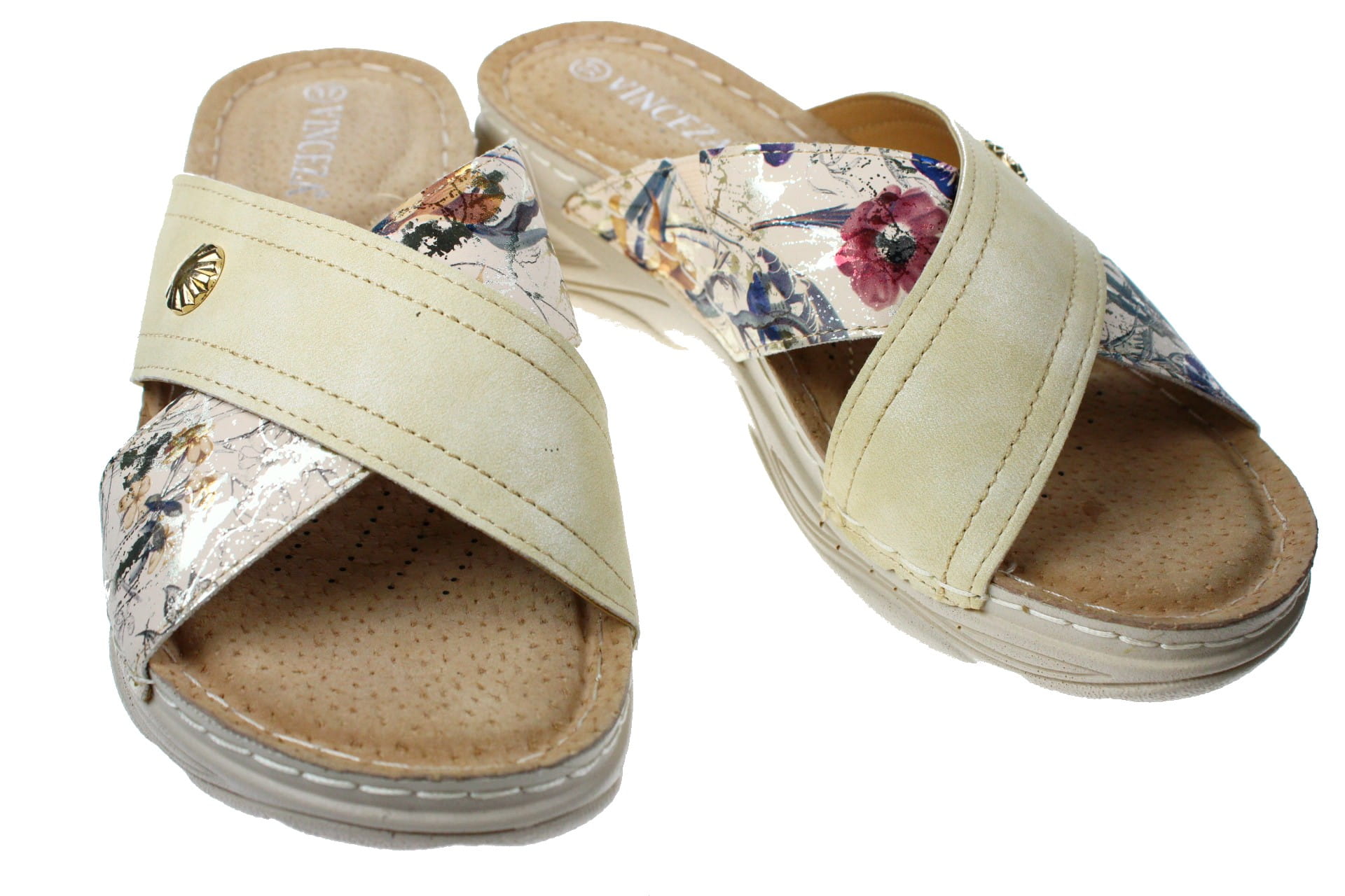 Laczki b/ palców beżowe wykonane są z tworzywa skóropodobnego. Wkładka skórzana , bardzo miękka . Po bokach gumka , która dopasowuje obuwie do szerokości stopy. Wysokość obcasa 4 cm.