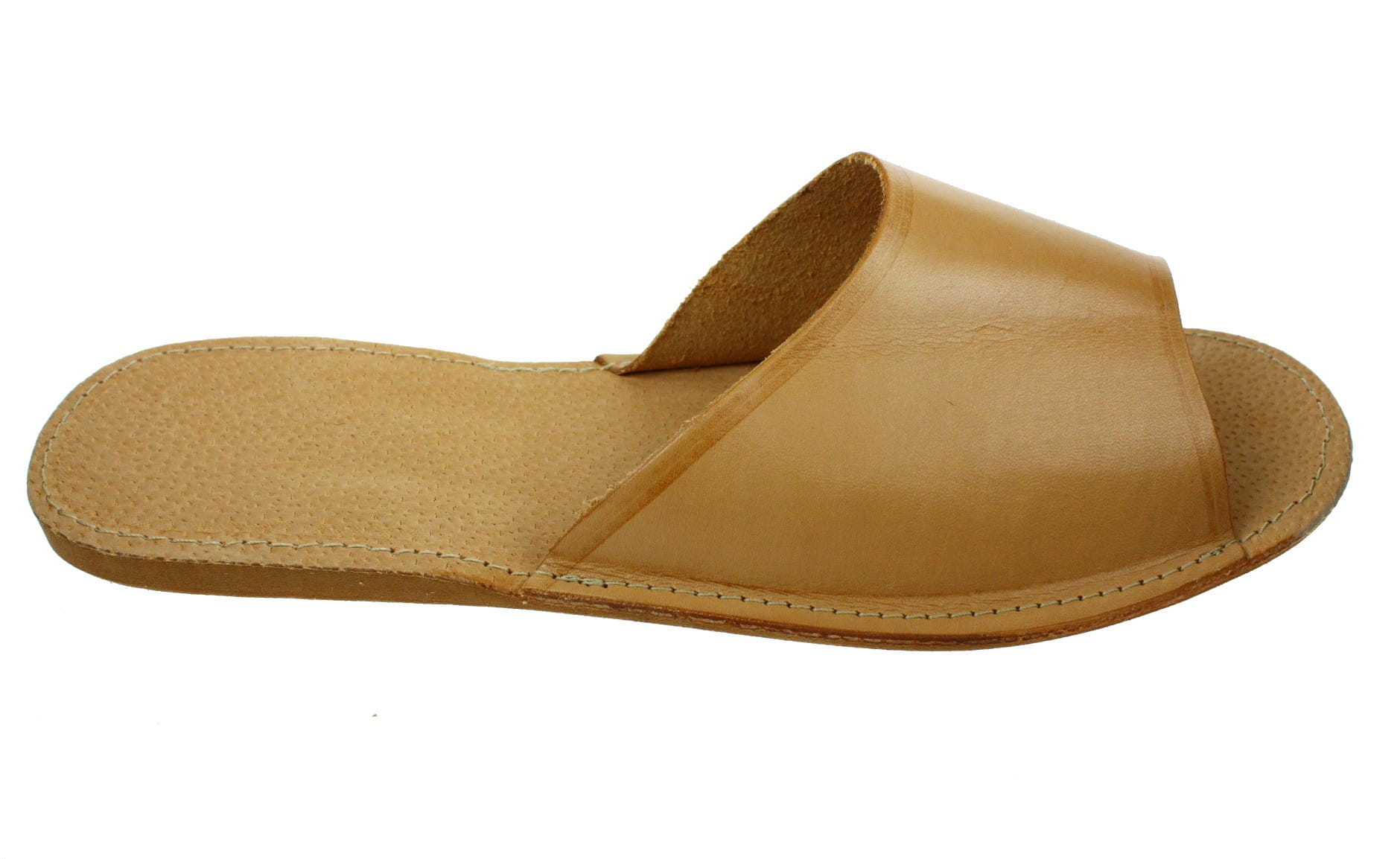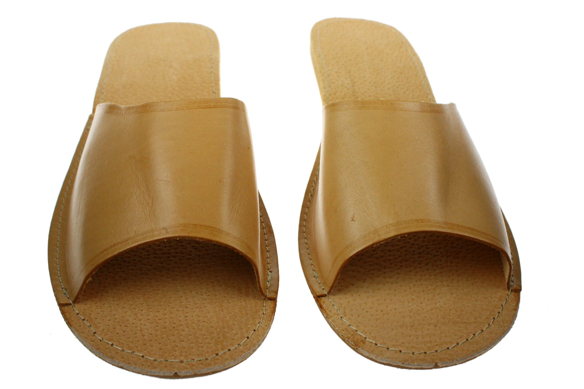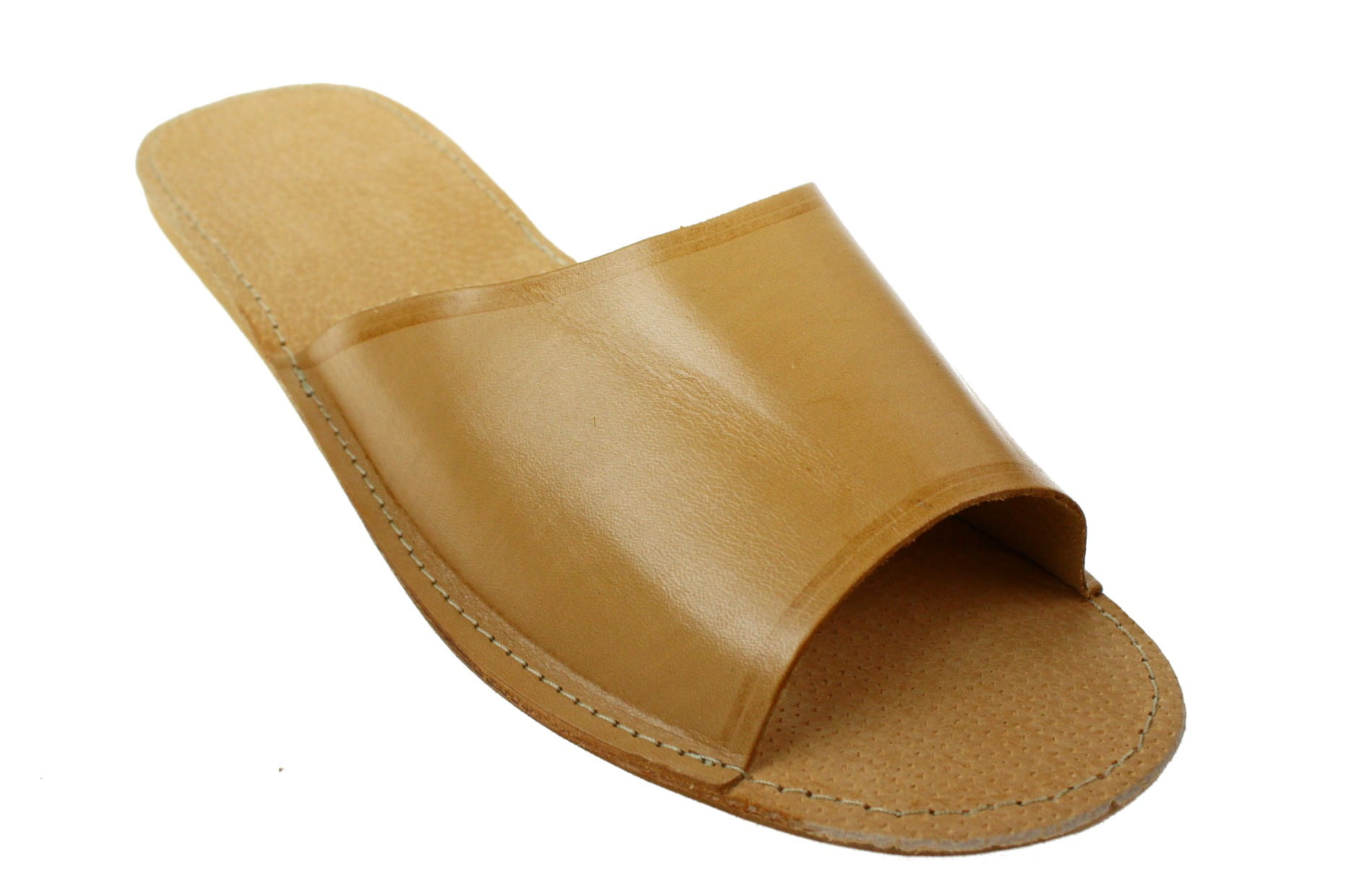 Laczki męskie z otwartym palcem (b/p=bez palcy), wykonane z najwyższej jakości bydlęcej skóry - skóry juchtowej. Wkładka skórzana, z licznymi otworkami, które odprowadzają wilgoć,co daje poczucie świeżości i higieny. Podeszwa antypoślizgowa , wysokość klina 1 cm.