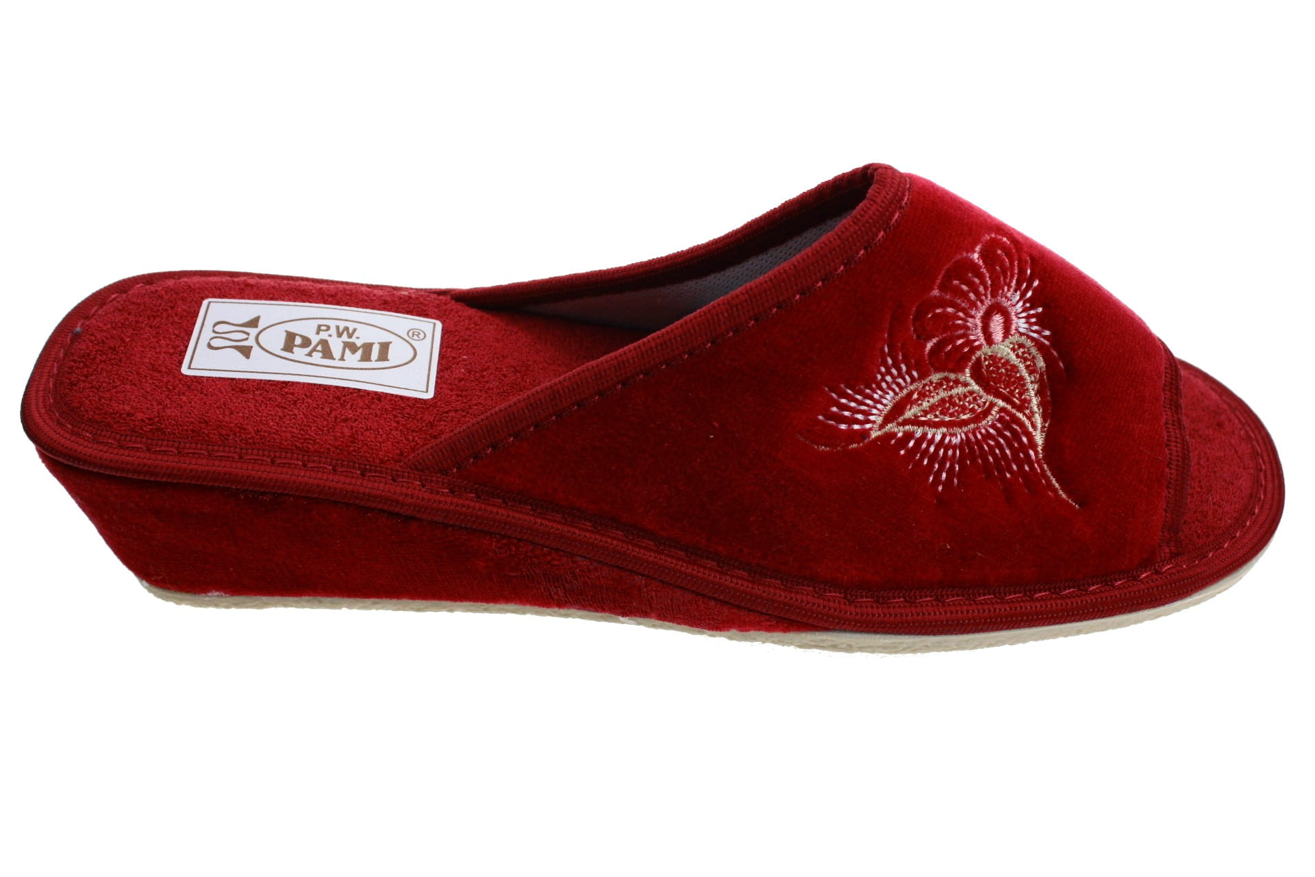 122. Laczki damskie otwarte Pami wysoki klin DOD bordowe