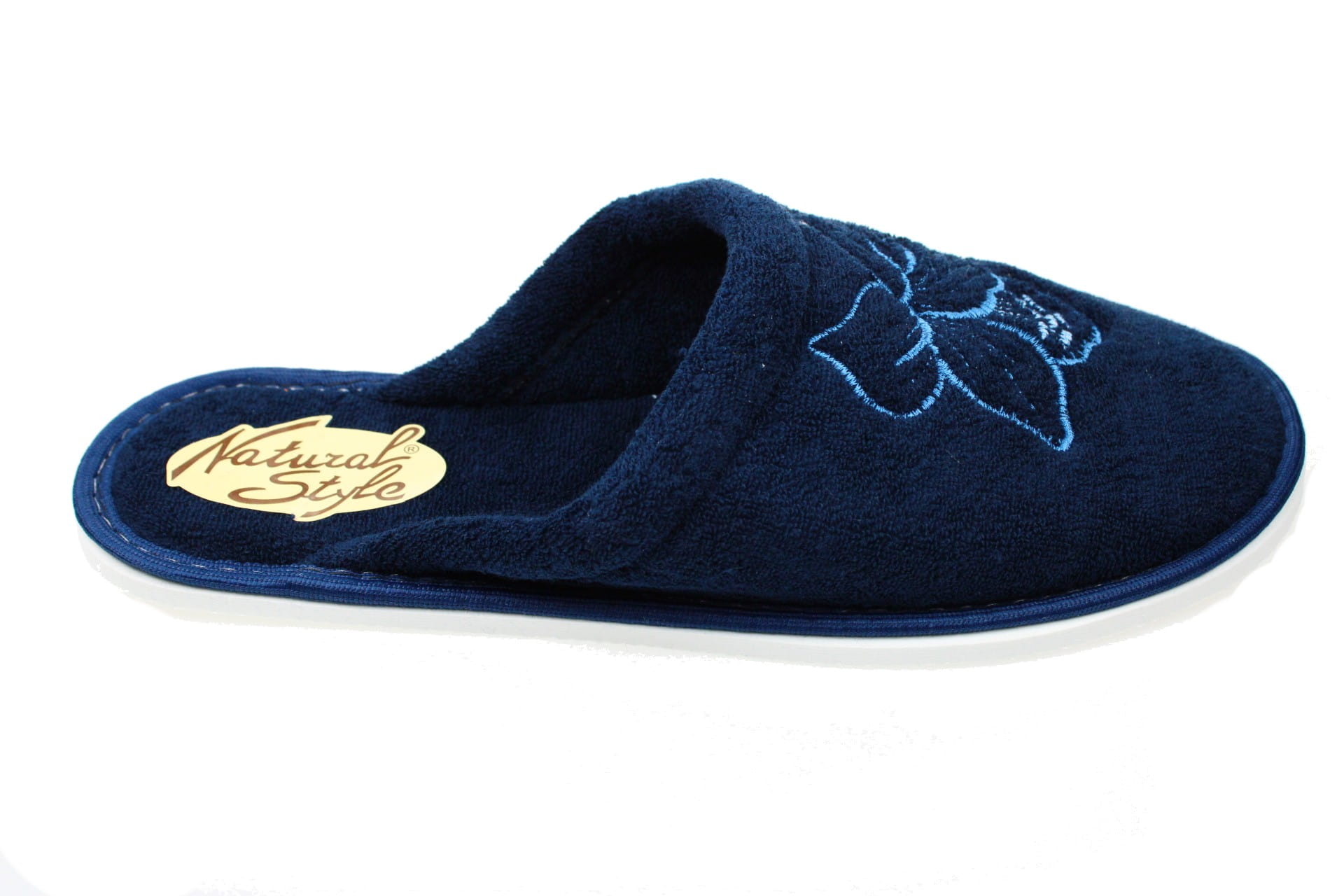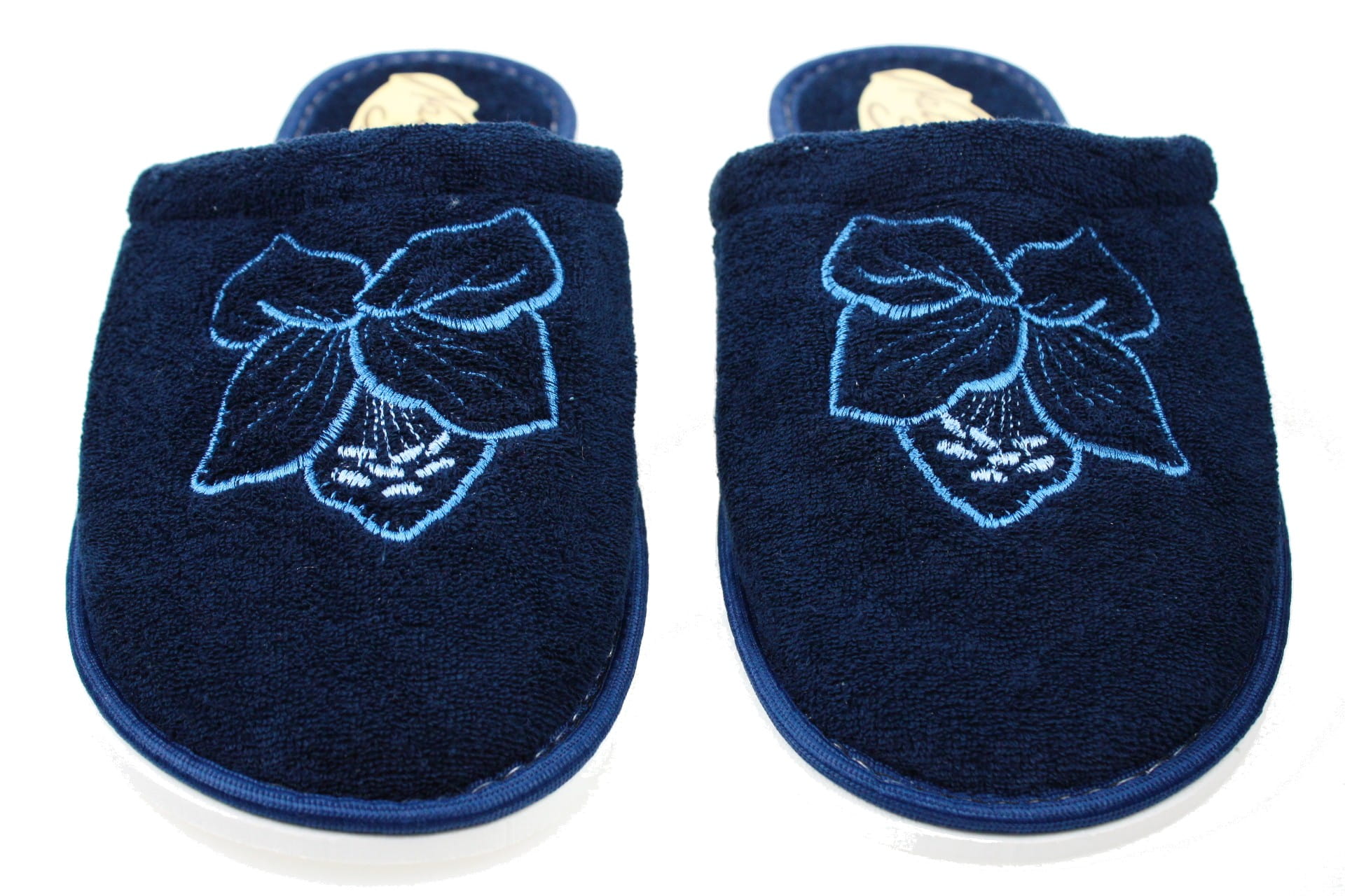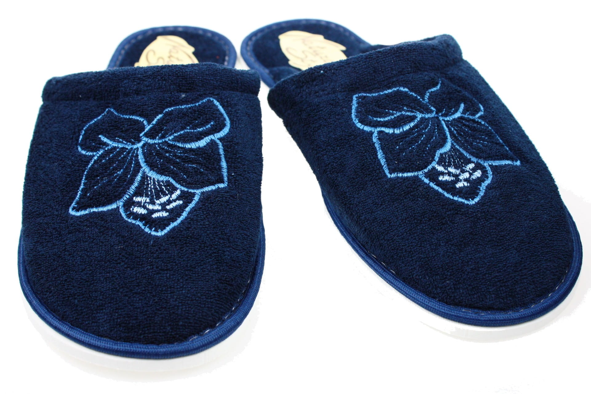 Laczki damskie pełne, cholewka i wkładka wykonane z tkaniny bawełnianej - weluru, dzięki której stopy oddychają i nie pocą się. Spód gumowy, antypoślizgowy, płaskie, bardzo lekkie i wygodne, przeznaczone do użytku domowego.