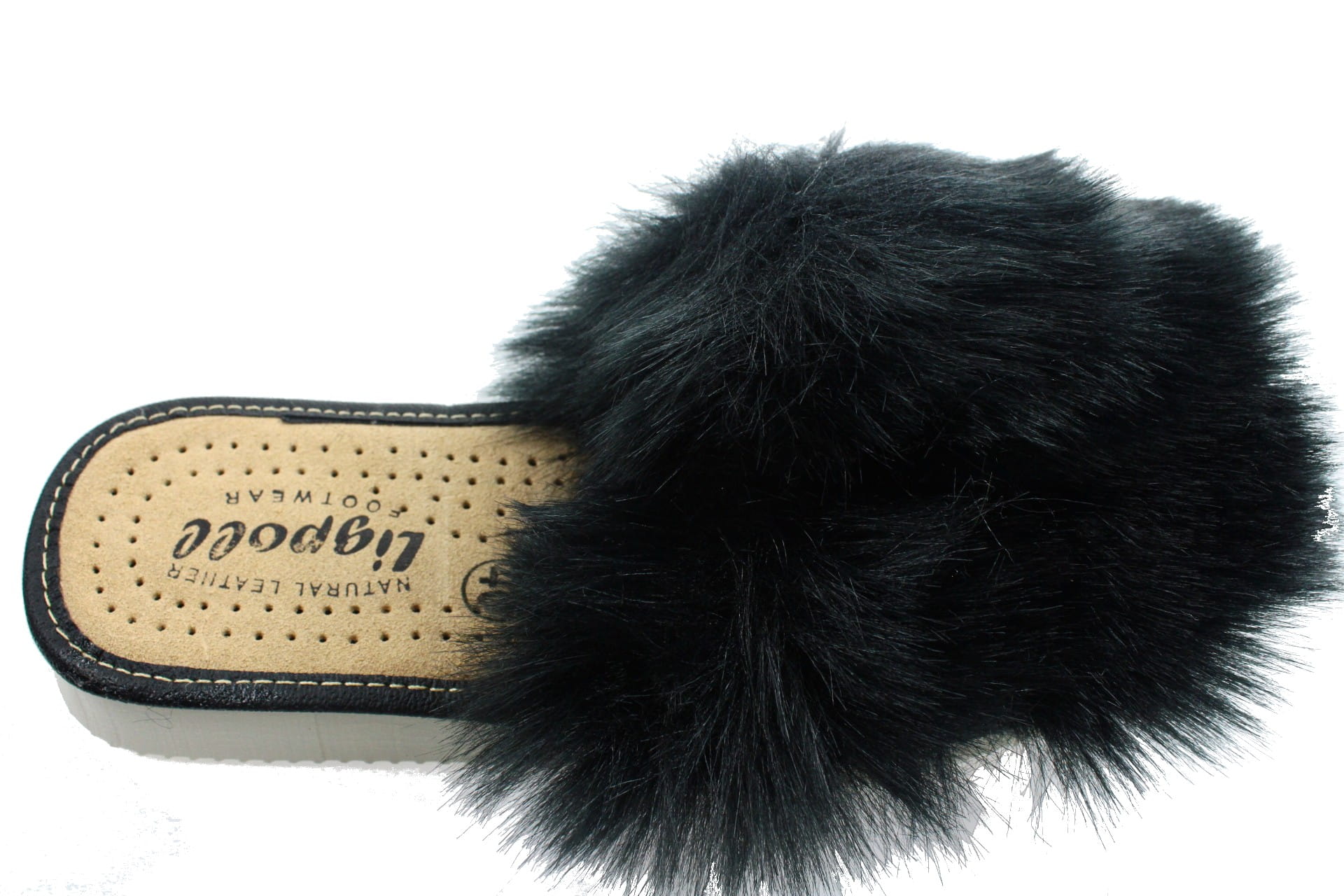 Laczki damskie otwarte (bez palcy) wykonane z naturalnych surowców. Wkładka skórzana, dzięki czemu stopy oddychają i nie pocą się. Bardzo lekkie i wygodne, Klin o wys. 2 cm, przeznaczone do użytku domowego.Spód gumowy antyposlizgowy.