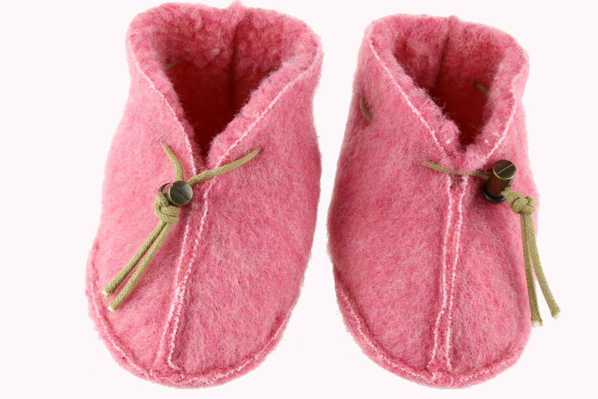 1264-B. Bambosze pełne wełna owcza różowe niechodki