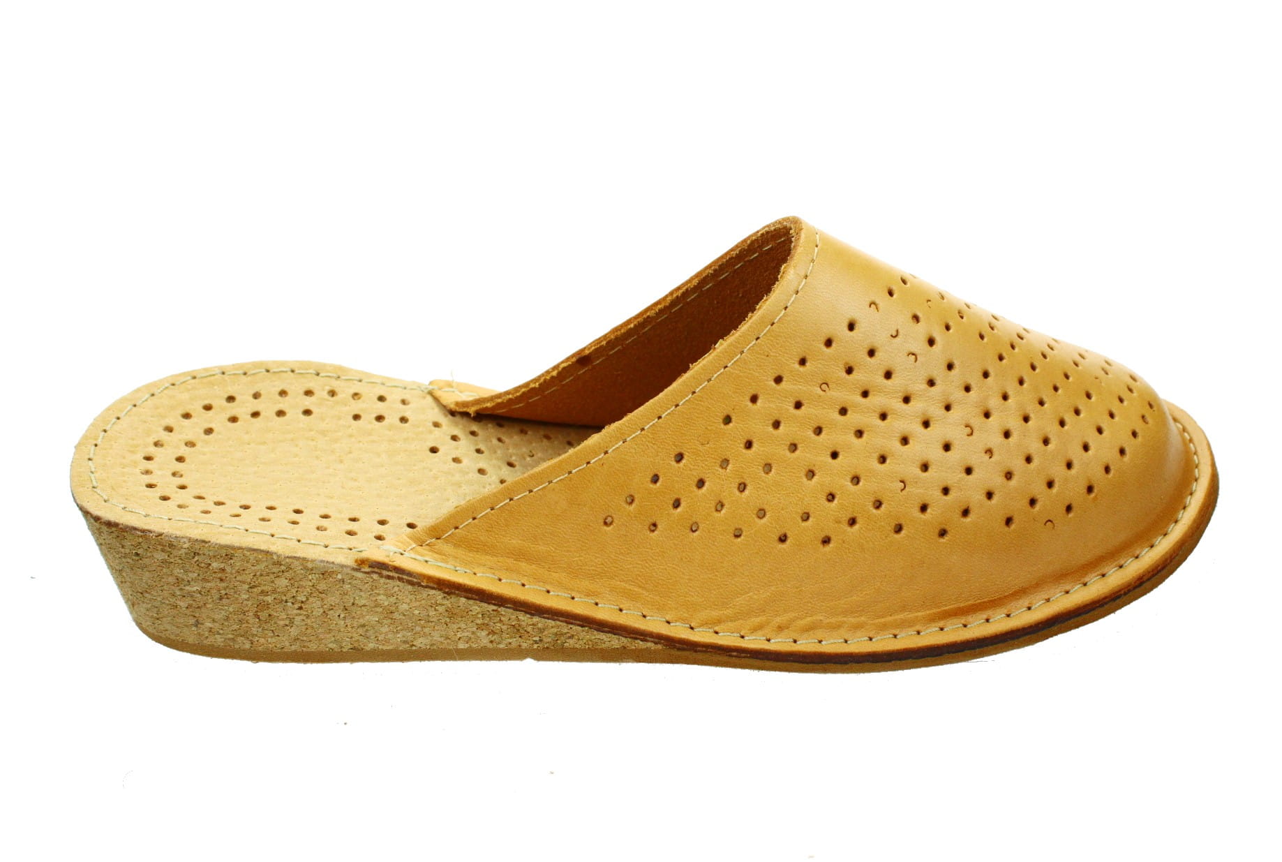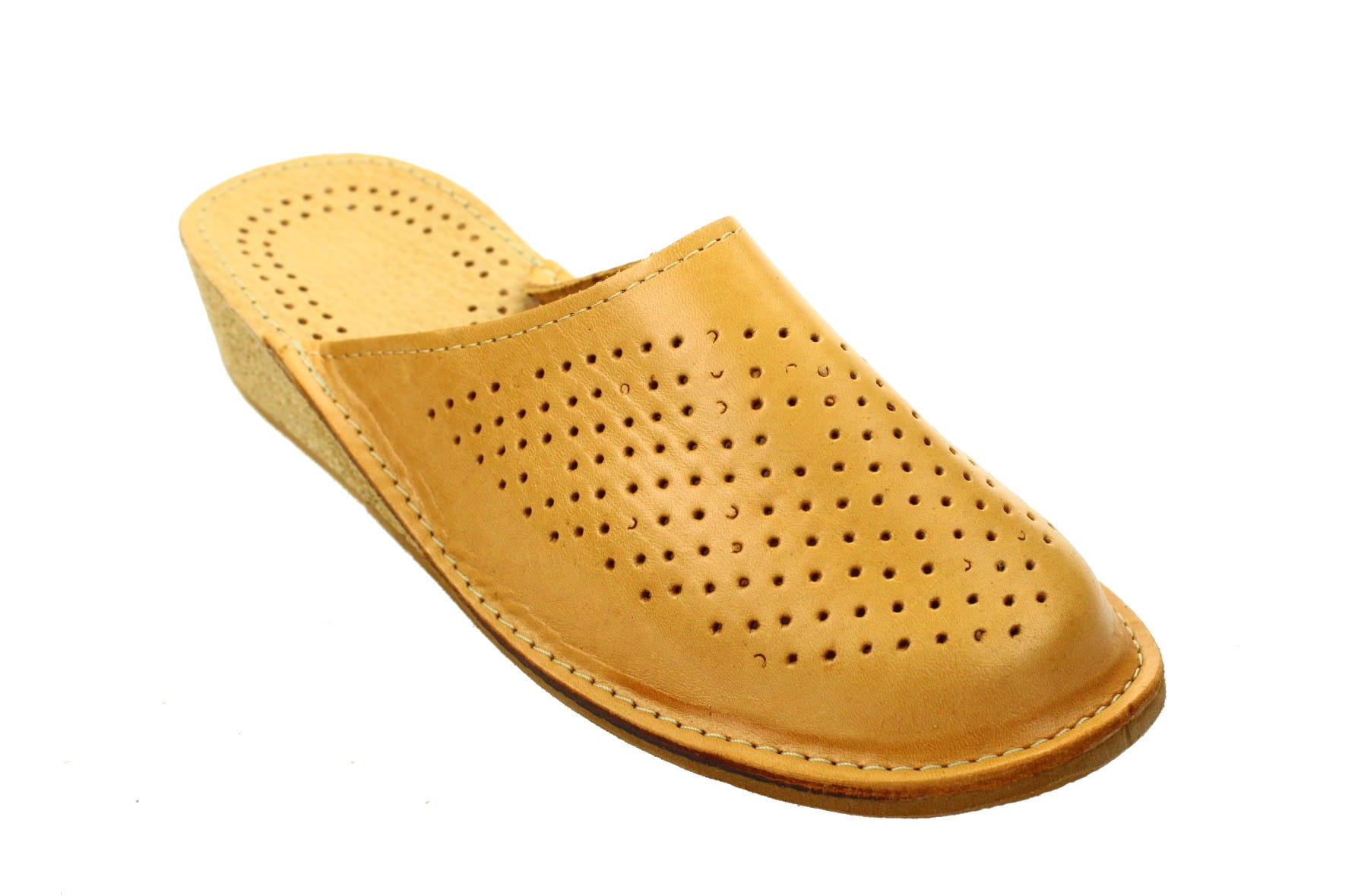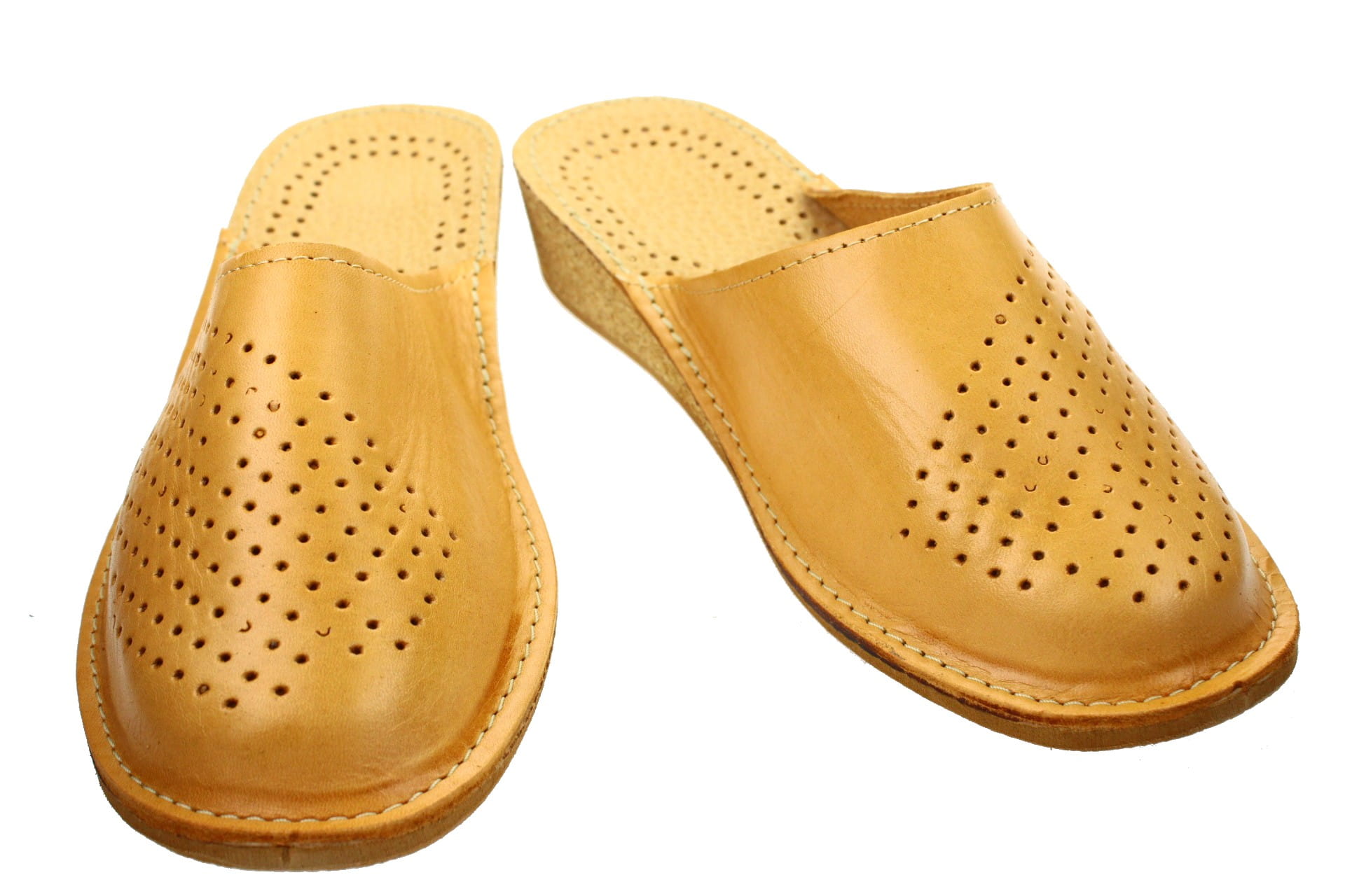 Laczki damskie pełne, wykonane z najwyższej jakości bydlęcej skóry - skóry juchtowej, na klinie z