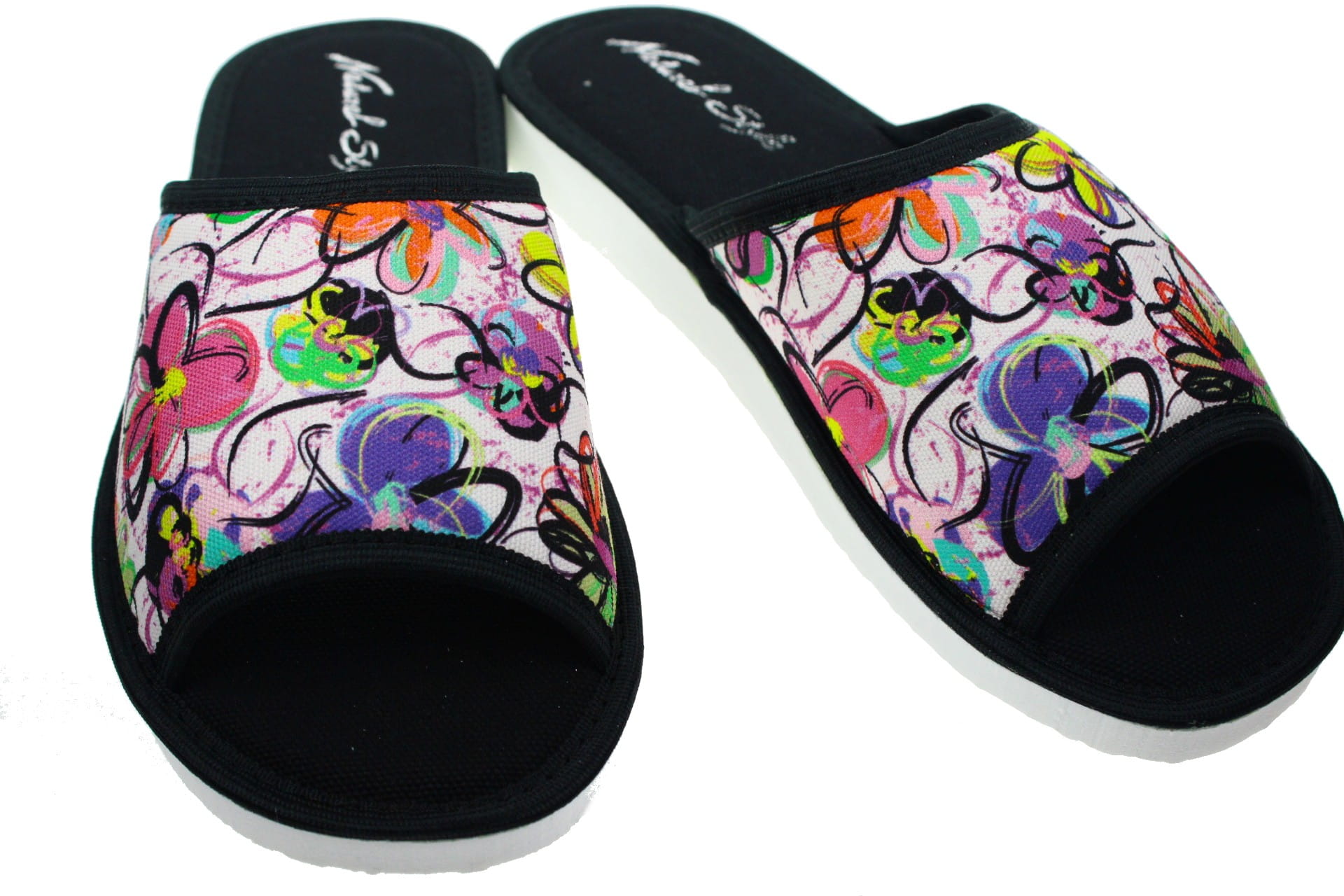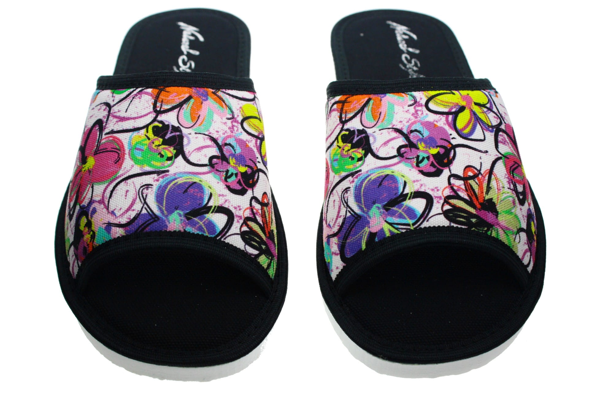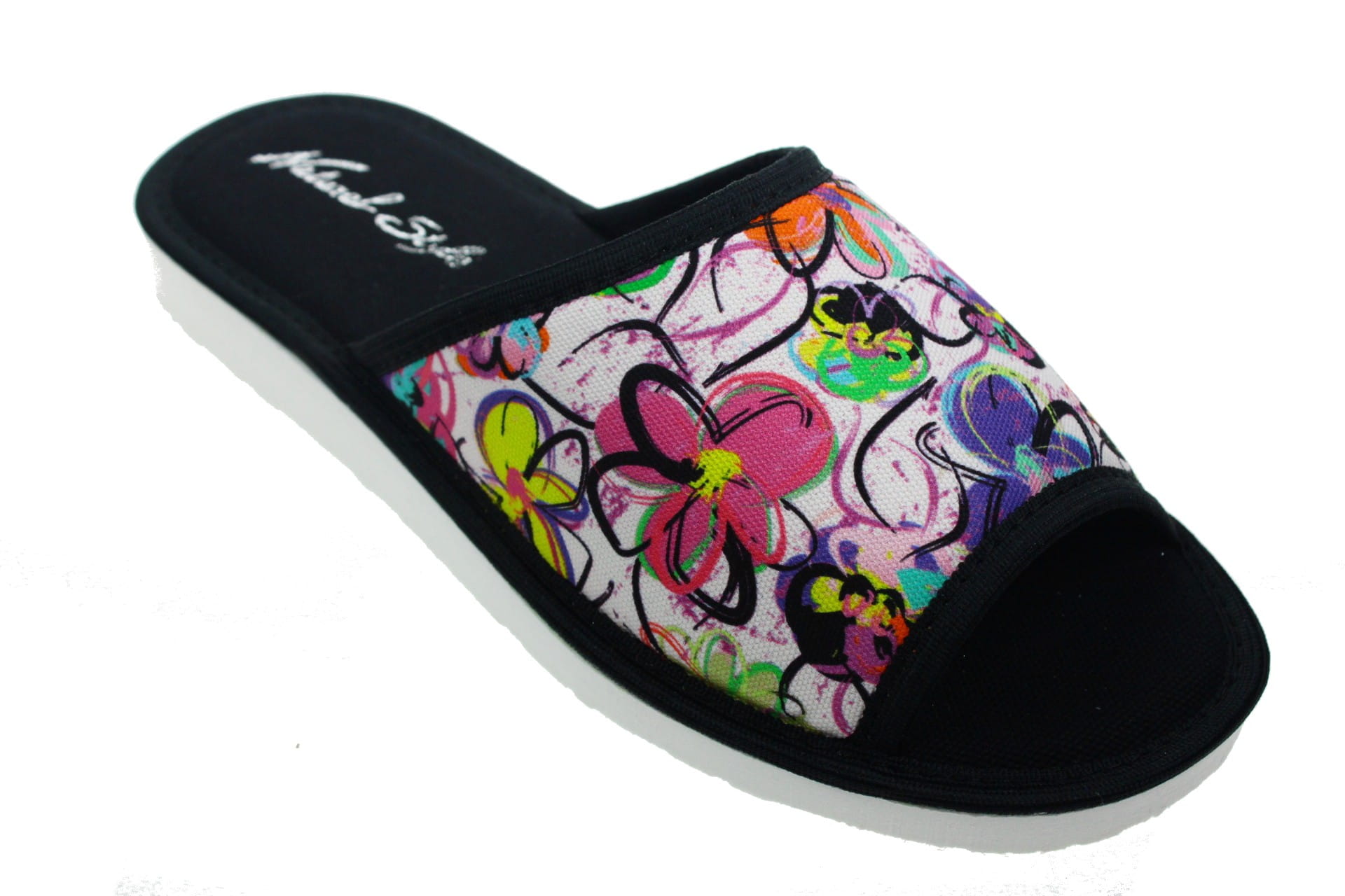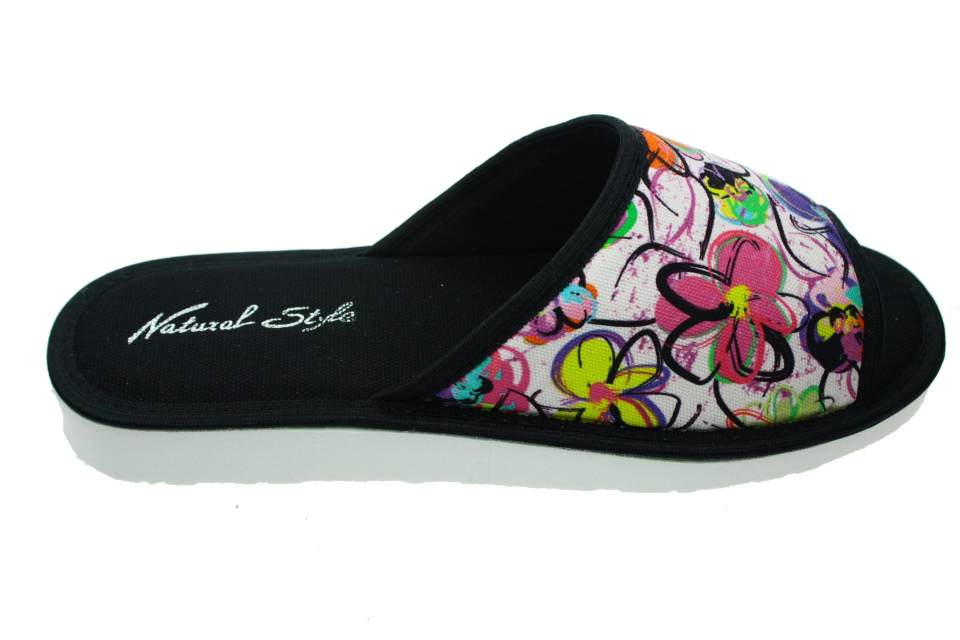 Laczki damskie otwarte, cholewka i wkładka wykonane z tkaniny bawełnianej ,