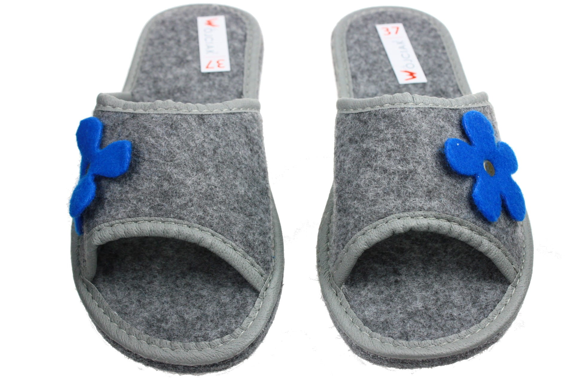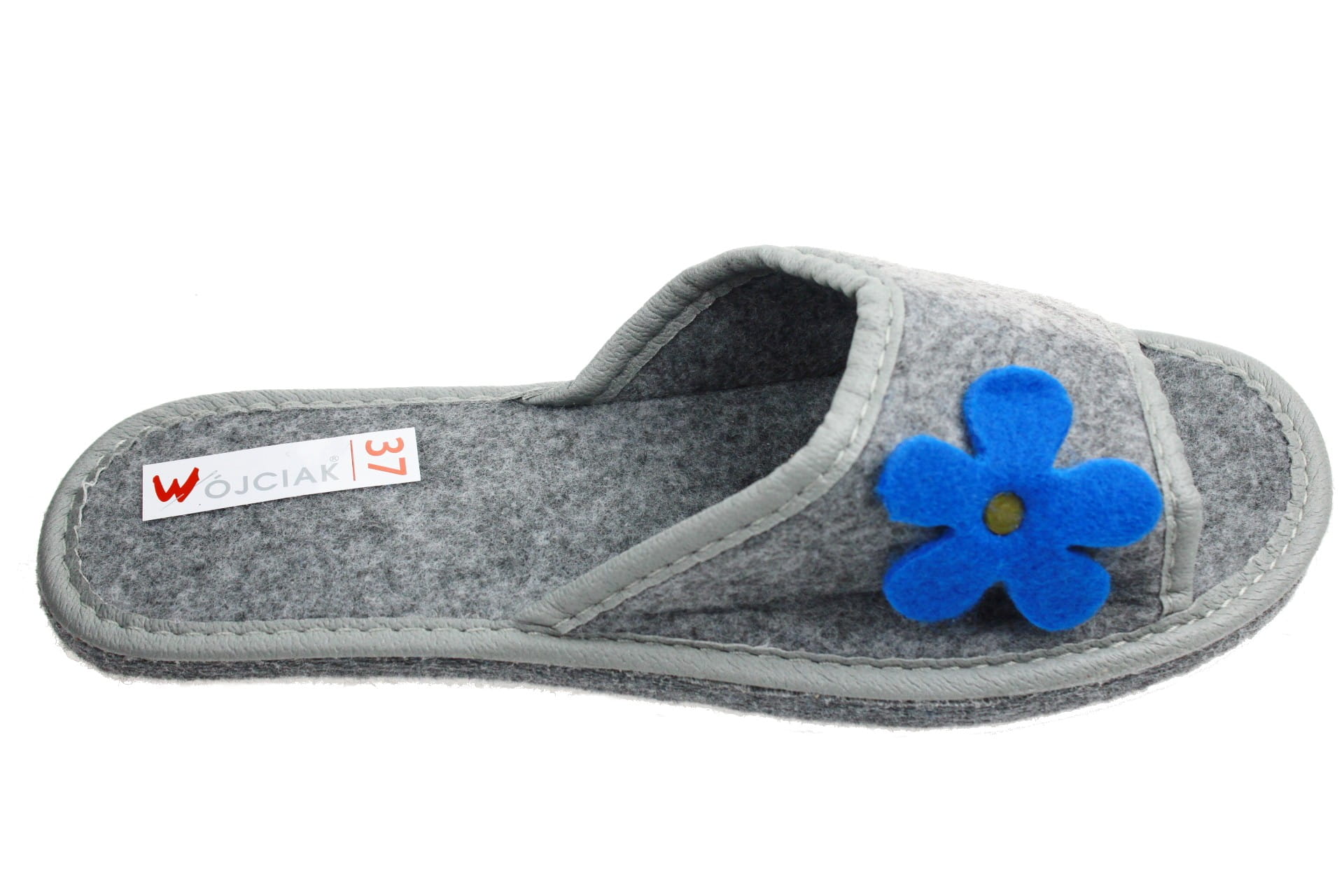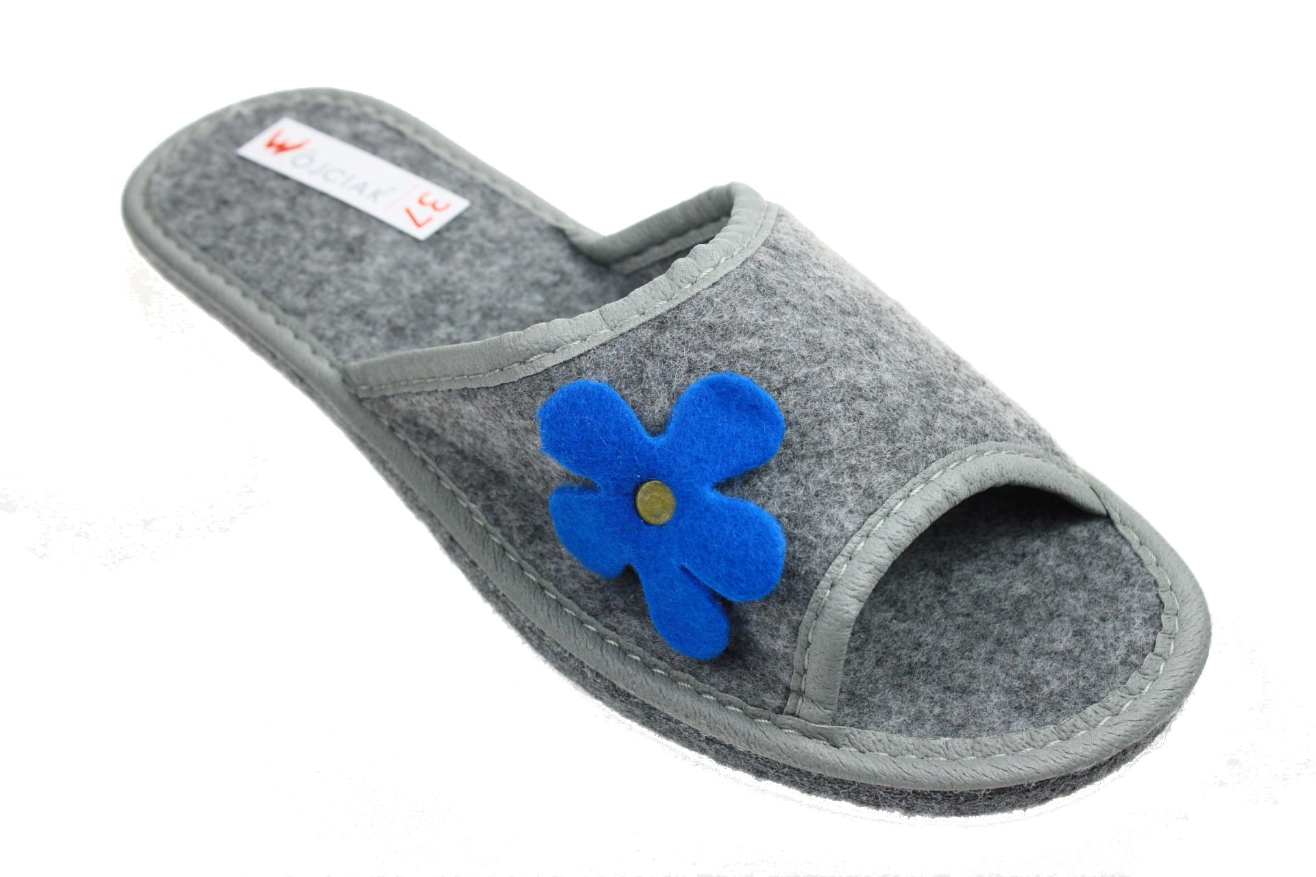 1395-A Laczki damskie Wójciak filcowe niebieski kwiatek b/p na filcu