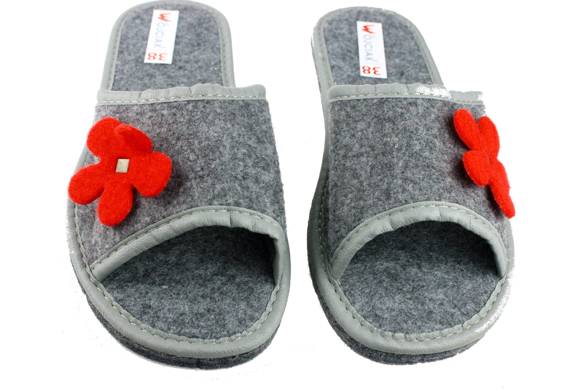 1395-B. Laczki damskie Wójciak filcowe czerwony kwiatek b/p na filcu