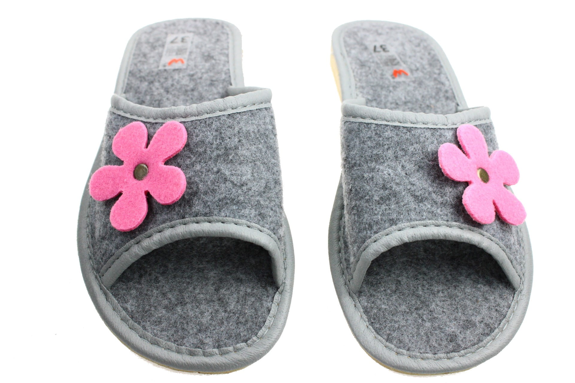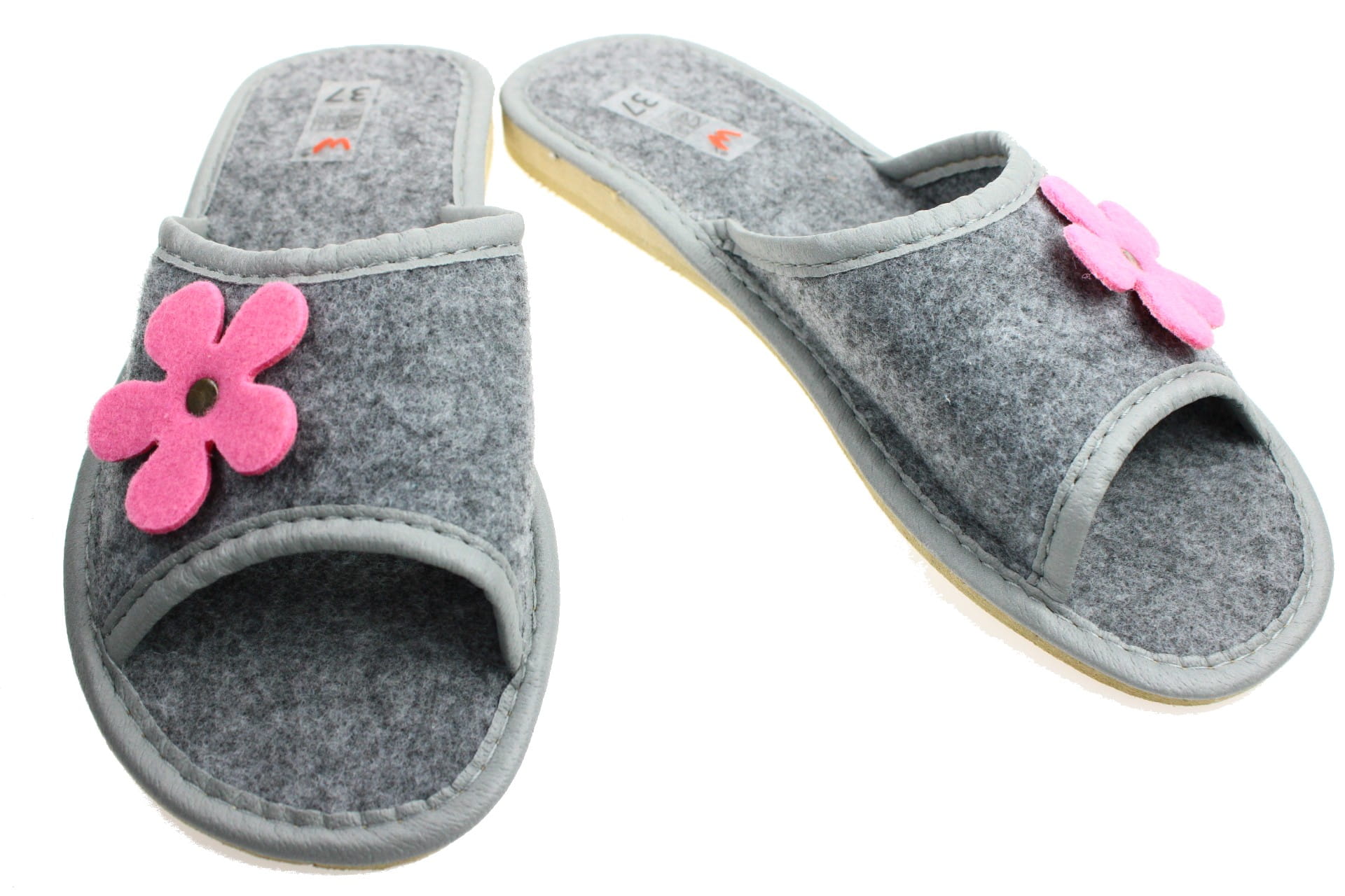 1395. Laczki damskie Wójciak filcowe różowy kwiatek b/p na gumie