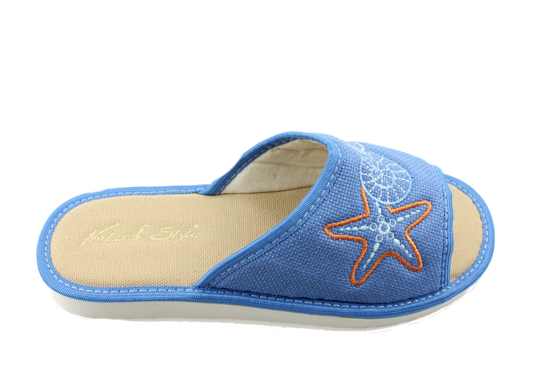 Laczki damskie otwarte, cholewka i wkładka wykonane z tkaniny bawełnianej ,