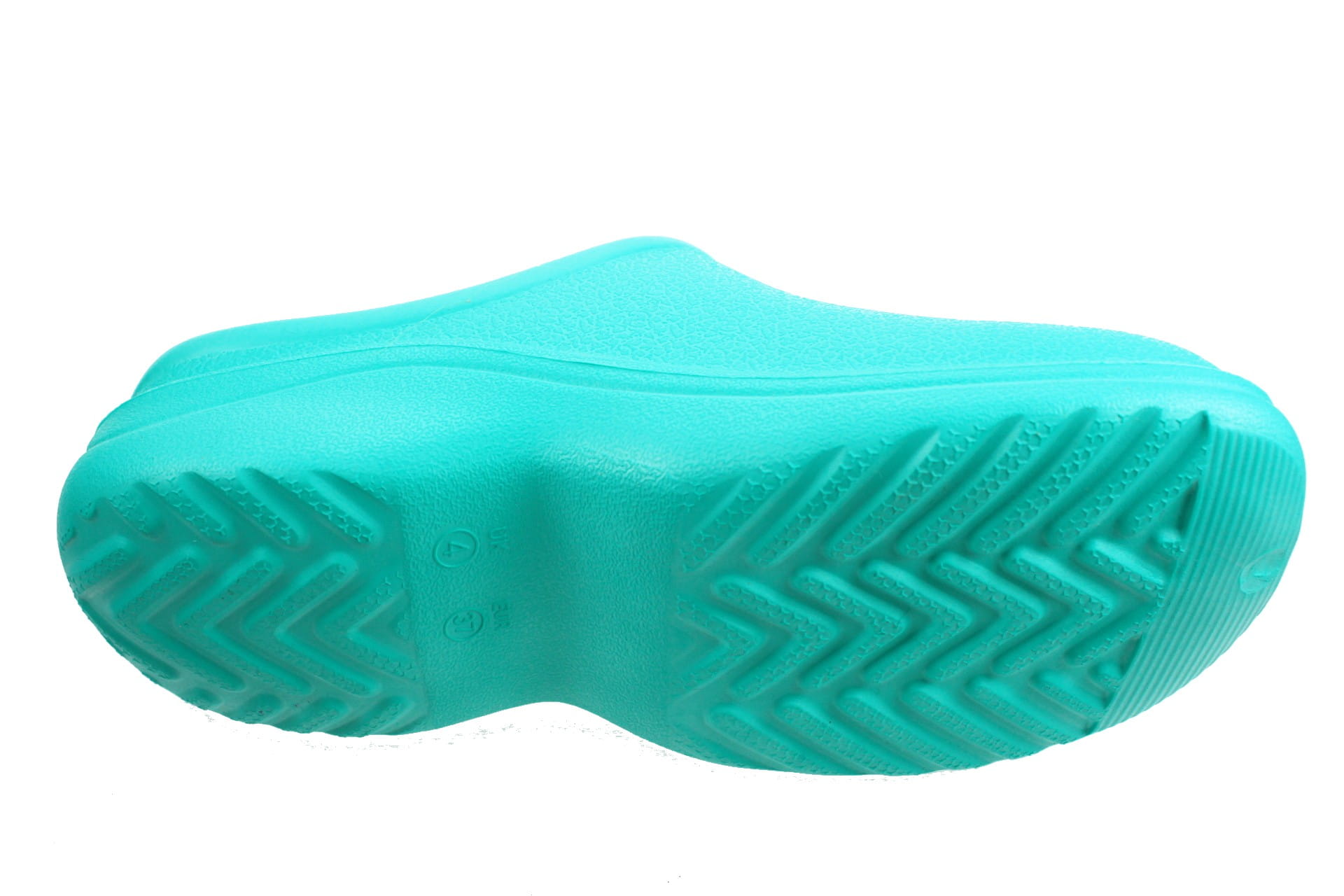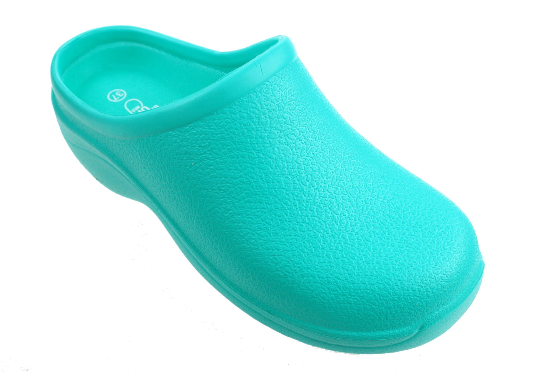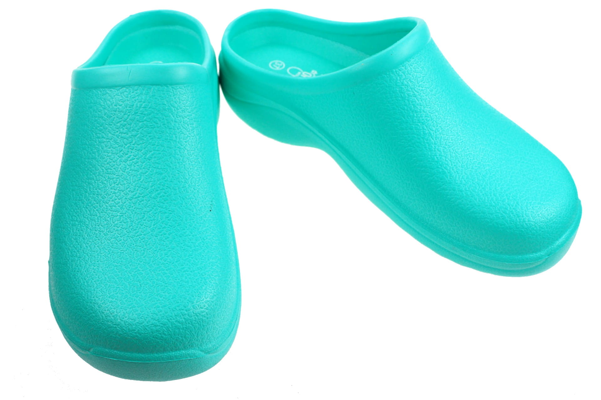 wykonane z wysokiej jakości tworzywa EVA. Klapki są bardzo wygodne podczas użytkowania, antypoślizgowe, super lekkie i elastyczne. Para waży średnio ok. 200g. Dodatkowym atutem jest łatwość utrzymania ich w czystości, dzięki wyjmowanej wkładce.Podwyższona pięta. Dzięki pęcherzykom powietrza, zawartymi w materiale, posiadają doskonałą termiczność Przeznaczone do użytku domowego, na basen, do ogrodu, plażę ale również w przemyśle spożywczym, branży medycznej, przychodniach, szpitalach itd.