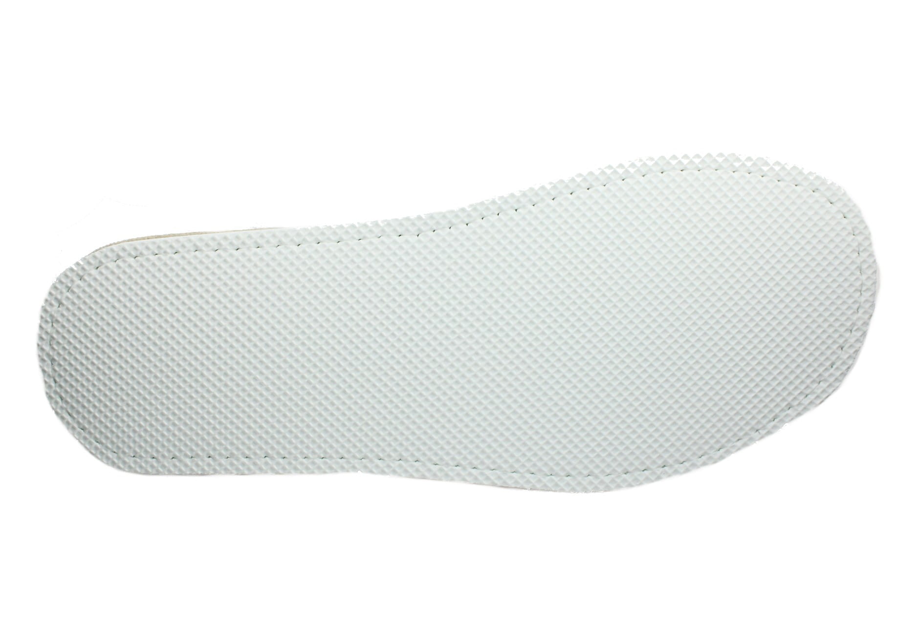 Laczki damskie bez palcy (otwarte), cholewka i wkładka wykonane z tkaniny bawełnianej - miękka frotka, dzięki której stopy oddychają i nie pocą się. Spód gumowy, antypoślizgowy, płaskie, bardzo lekkie i wygodne, przeznaczone do użytku domowego.