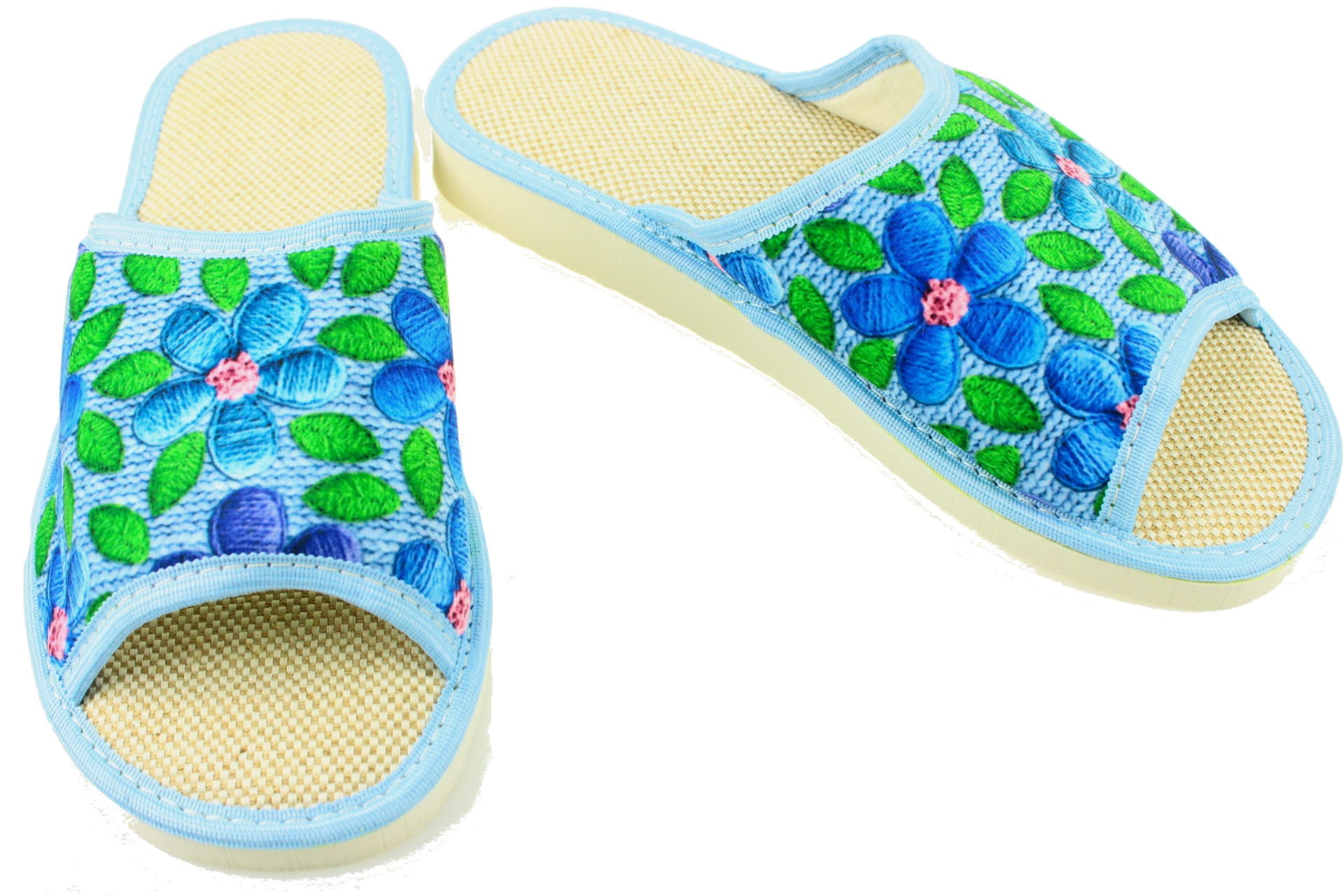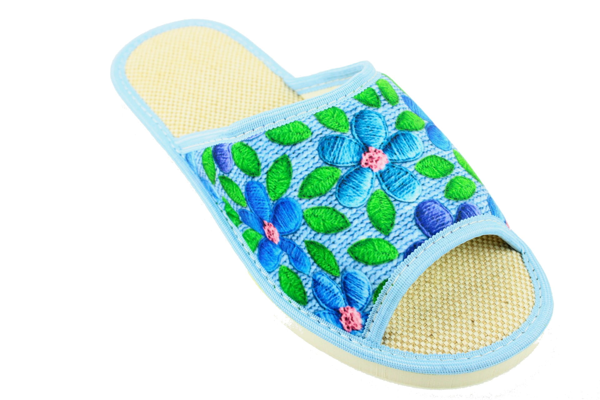 Laczki damskie otwarte, cholewka i wkładka wykonane z tkaniny bawełnianej , dzięki,