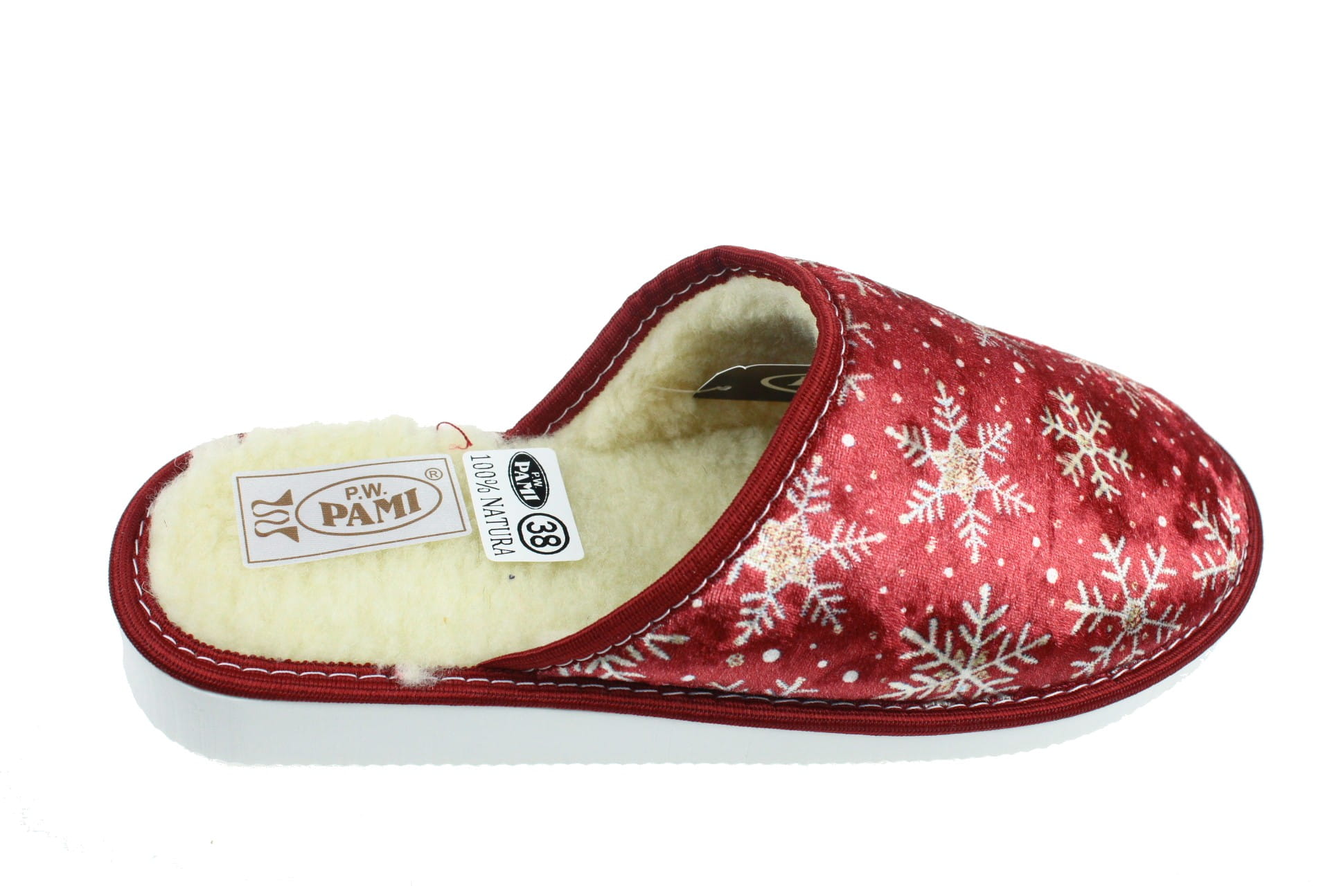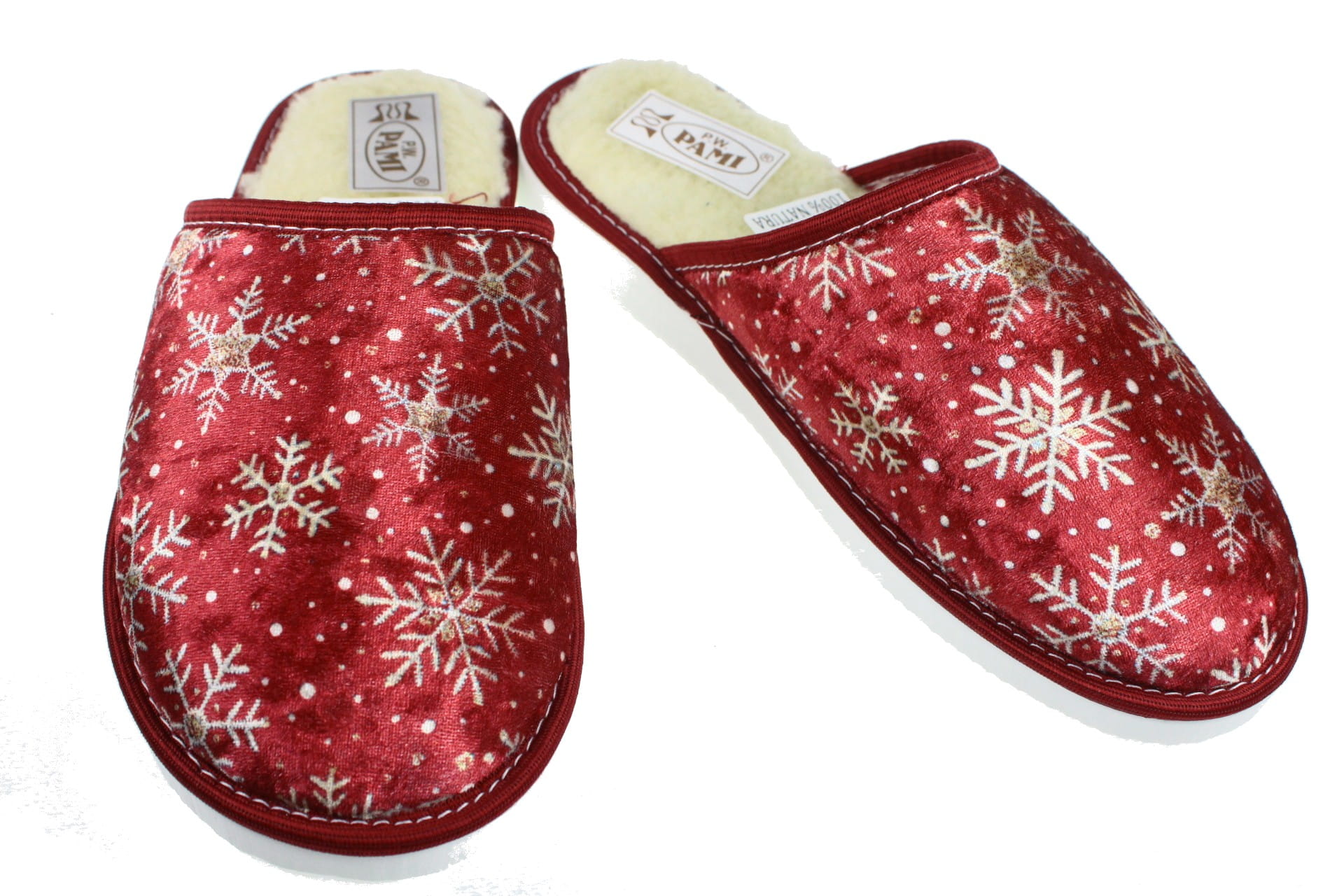 Laczki damskie pełne, wyściełane wełną owczą. Modny design jak i kolorystyka. Pantofle przeznaczone dla osób z wyższym przegubiem. Spód piankowy - EVA, klin o wys. 2 cm, przeznaczone do użytku domowego. Dzięki wyściółce z wełny, pantofle są ciepłe, lekkie i wygodne.