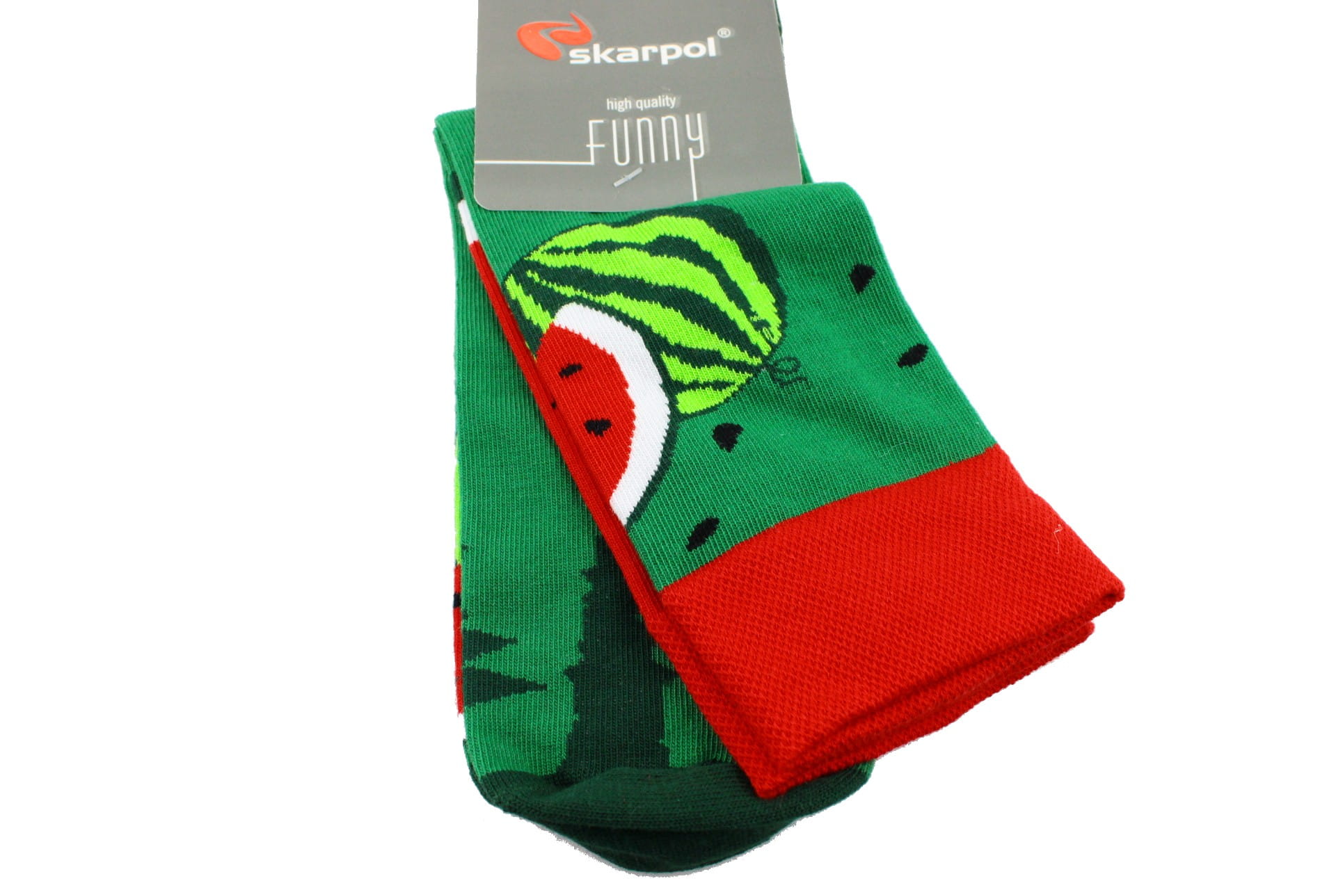 Skarpety Skarpol Funny dla kobiet, mężczyzn i młodzieży, wykonane są z dobrej bawełny. Posiadają nieuciskający ściągacz i płaski szew. Zapewniają wygodę i komfort. Zabawny wzór przełamie każdą stylizację. Idealne na prezent.