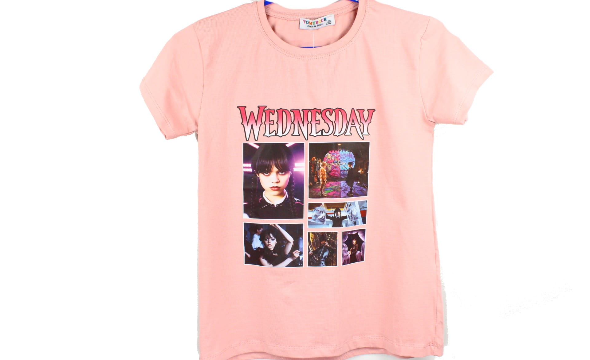 Bluzka z aplikacją Wednesday, bohaterką popularnego serialu.