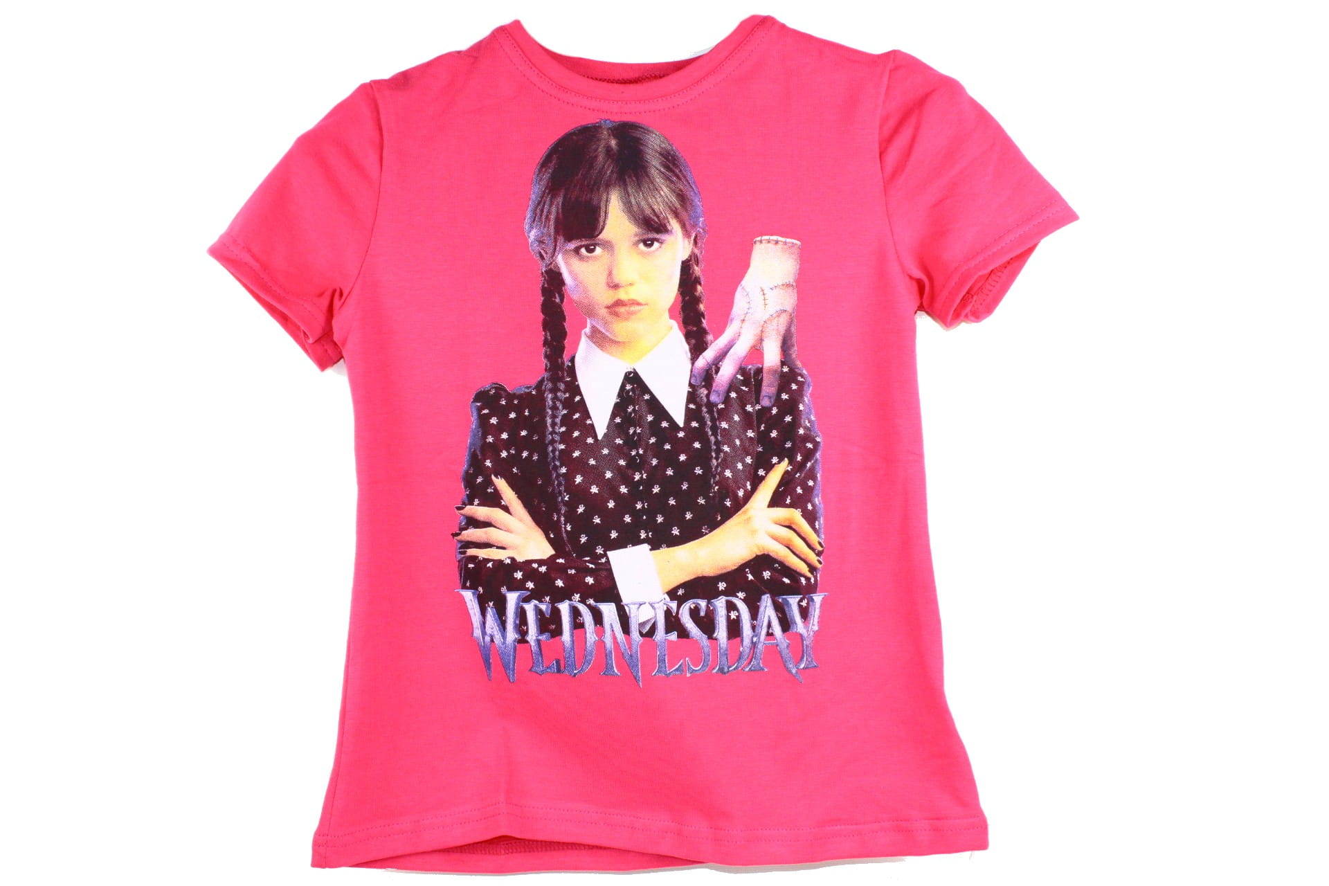 Bluzka z aplikacją Wednesday, bohaterką popularnego serialu.