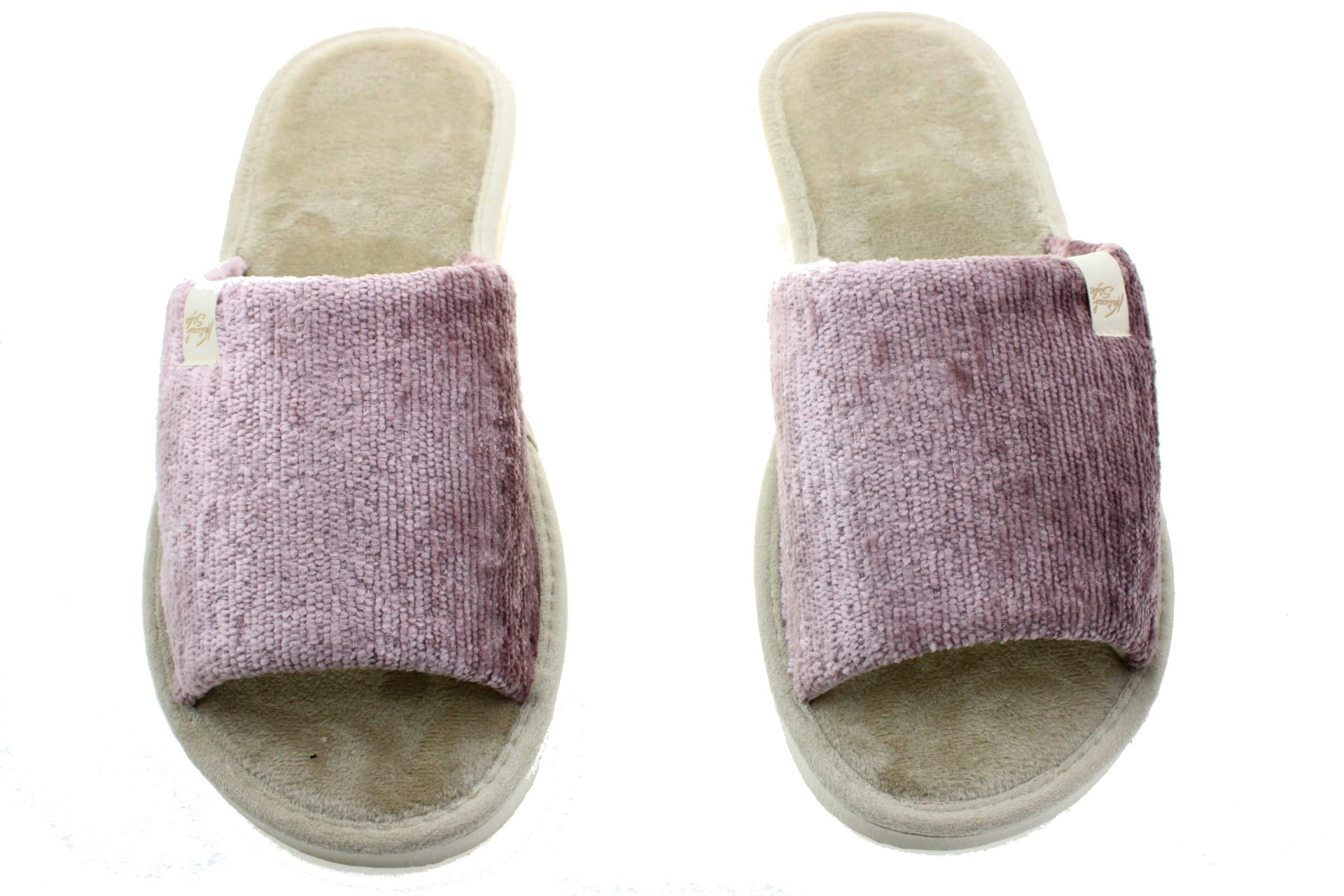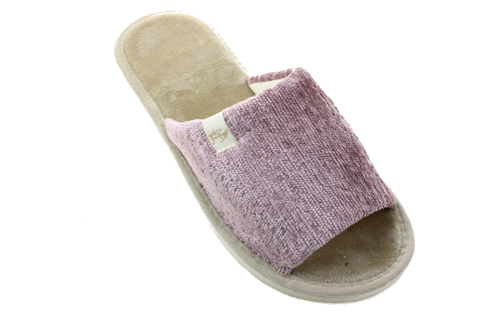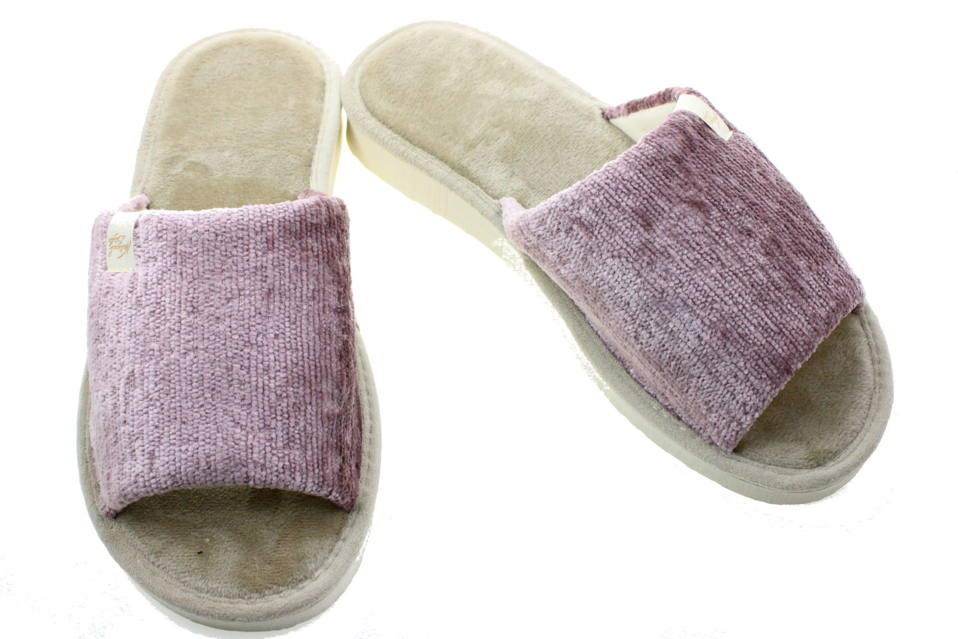 Laczki damskie otwarte,  cholewka i wkładka wykonane z tkaniny bawełnianej -  weluru, dzięki,