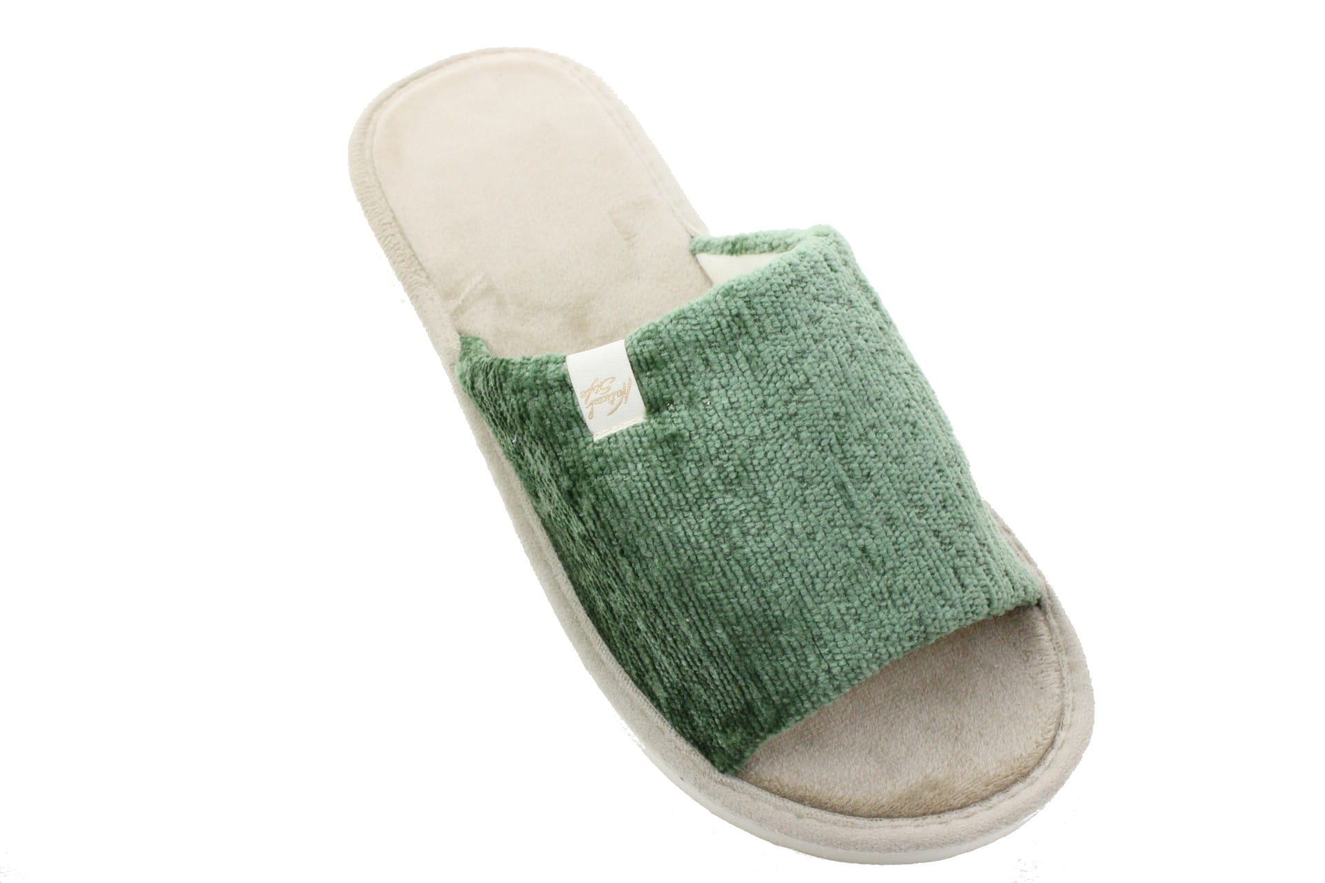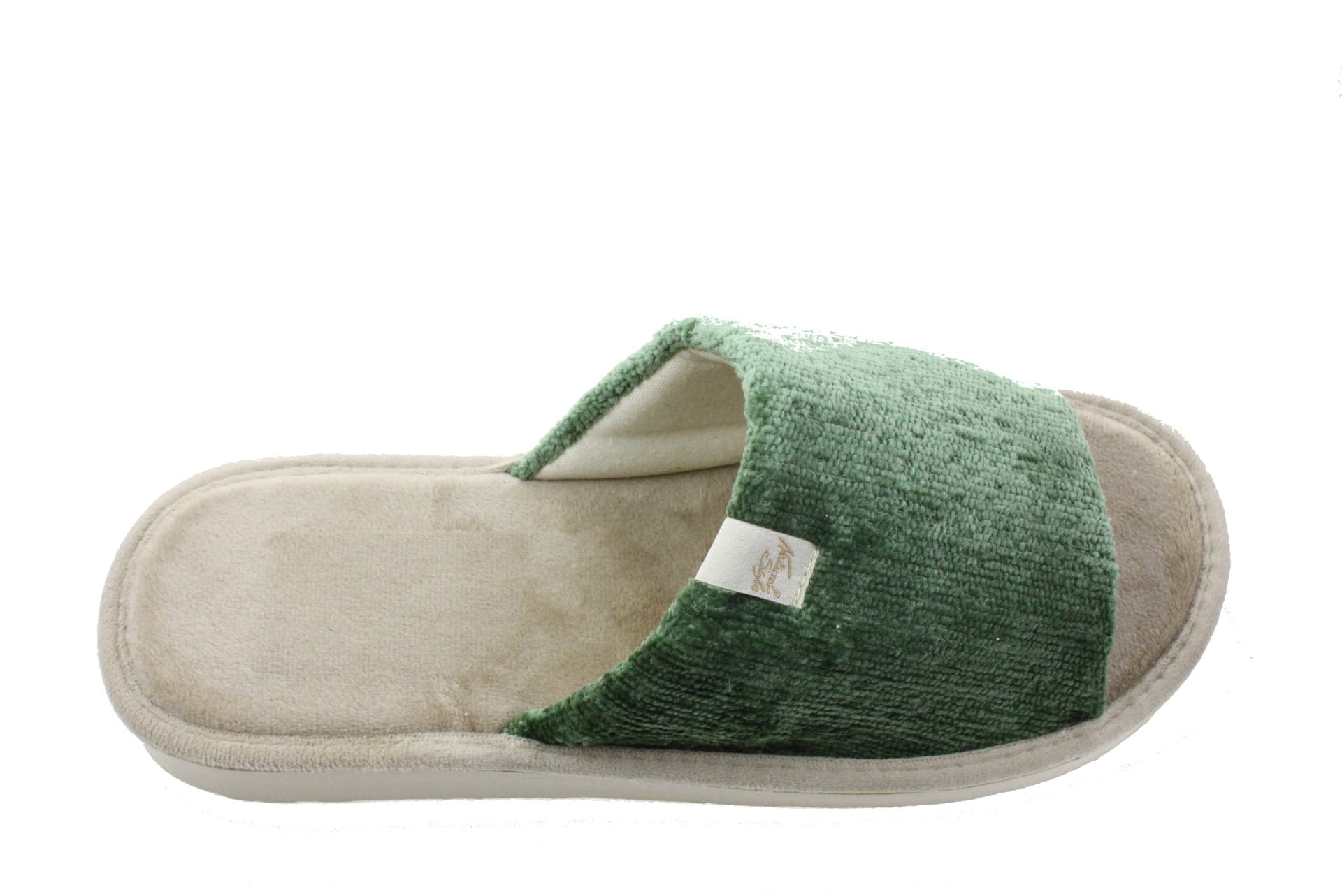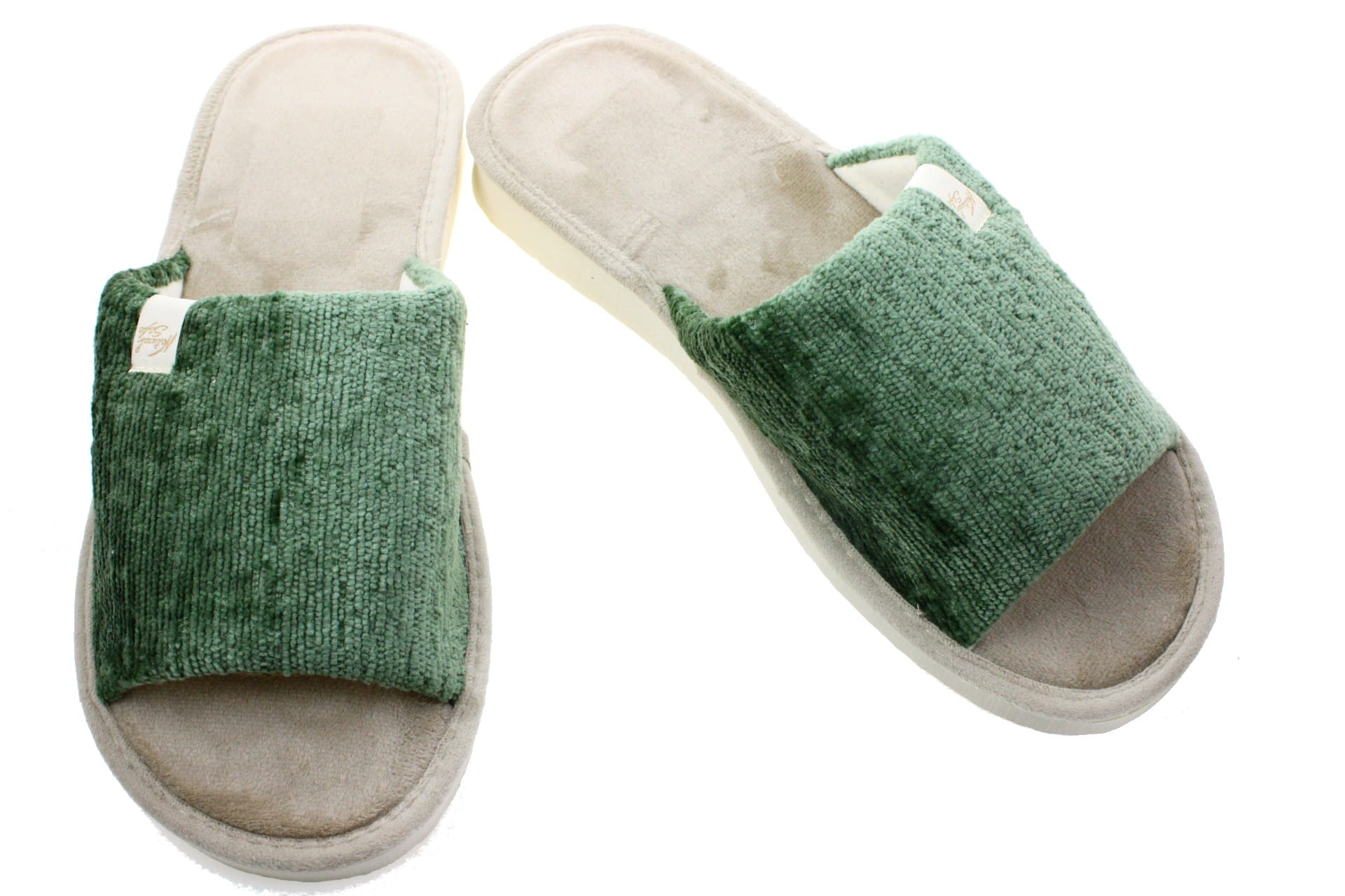 Laczki damskie otwarte,  cholewka i wkładka wykonane z tkaniny bawełnianej -  weluru, dzięki,