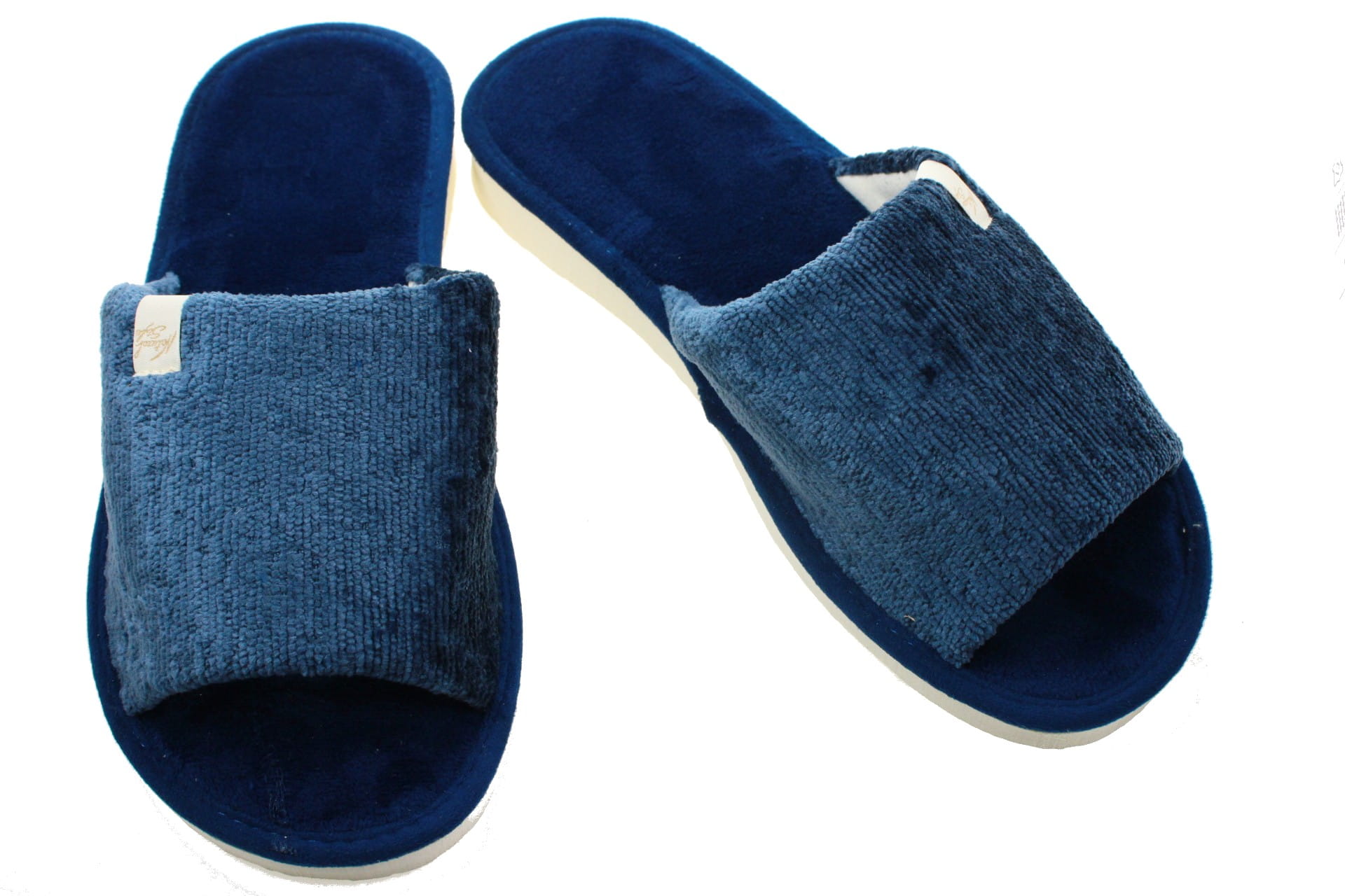 Laczki damskie otwarte,  cholewka i wkładka wykonane z tkaniny bawełnianej -  weluru, dzięki,