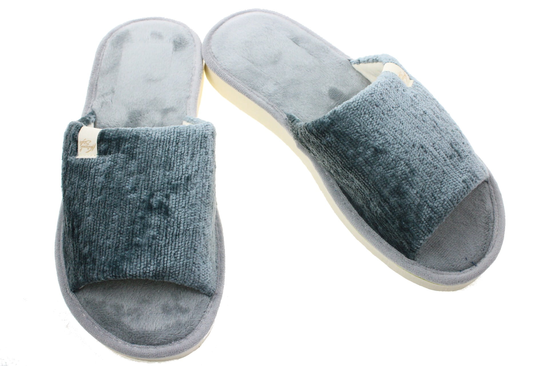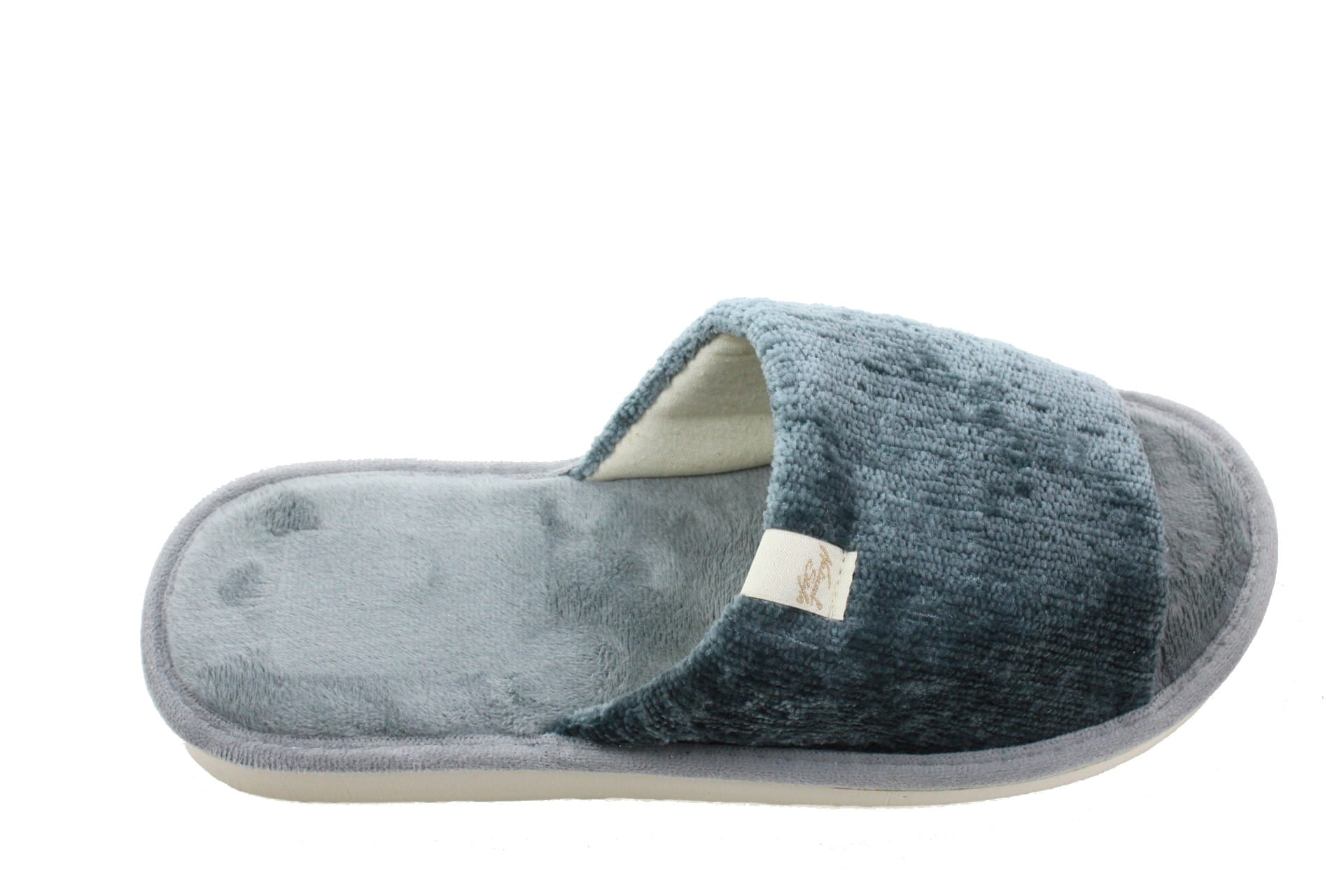 Laczki damskie otwarte,  cholewka i wkładka wykonane z tkaniny bawełnianej -  weluru, dzięki,
