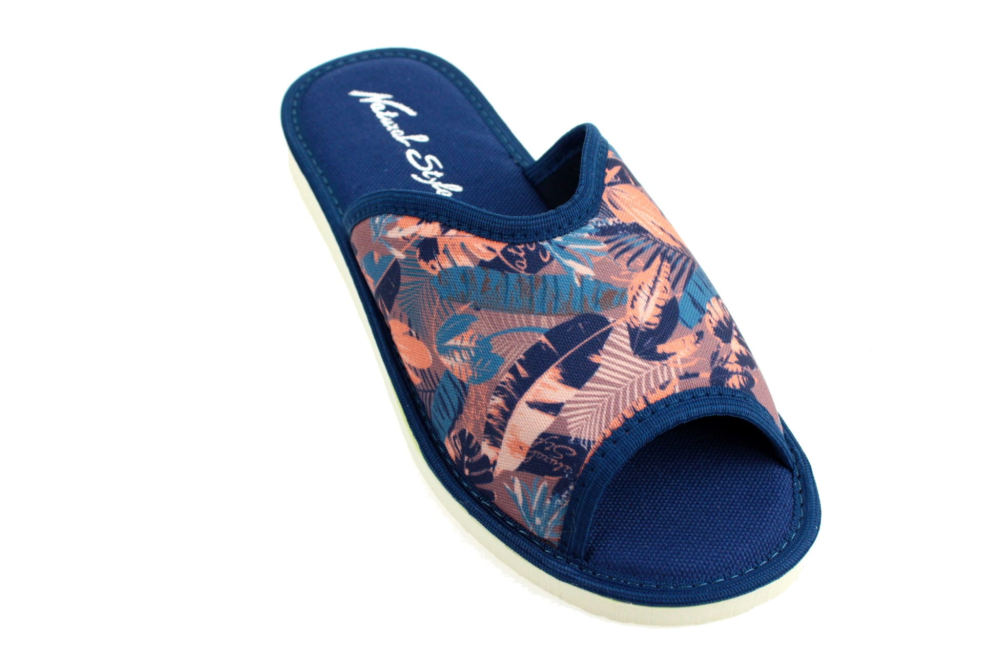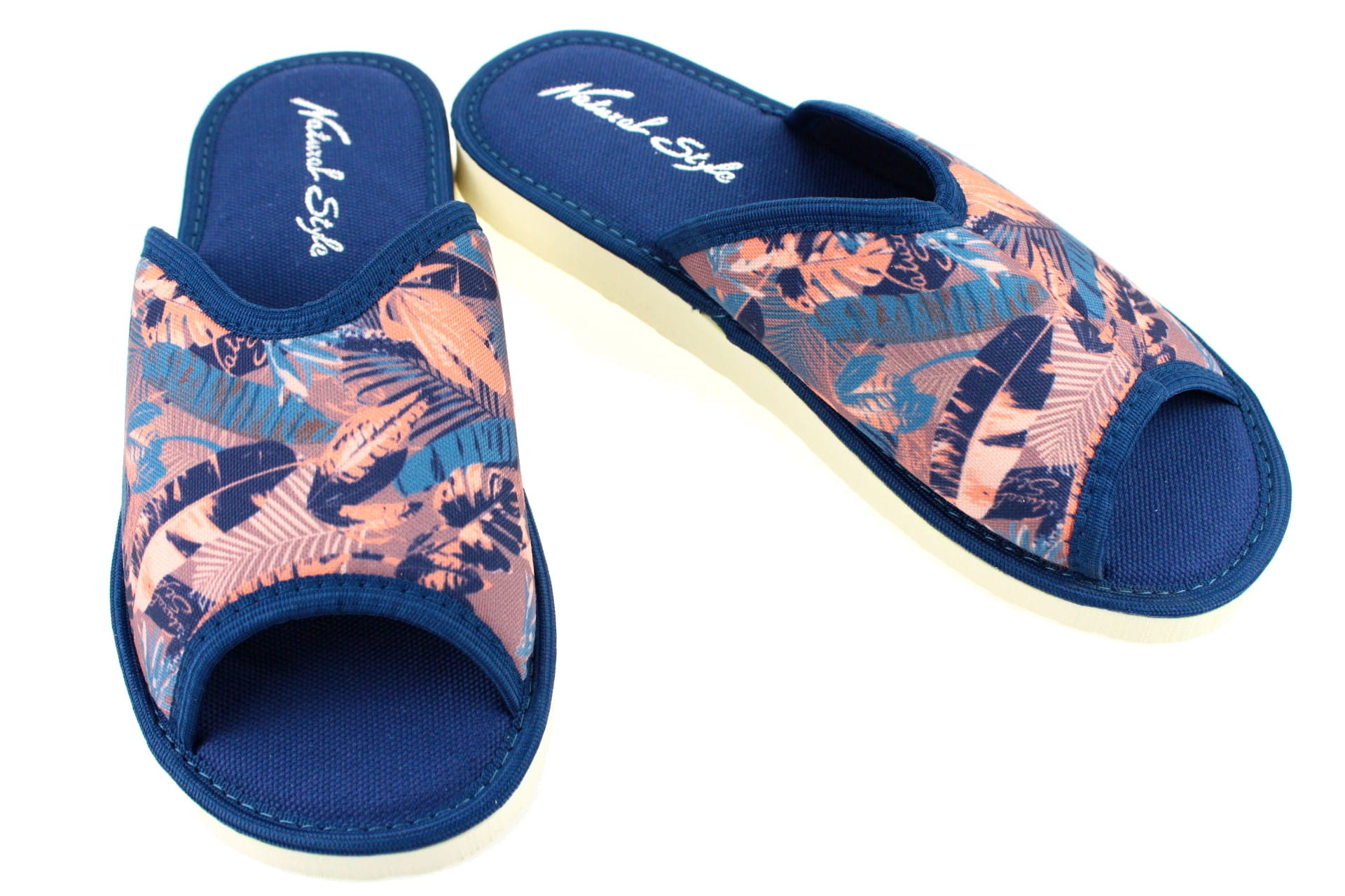 Laczki damskie otwarte, cholewka i wkładka wykonane z tkaniny bawełnianej , dzięki  której  stopy