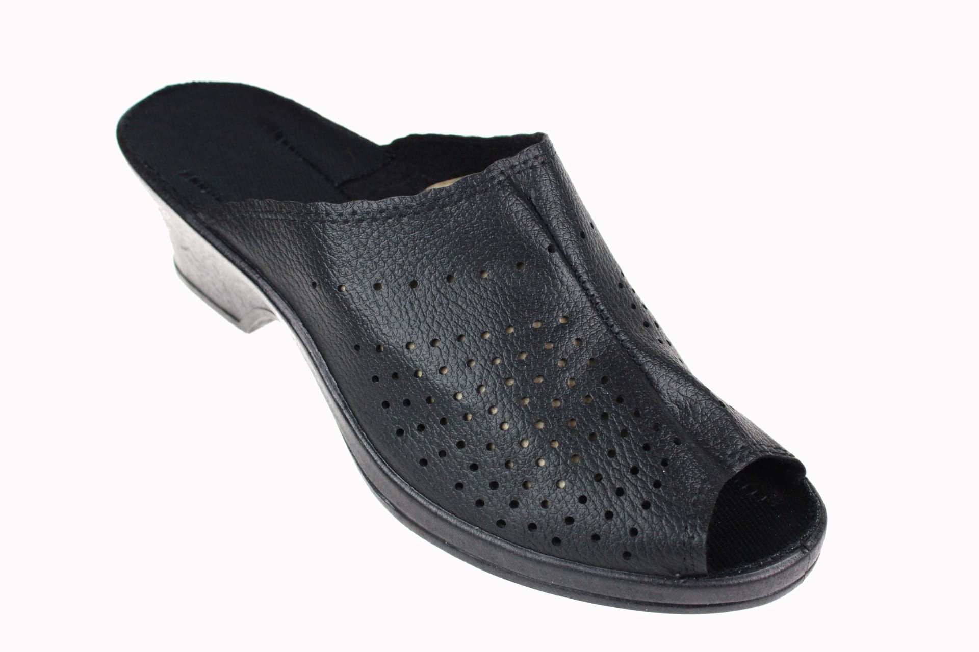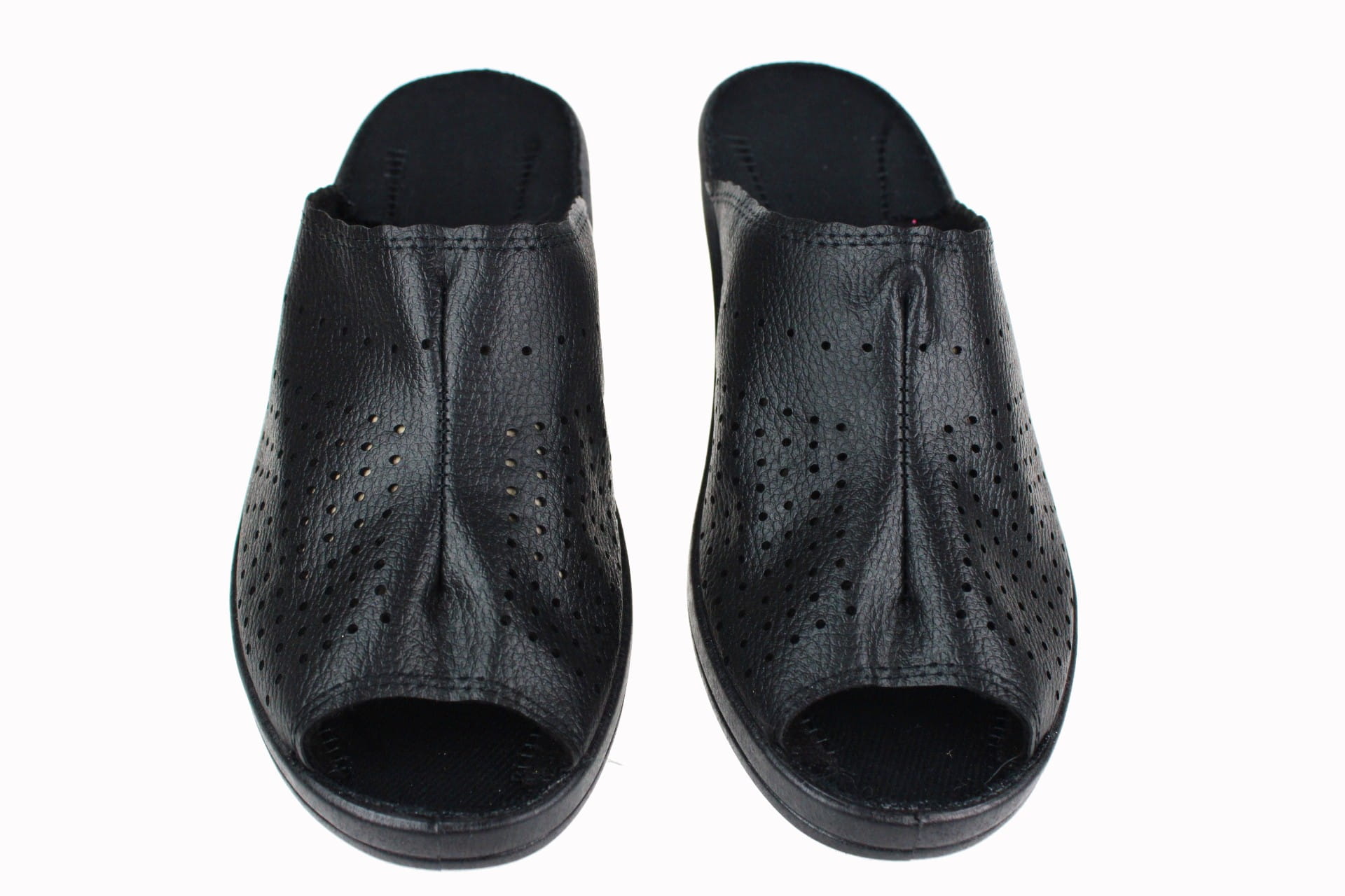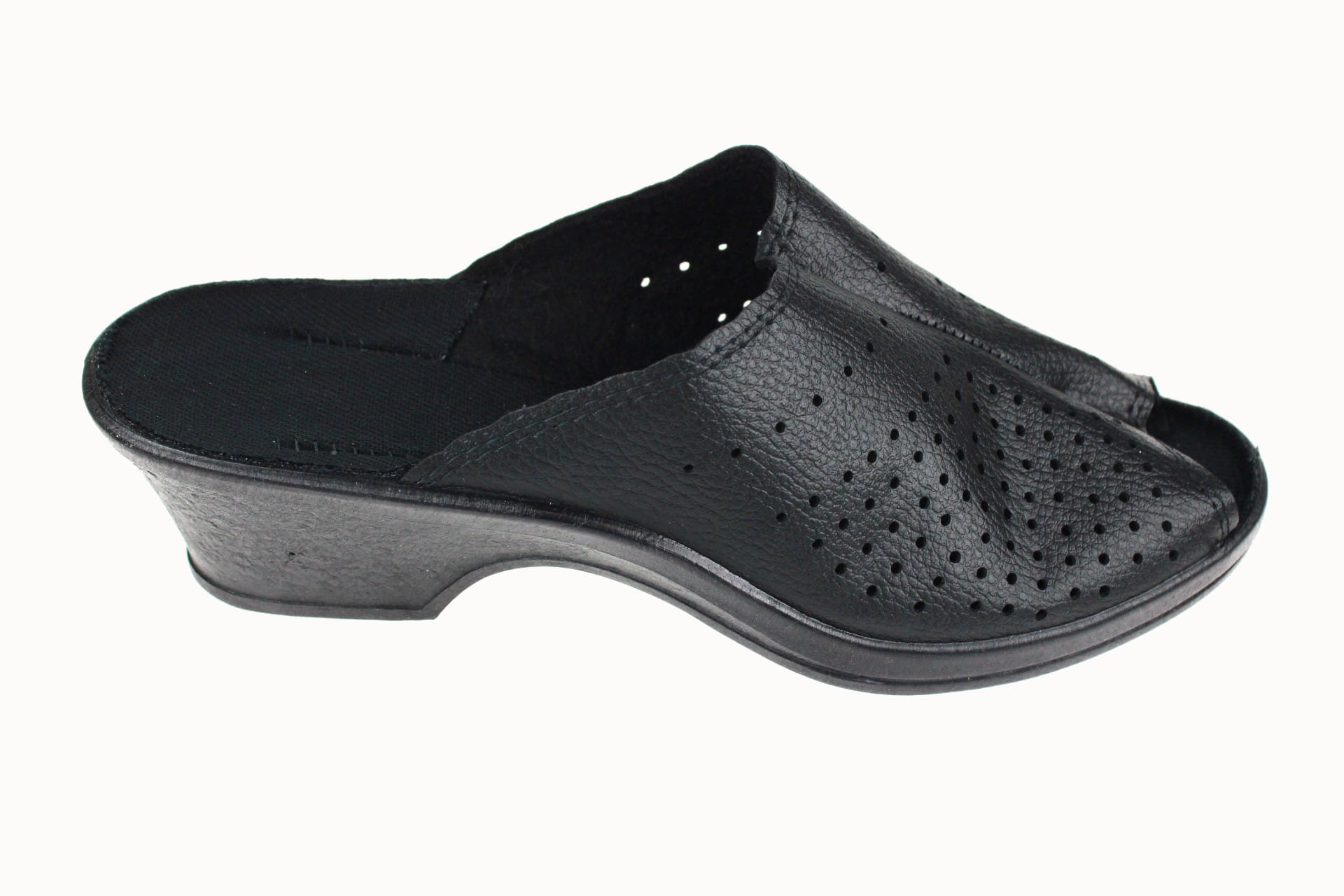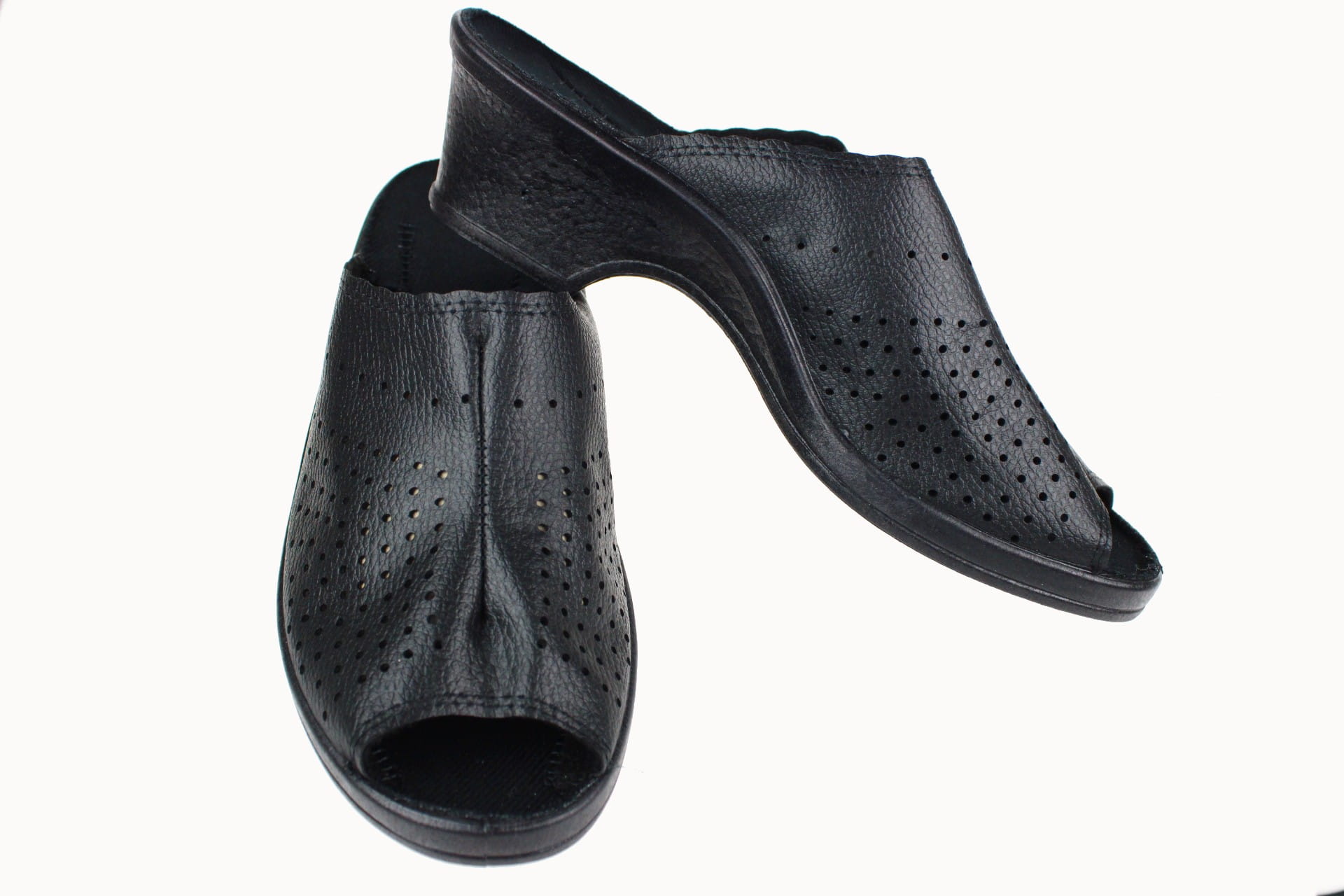 Obuwie damskie otwarte (bez palcy), wykonane z naturalnych tkanin tekstylnych. Cholewka z dziurkami ułatwiającymi lepszą cyrkulację powietrza, dzieki czemu nogi oddychają i nie pocą się, na środku przeszywana. Wkładka bawełniana, klin o wysokości 5 cm. Zastosowany na podeszwie system lekkiego i elastycznego PU sprawia, że podczas chodzenia amortyzowane są mikrowstrząsy a dzięki odpowiedniej wysokości i wyprofilowaniu podeszwy utrzymana jest prawidłowa postawa ciała. Przeznaczone dla osób o podwyższonej tęgości stopy, są lekkie i wygodne, do użytku domowego jak i na zewnątrz.