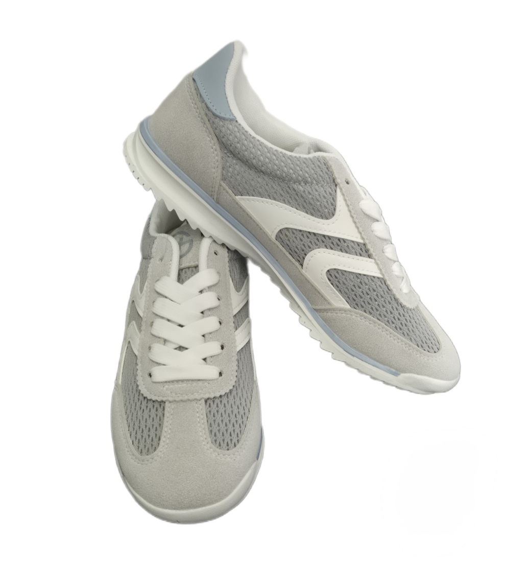 Cholewka wykonana jest z materiału zamszopodobnego oraz przewiewnej siatki, dzięki czemu obuwie zapewnia cyrkulację powietrza i komfort