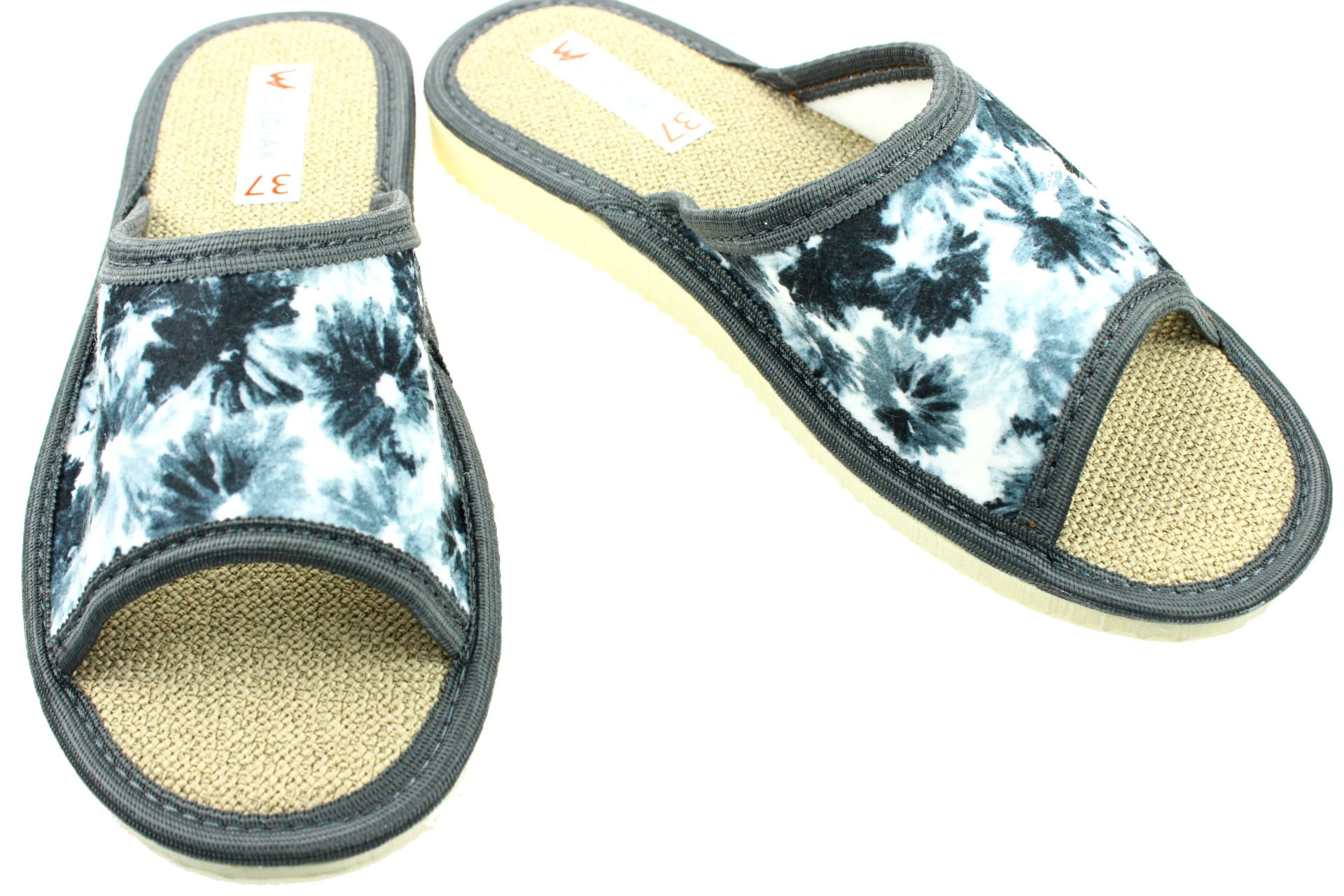 1725. Laczki damskie otwarte Wójciak popielate kwiatki