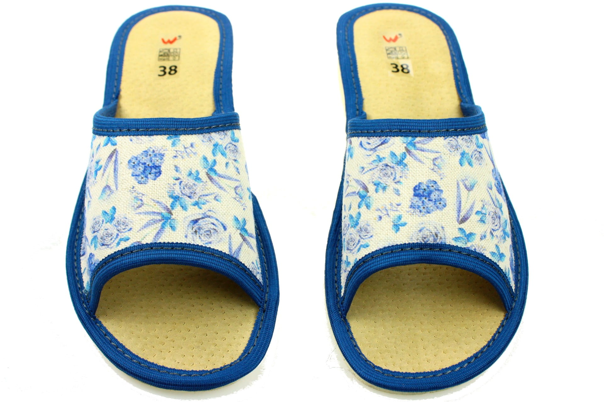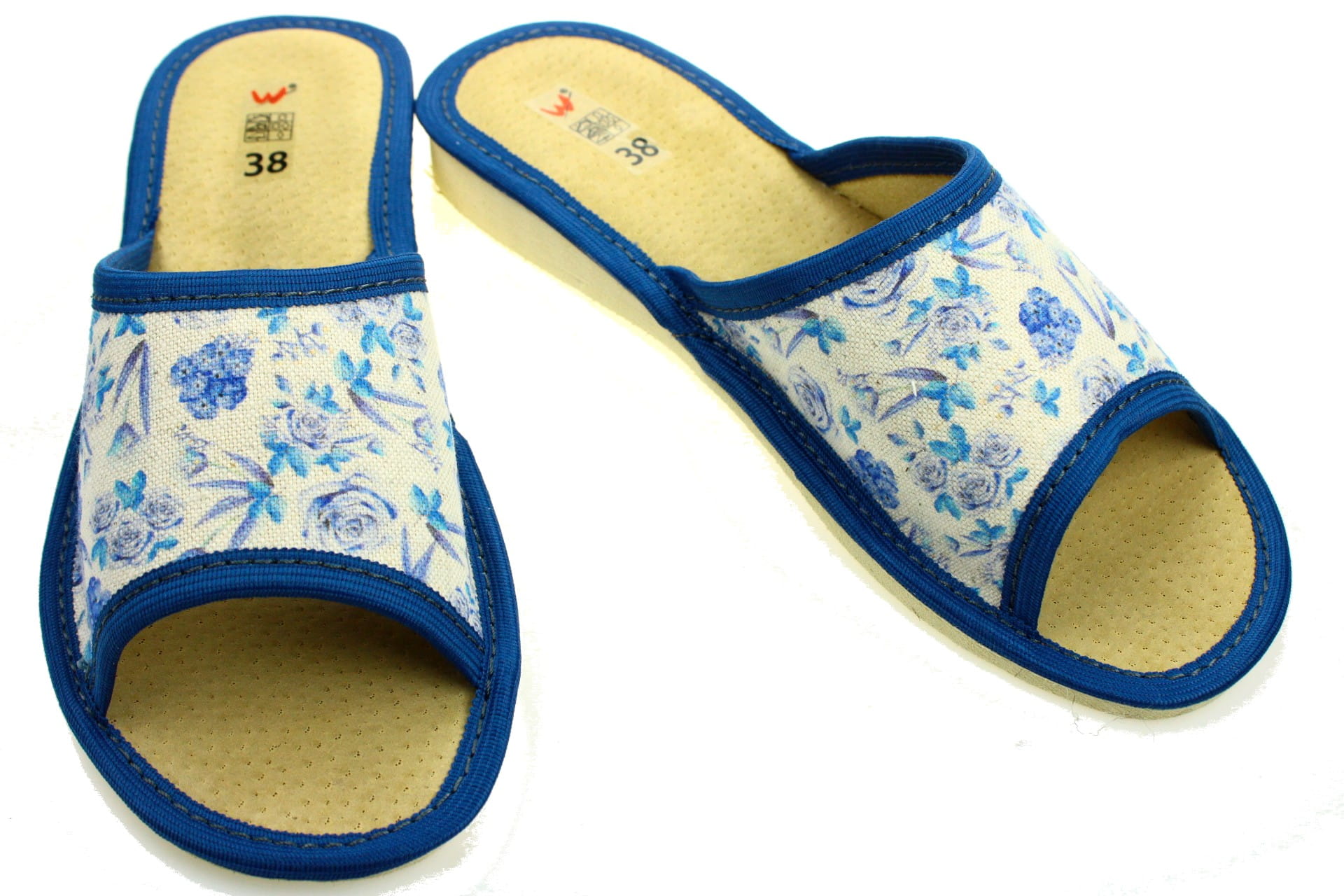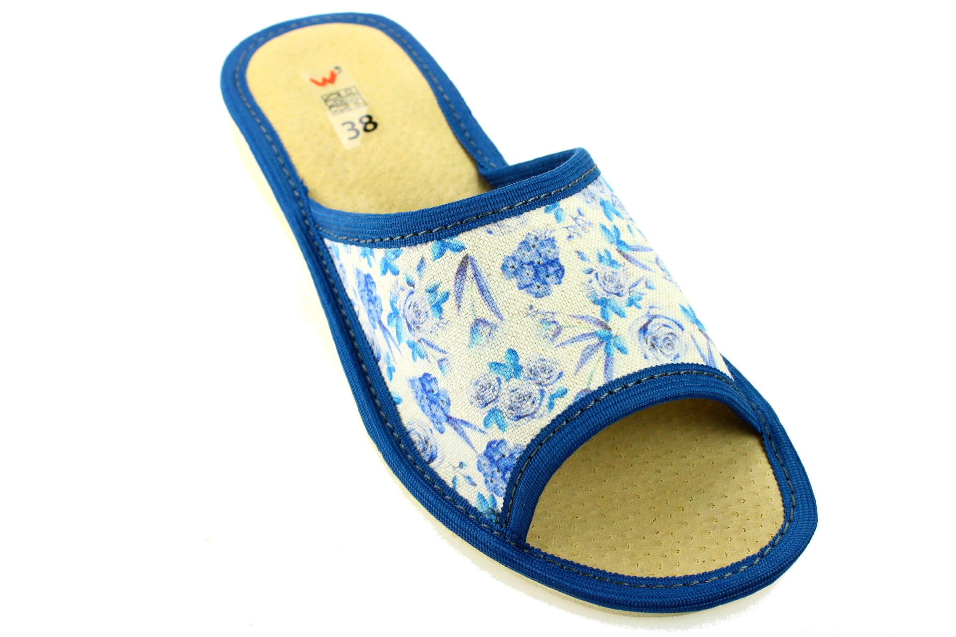 1726. Laczki damskie otwarte Wójciak niebieskie kwiatki