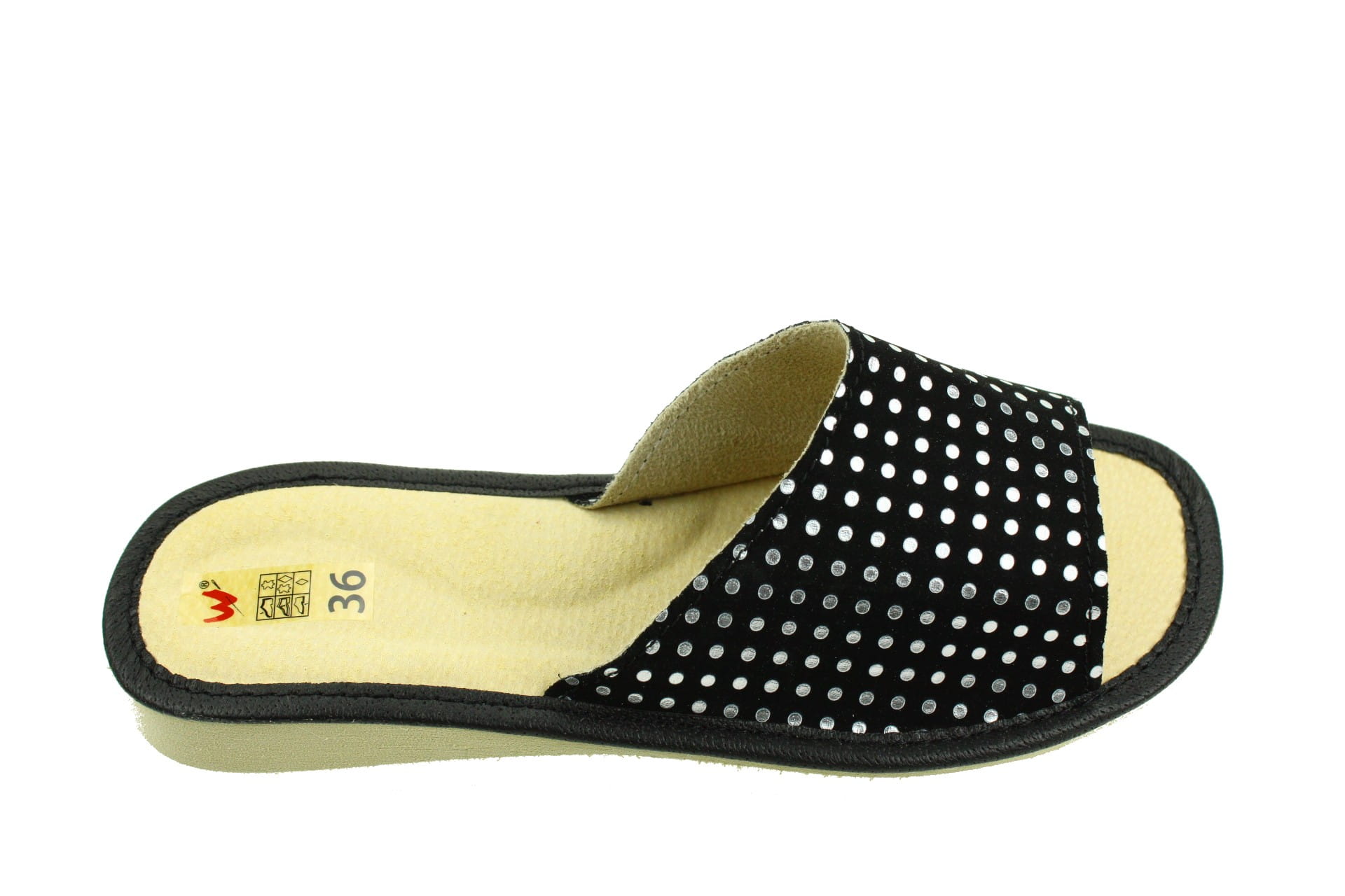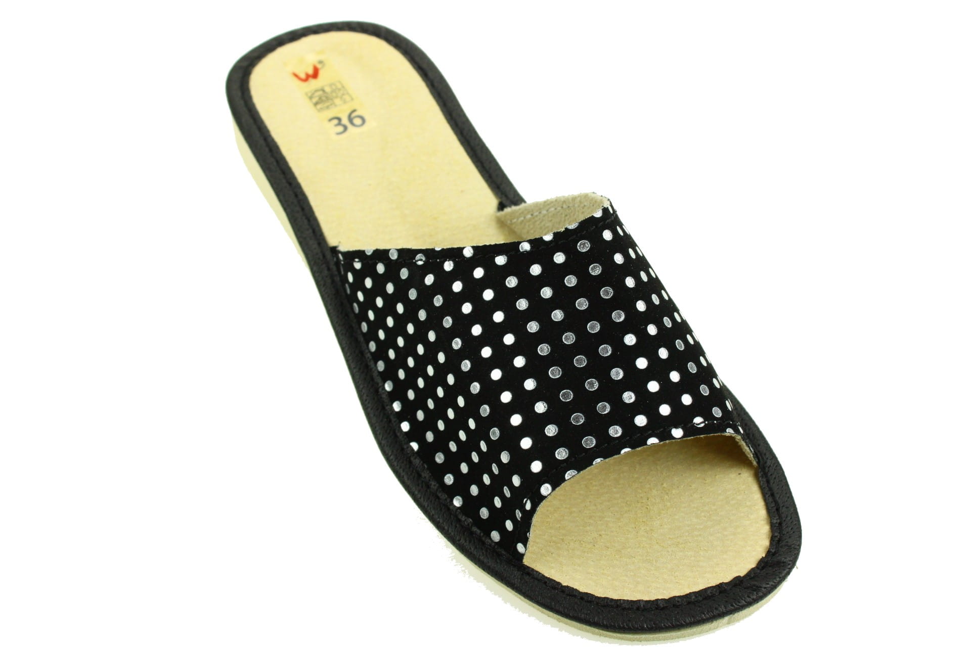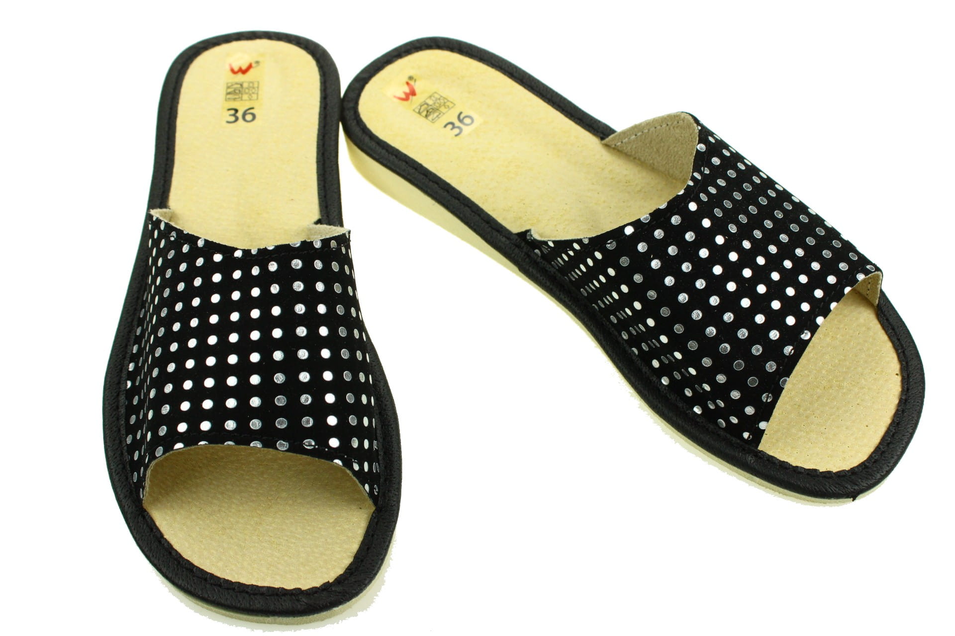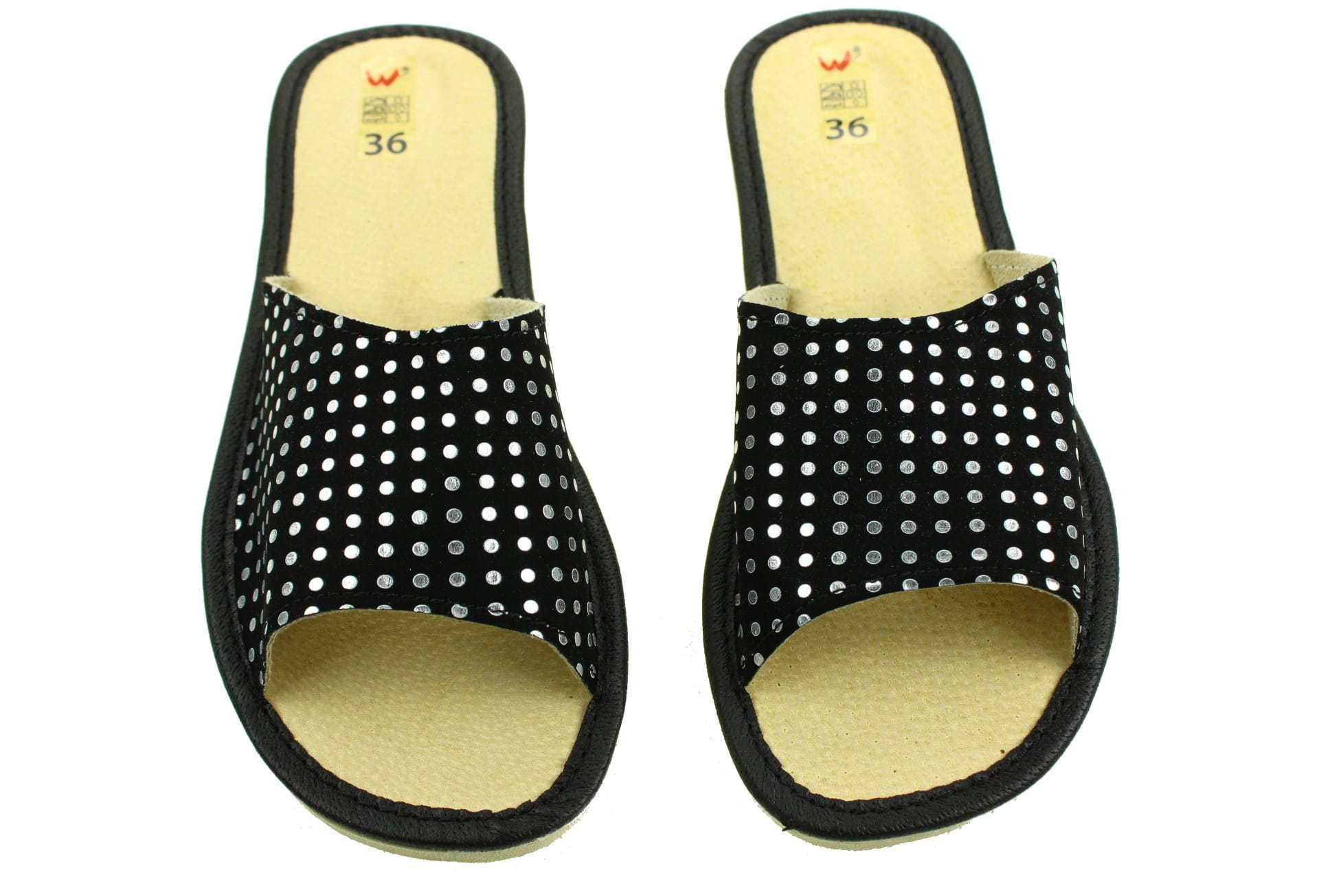 1813-A. Pantofle kapcie damskie Wójciak otwarte czarne w kropeczki