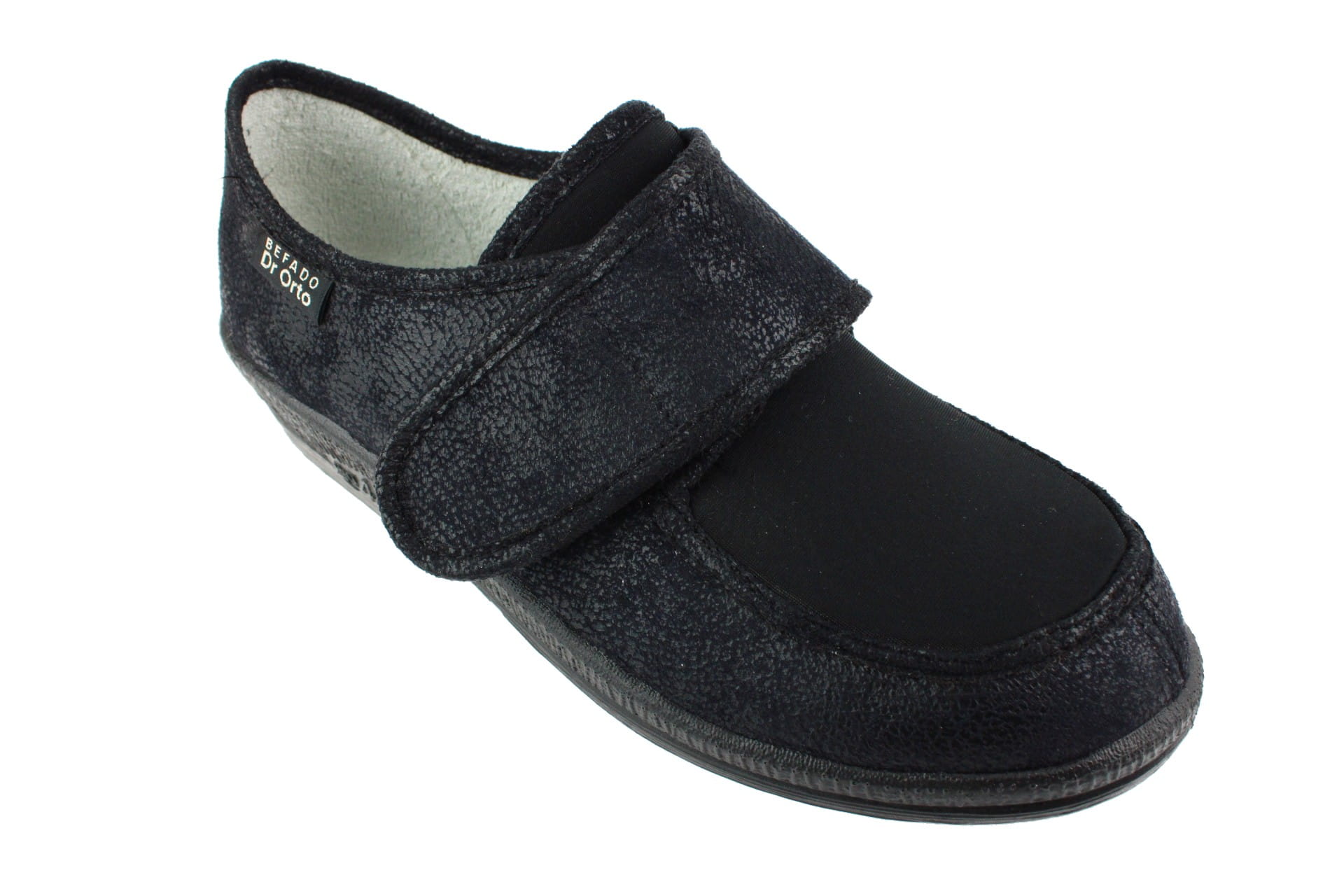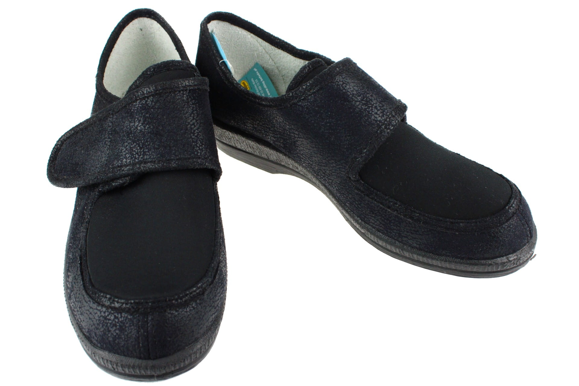 Wykonane z naturalnych surowców-z dzianiny zamszopodobnej. Wygodne i komfortowe obuwie damskie zaprojektowane z myślą o użytkowaniu po domu jak i na zewnątrz. Na cholewce wykorzystano rozciągający się, elastyczny materiał umożliwiający dopasowanie do zniekształconej stopy. Podeszwa wykonana ze sprężystego PU, zabezpiecza przed mikrourazami .Dzięki zapięciu na rzep, obuwie łatwo i szybko się zakłada. Polecane również dla osób ze stopą cukrzycową. Obuwie Dr.Orto System jest rekomendowane przez Polskie Stowarzyszenie Diabetyków. Wyściółka silber z jonami srebra. Klin o wysokości 3,5 cm. Tęgość obuwia F-stopa szczupła z możliwością regulacji.