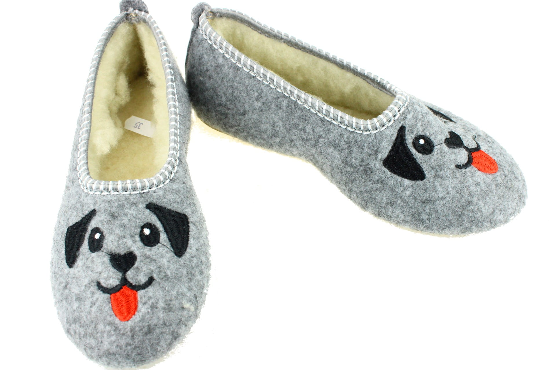 236-C. Pantofle damskie balerinki filcowe Pawlikowscy z pieskiem z wełną