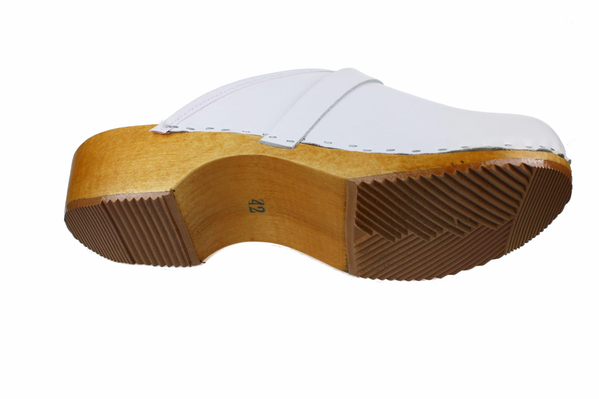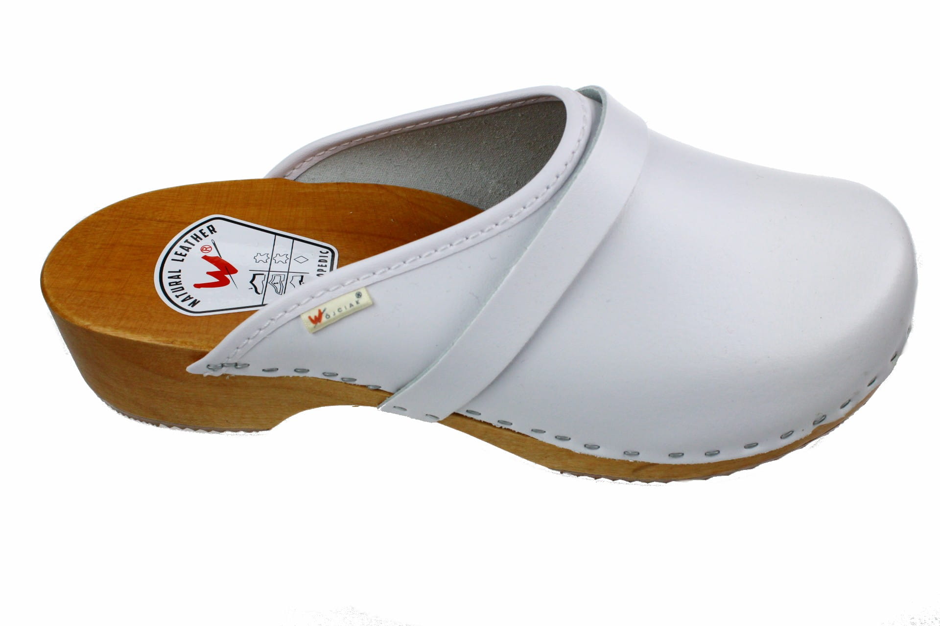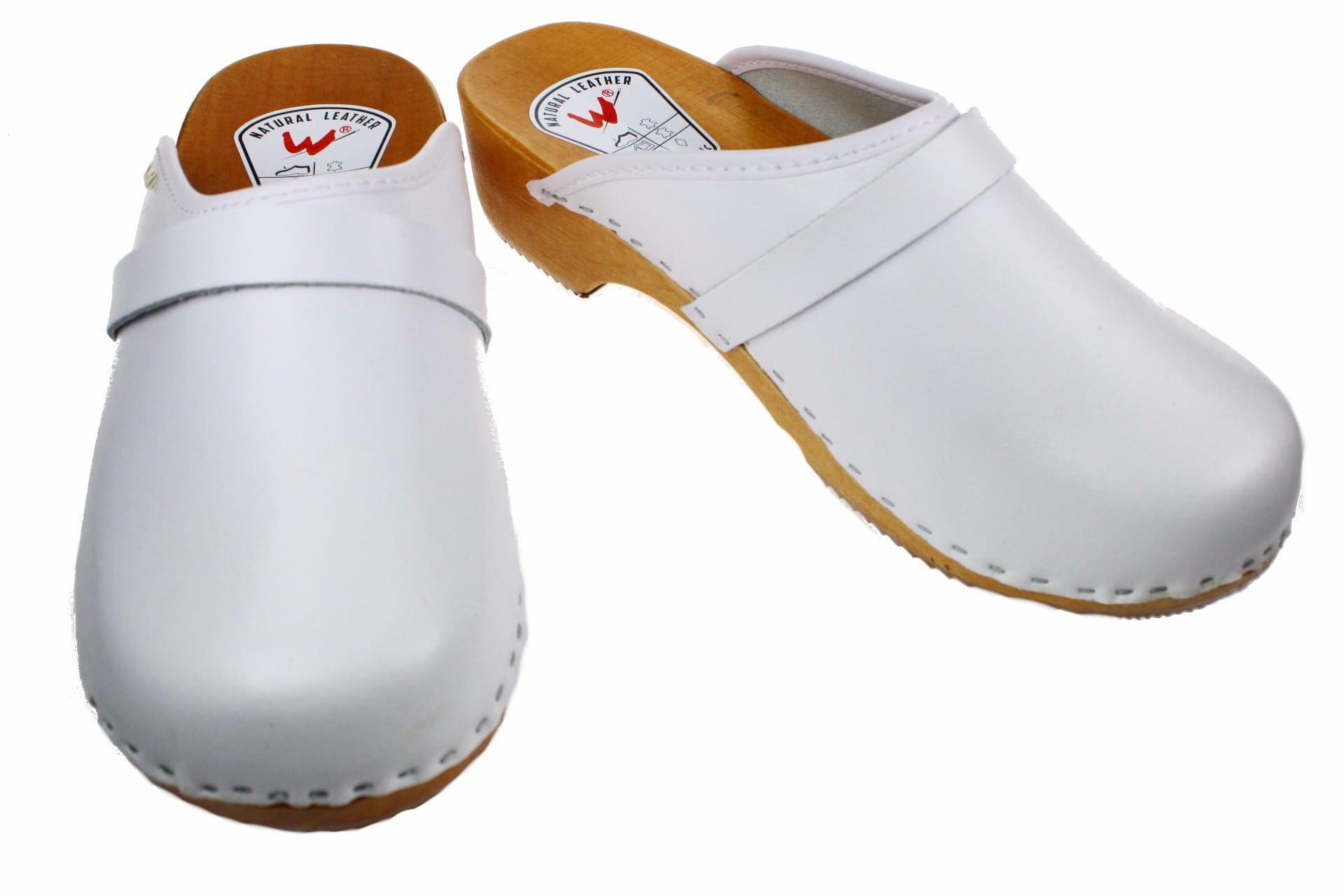 Drewniaki męskie pełne wykonane są z naturalnej skóry.