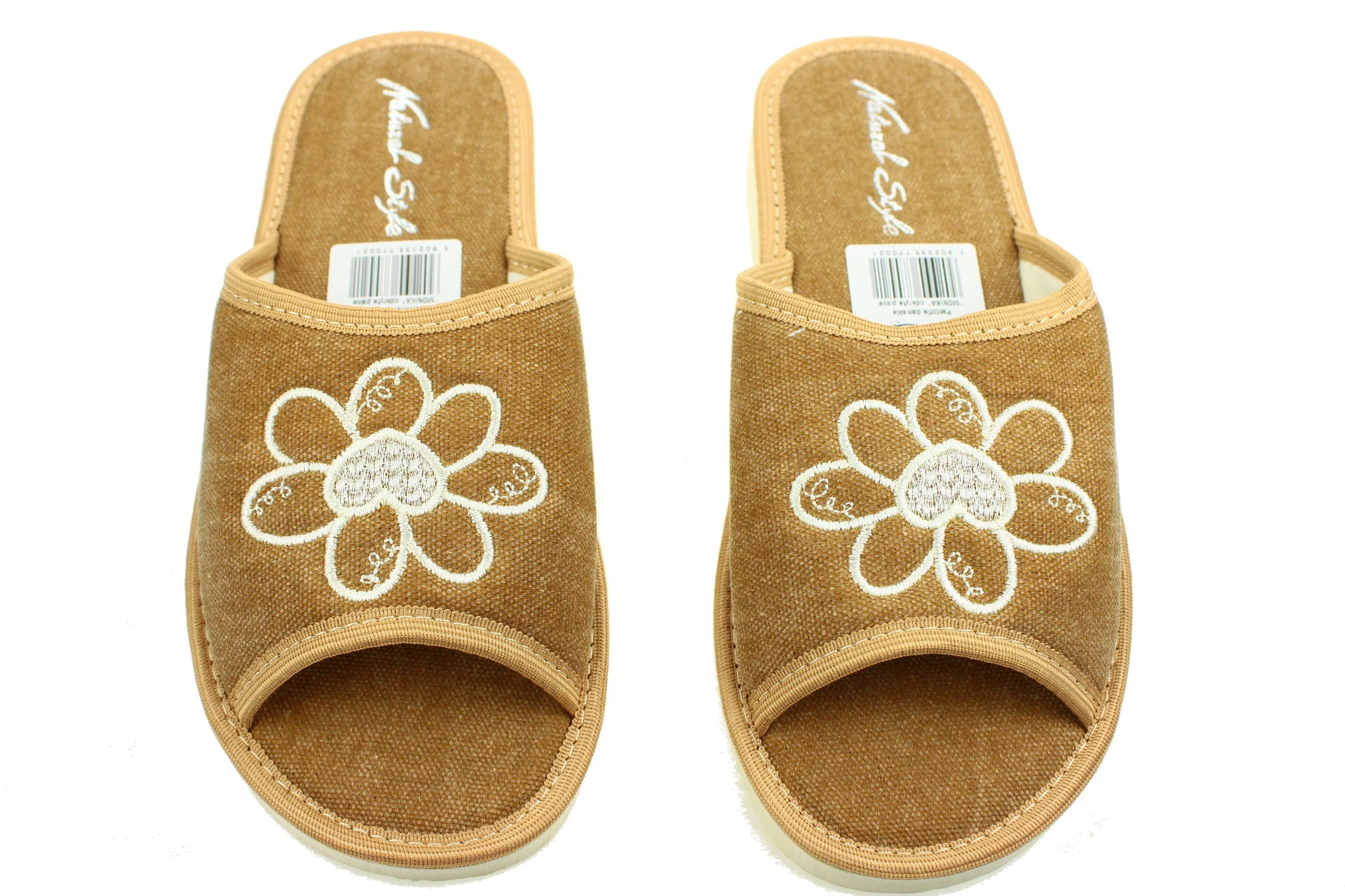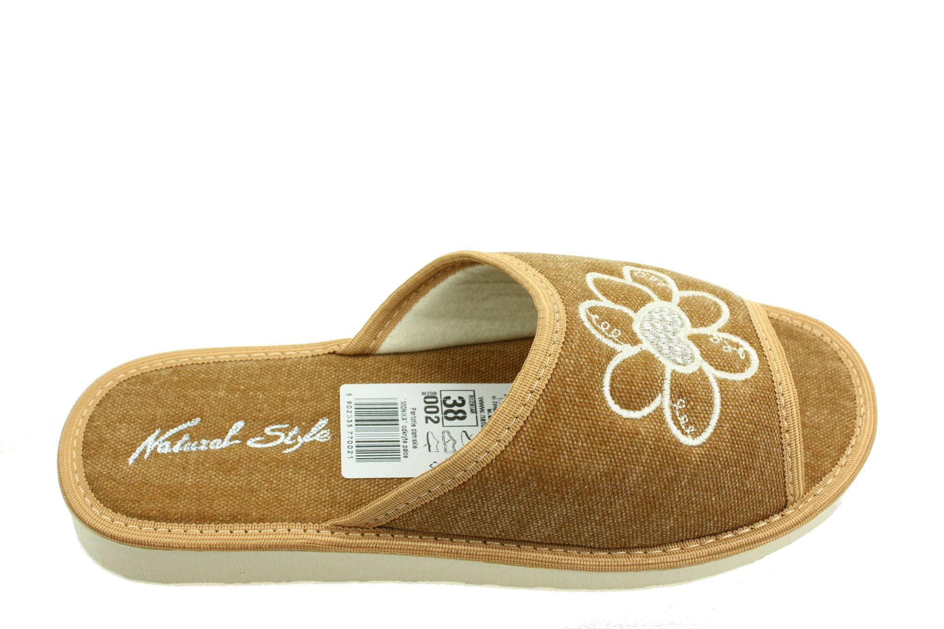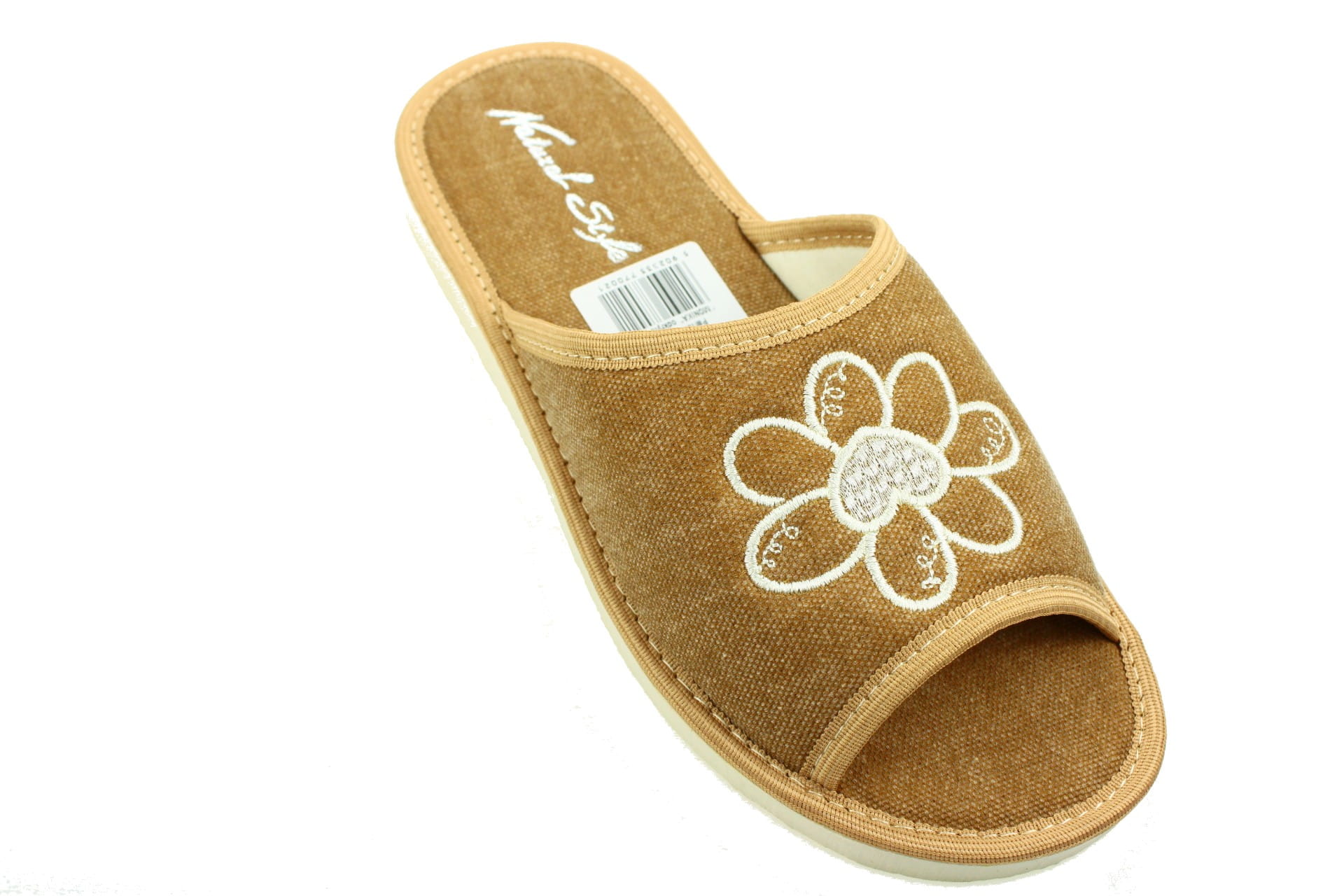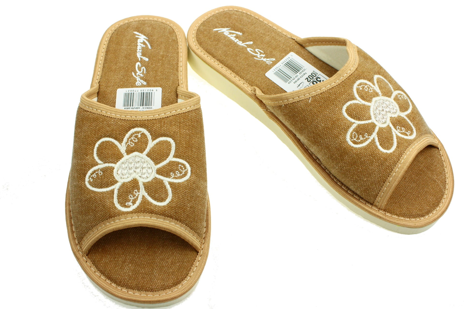 292-A . Laczki damskie Natur Style otwarte beżowe z kwiatkiem
