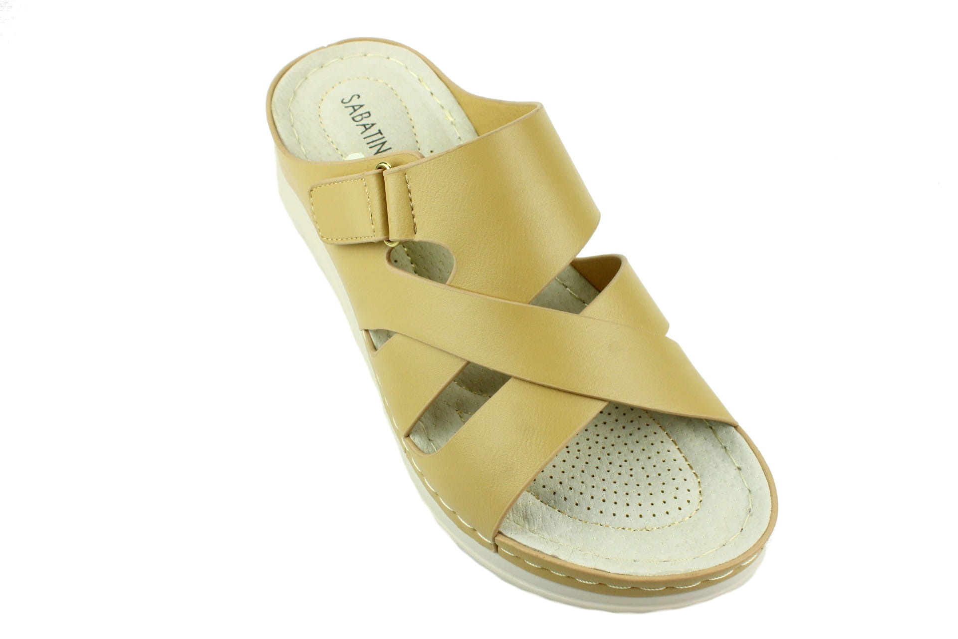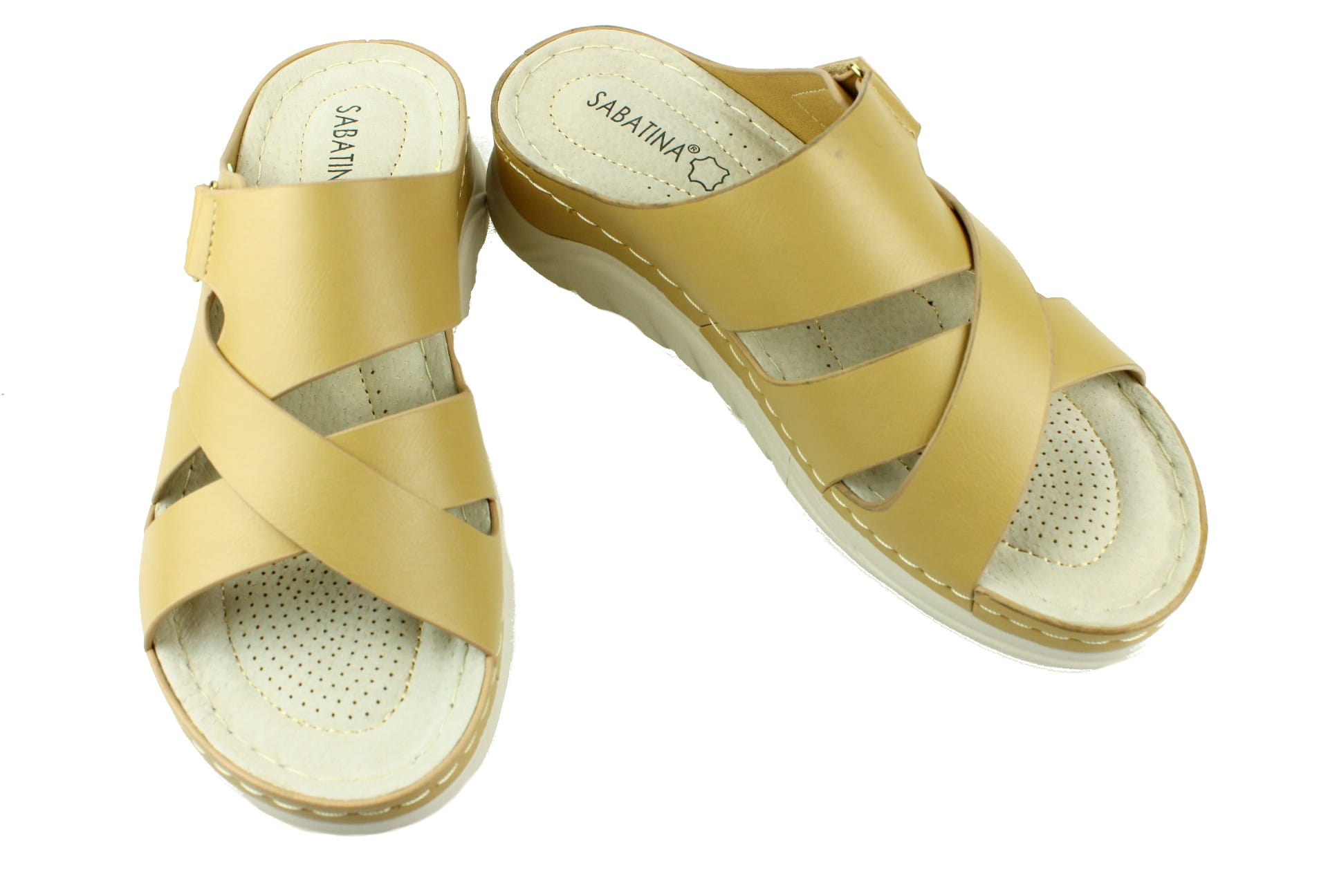 295. Klapki damskie Sabatina na rzep beżowe