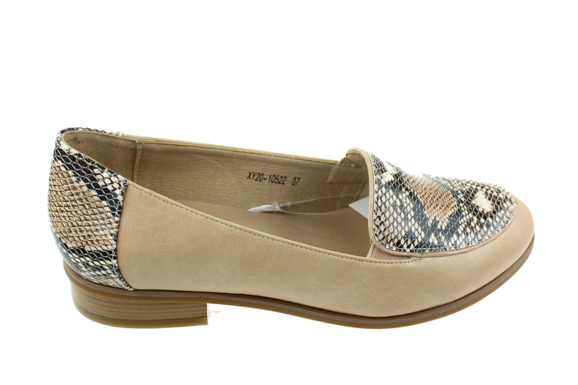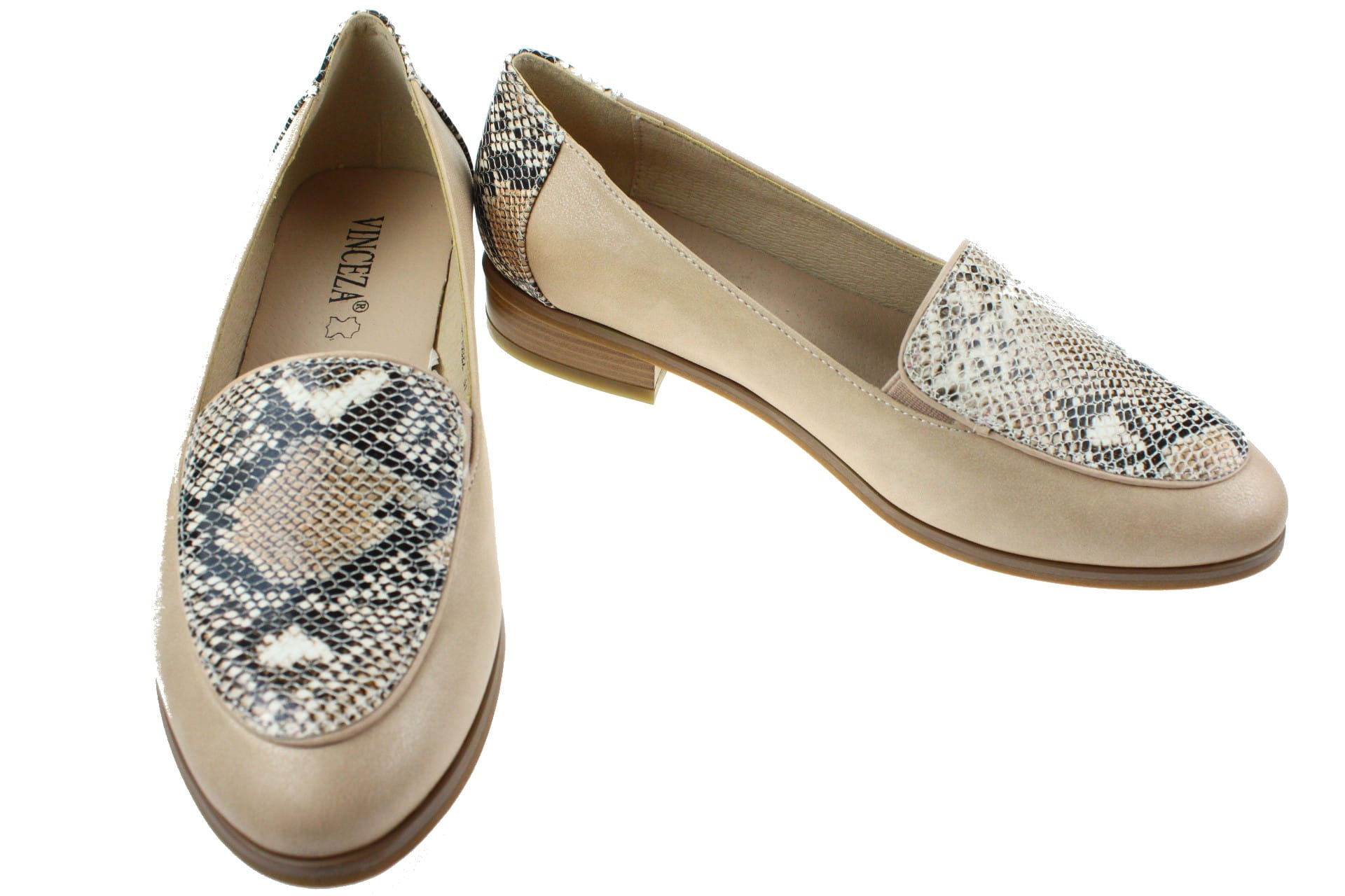 366-A. Półbuty damskie Vinceza z motywem węża beżowe