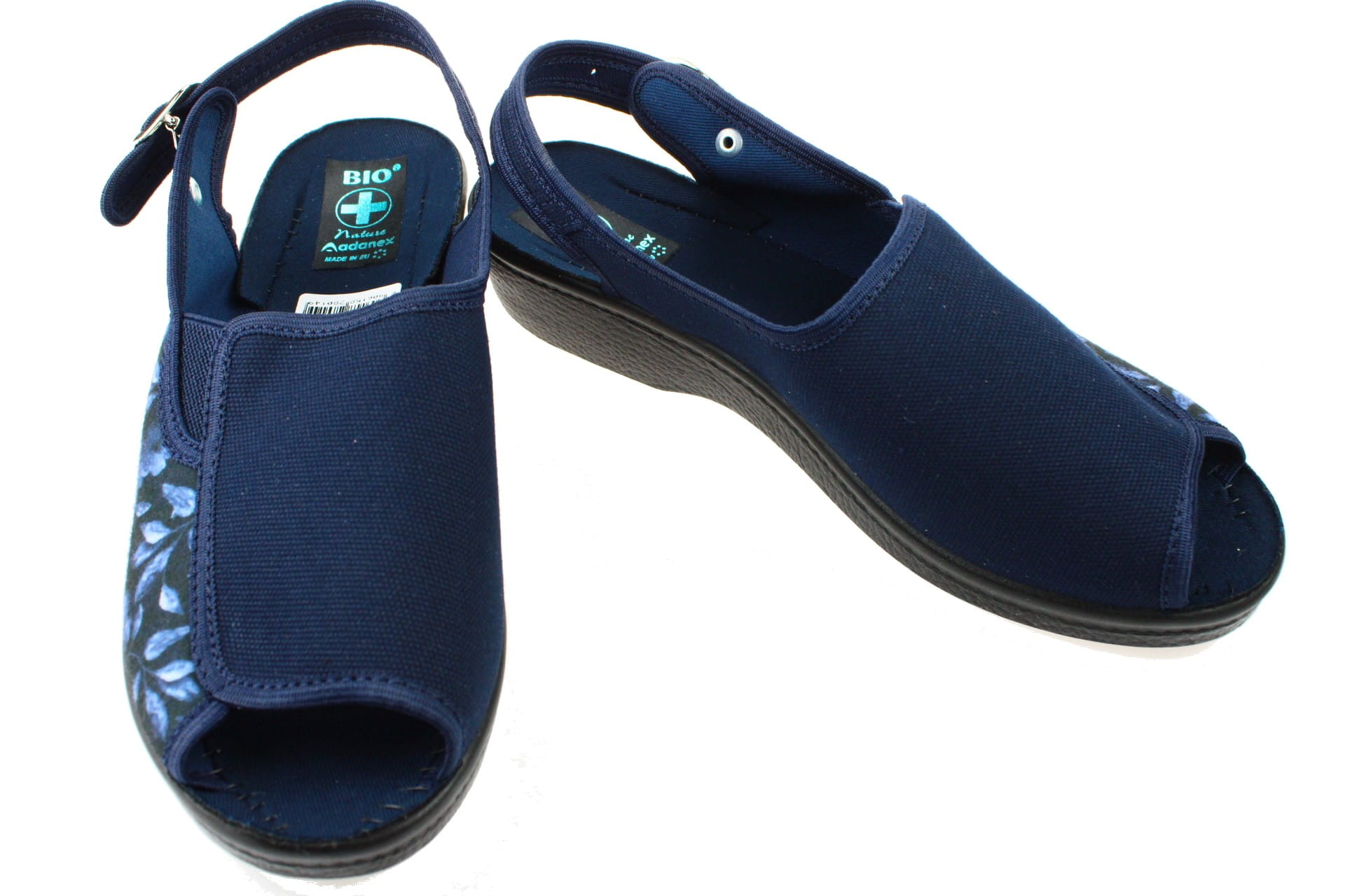 509-A. Obuwie damskie tekstylne adanex sandałki granatowe