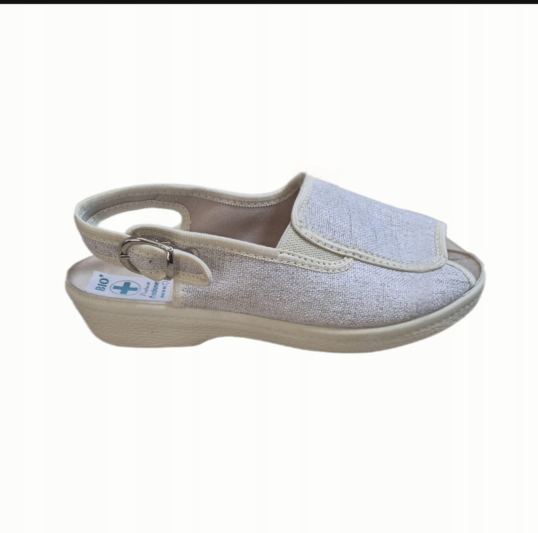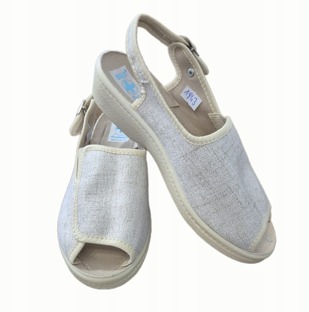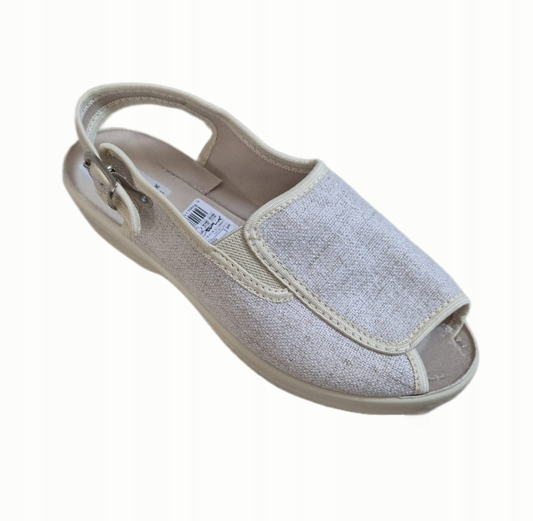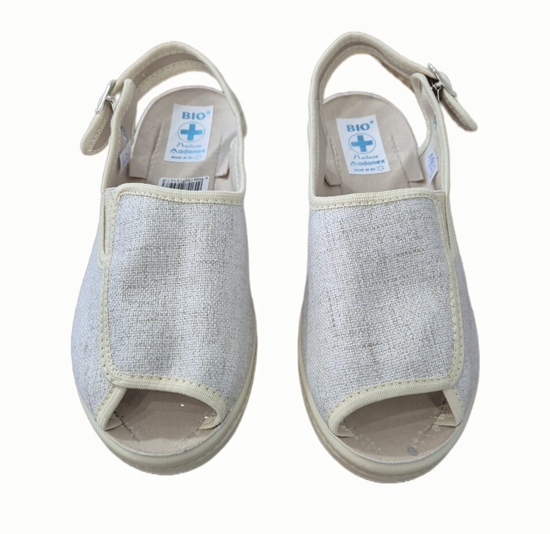 509. Obuwie damskie tekstylne adanex sandałki lniane beżowe