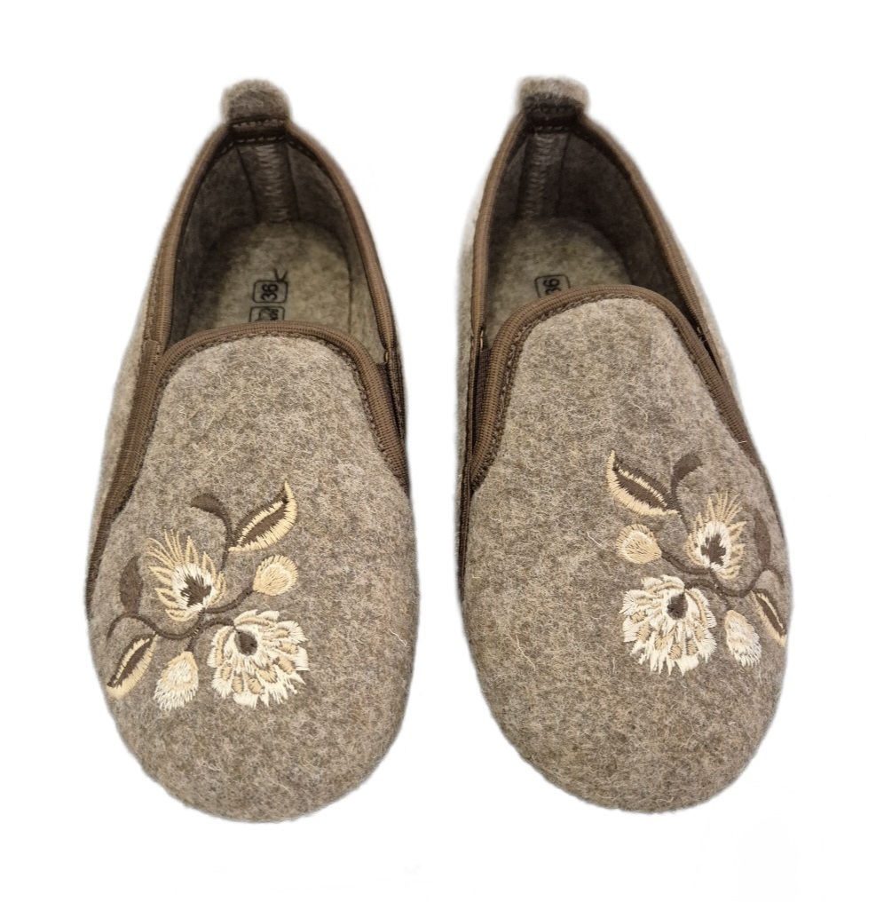 Balerinki wykonane z miękkiego, miłego w dotyku materiału - filcu, ozdobione haftem.